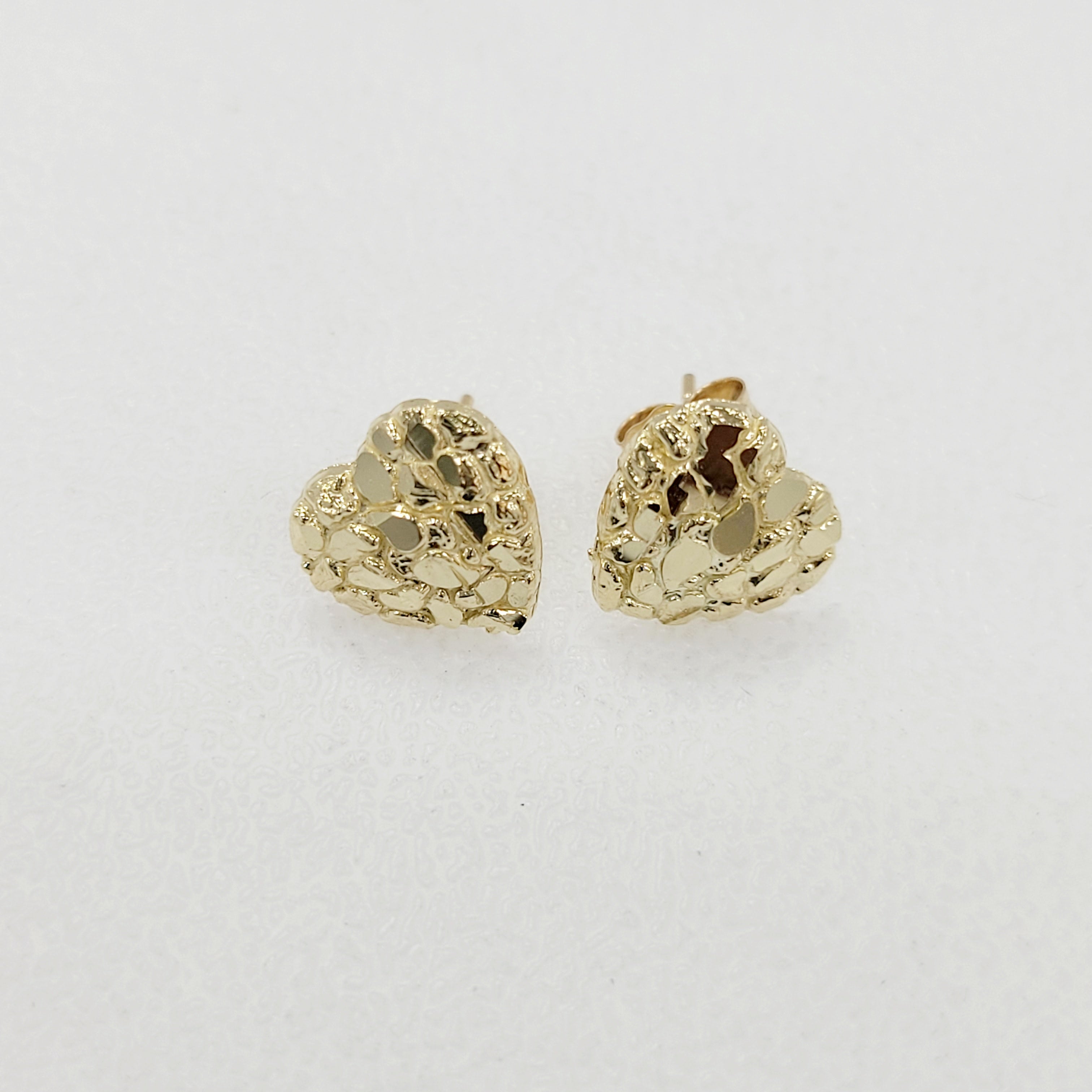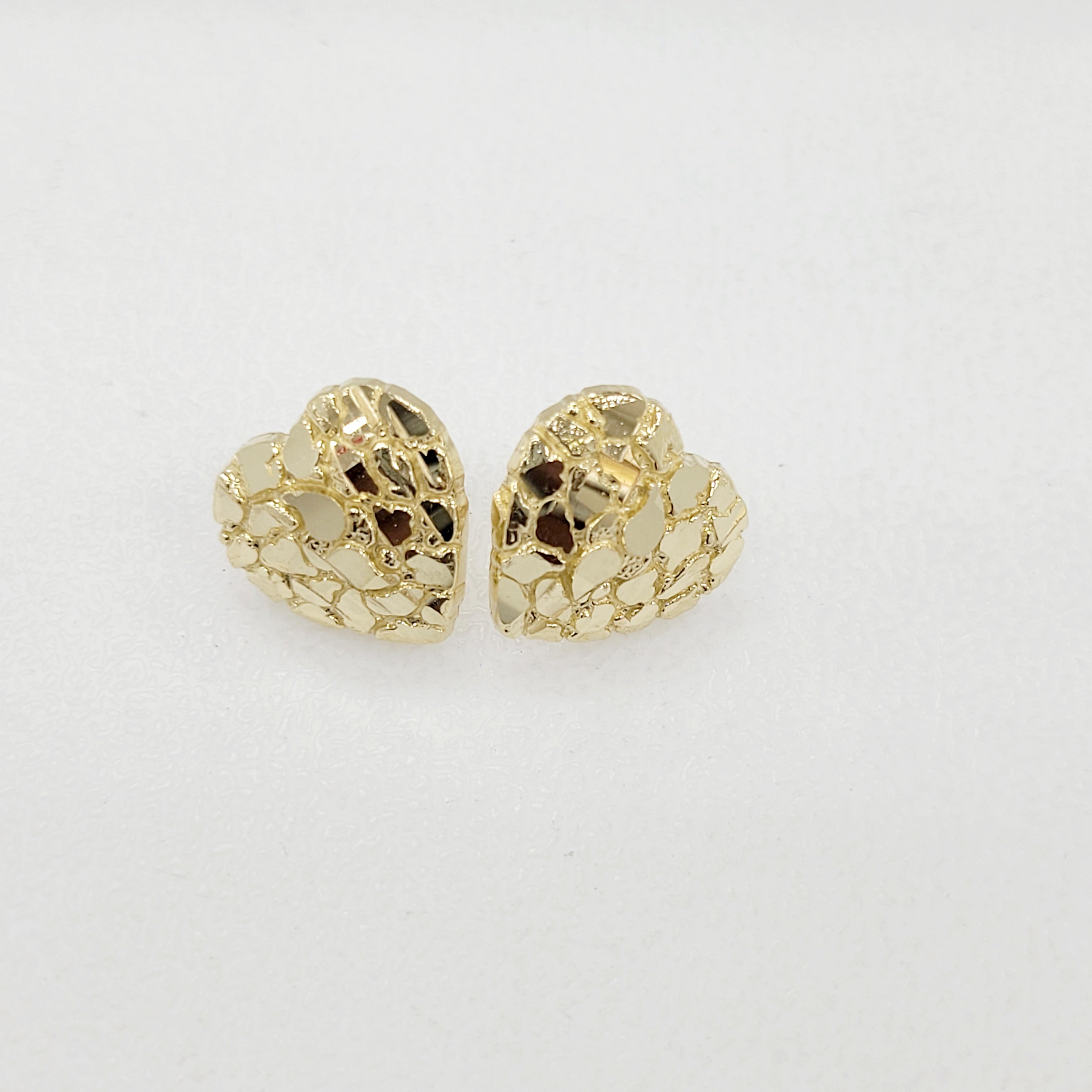 Crafted from 10KT genuine gold, these Heart Nugget Earrings feature a bold textured design for a standout look with a simple butterfly back. The 10mm size weighs 1 gram, while the 13mm size weighs 1.7 grams, offering lightweight comfort with a luxurious feel. Perfect for everyday wear or special occasions, these earrings blend classic style with a unique nugget finish.