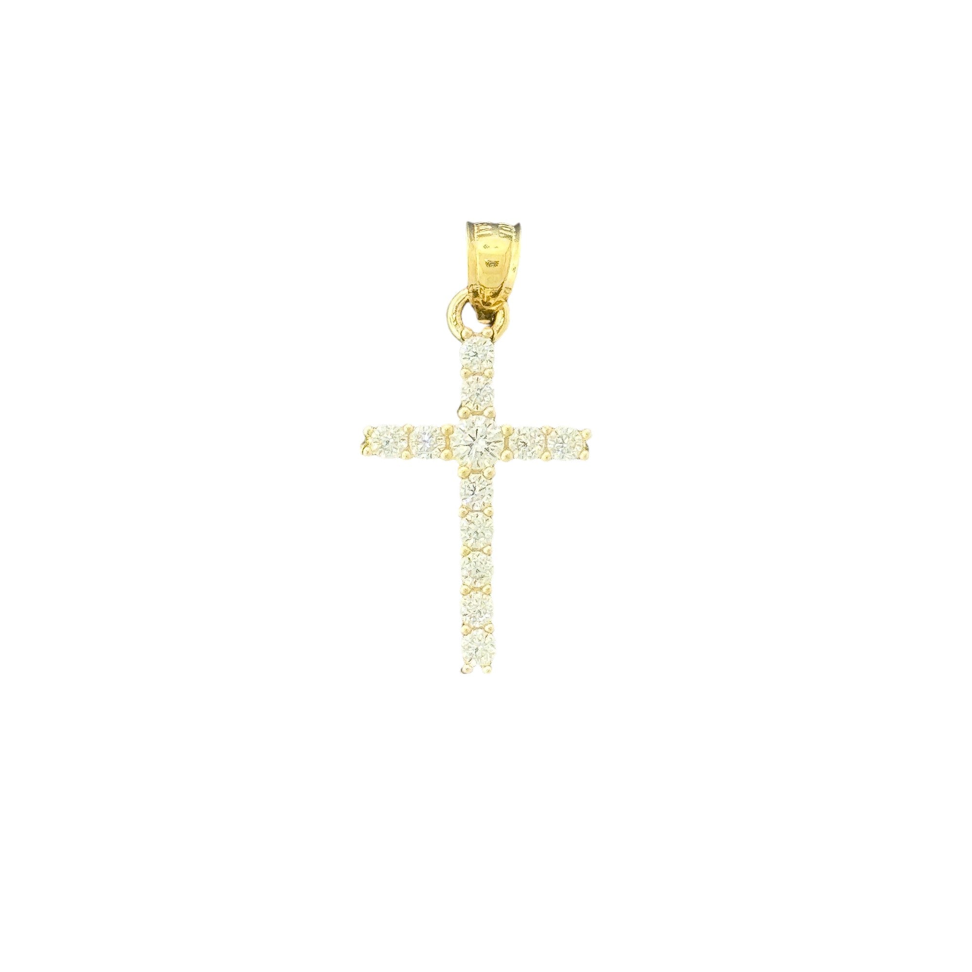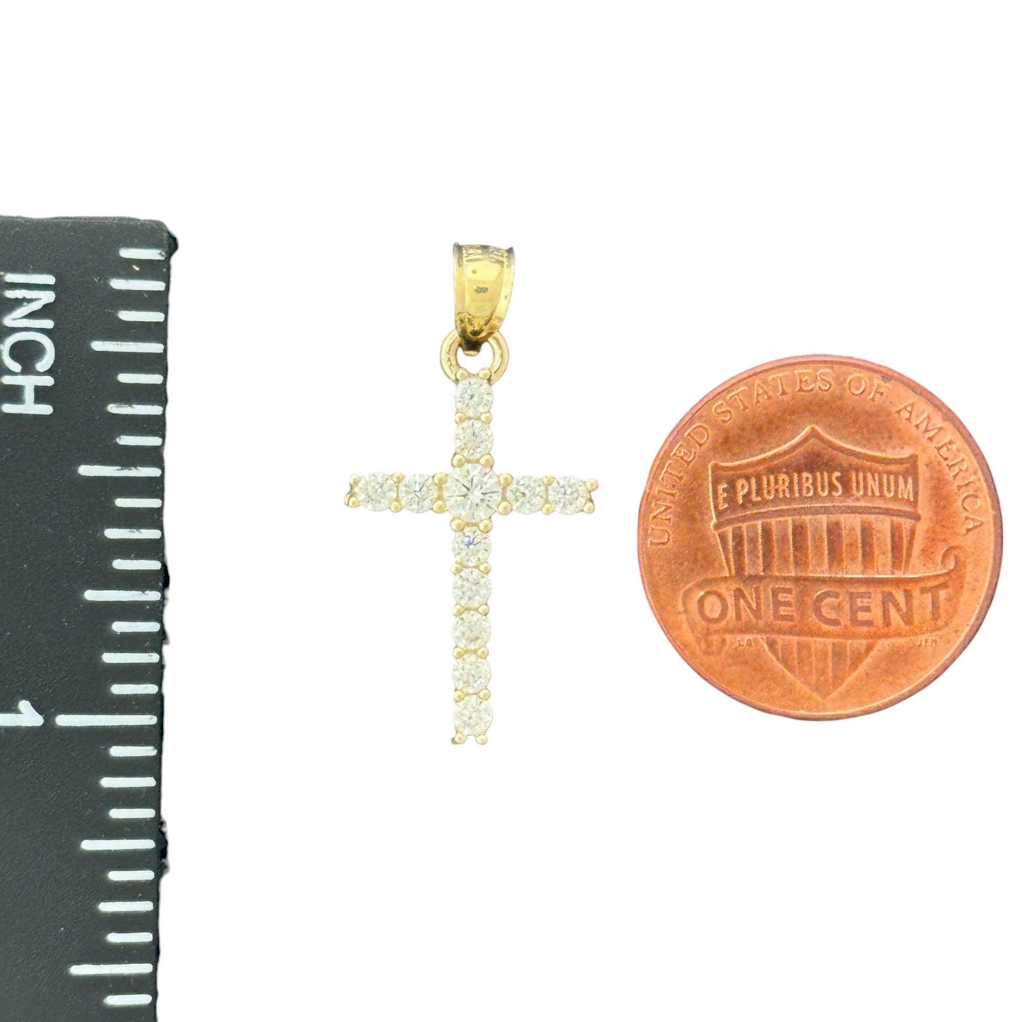 Embrace your faith with this sparkling 10KT Gold CZ Cross Pendant, adorned with CZ (cubic zirconia) stones. Weighing 1.30g and featuring a 2mm bail, this pendant offers a dazzling design perfect for any occasion. It makes a thoughtful gift or a special addition to your own collection. Order now to add a touch of spiritual elegance to your jewelry!