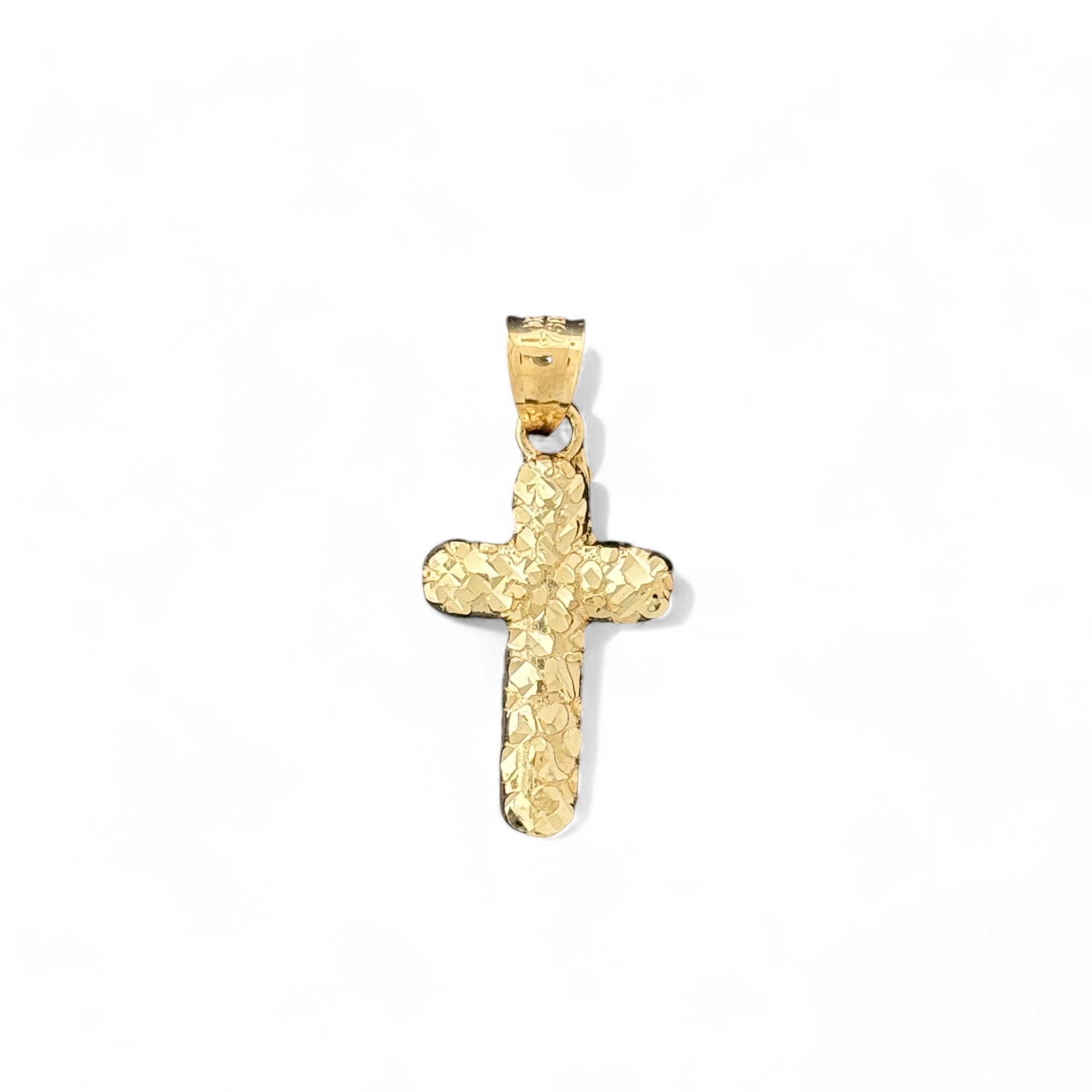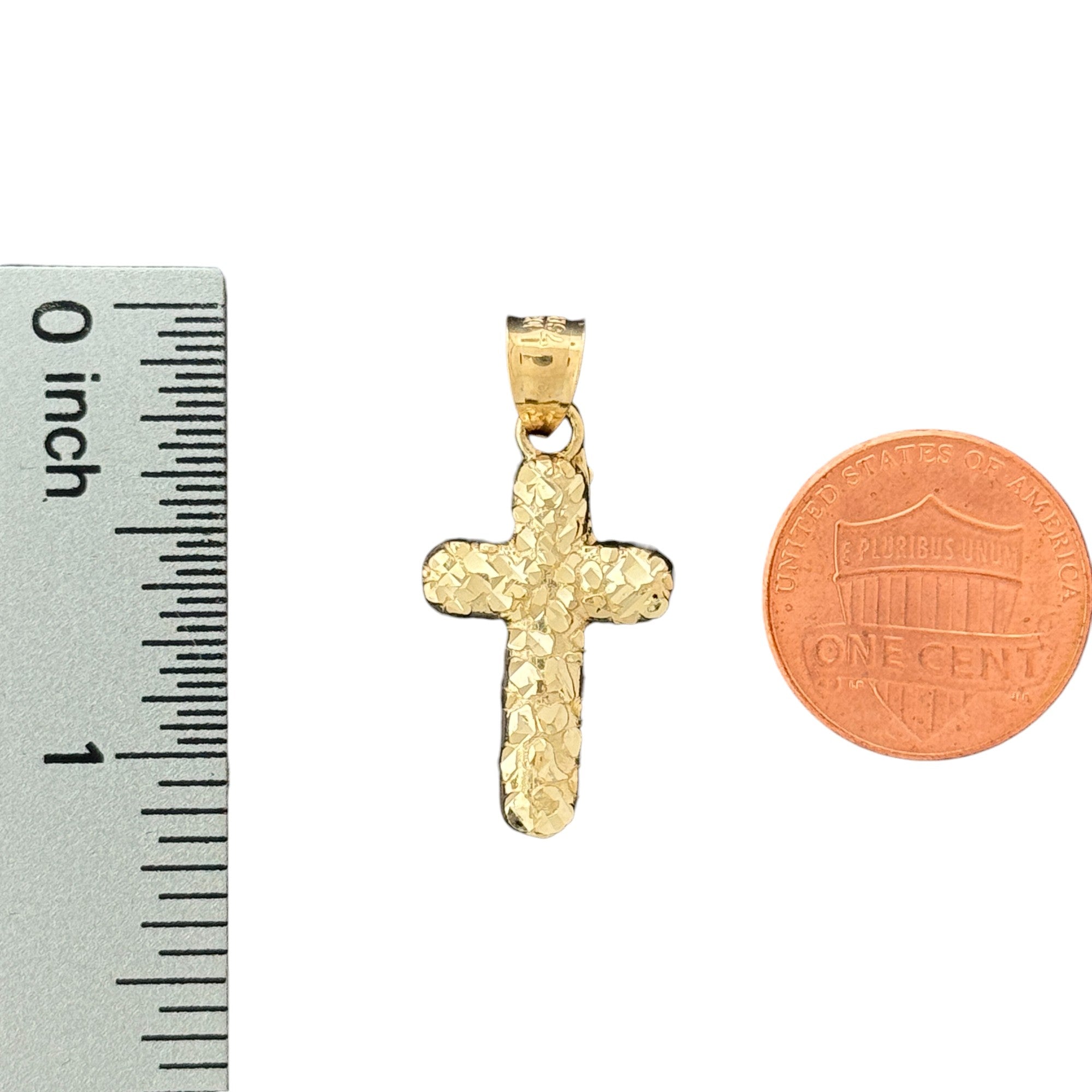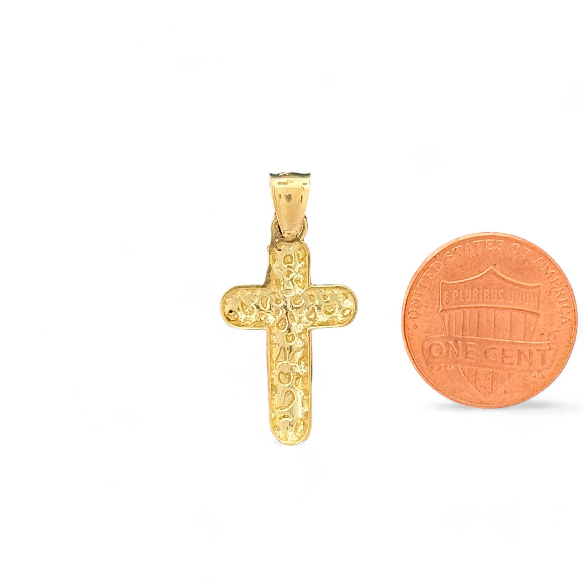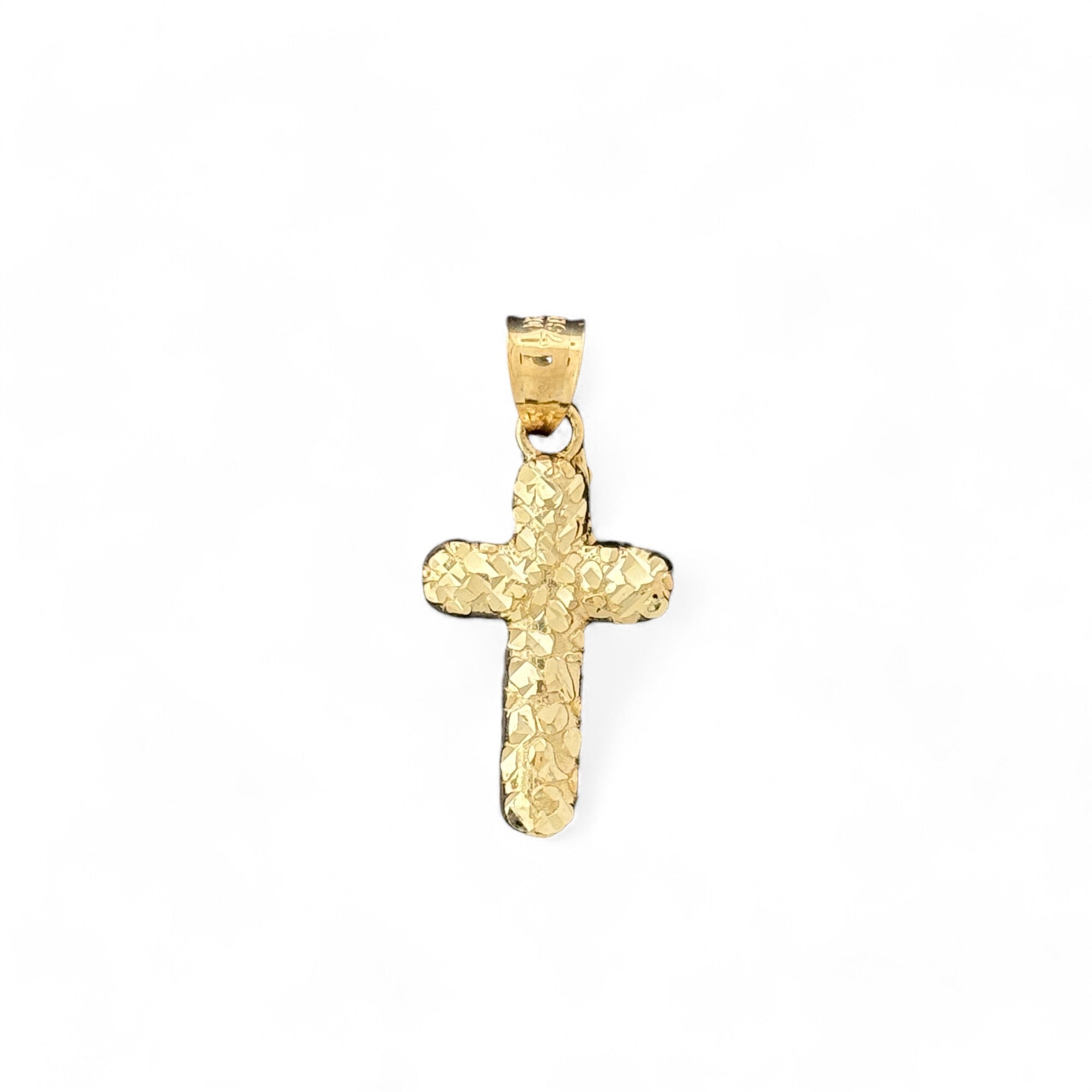 This elegant 10KT Yellow Gold Cross Pendant features a beautifully textured design that adds depth and character to the classic cross shape. Weighing 1.41 grams and equipped with a 3mm bail, this pendant is perfect for daily wear or as a thoughtful gift. The textured surface gives it a unique and modern appeal.