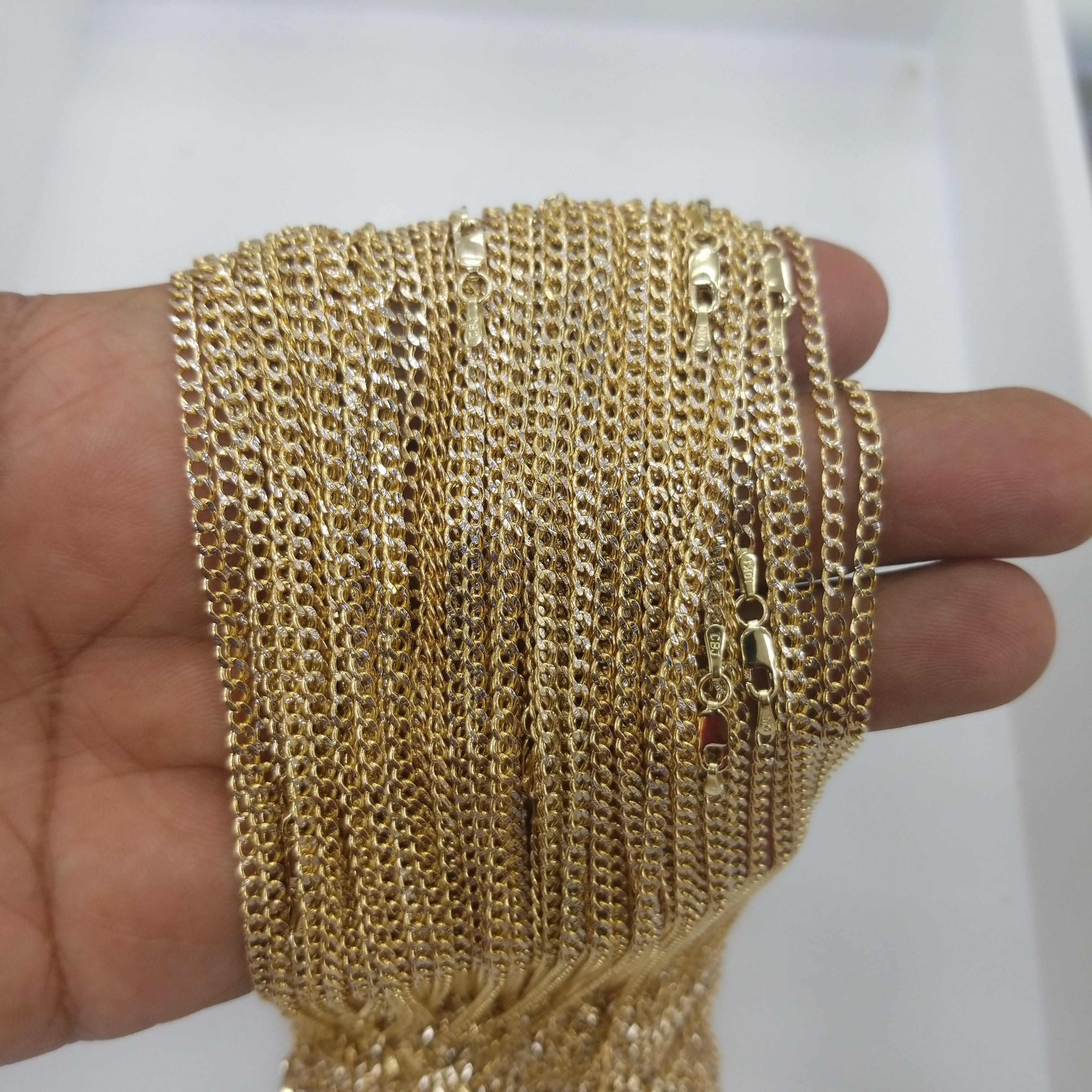 10KT Gold Cuban Necklace - 2.5mm, Pave White Diamond Cut, Lobster Lock