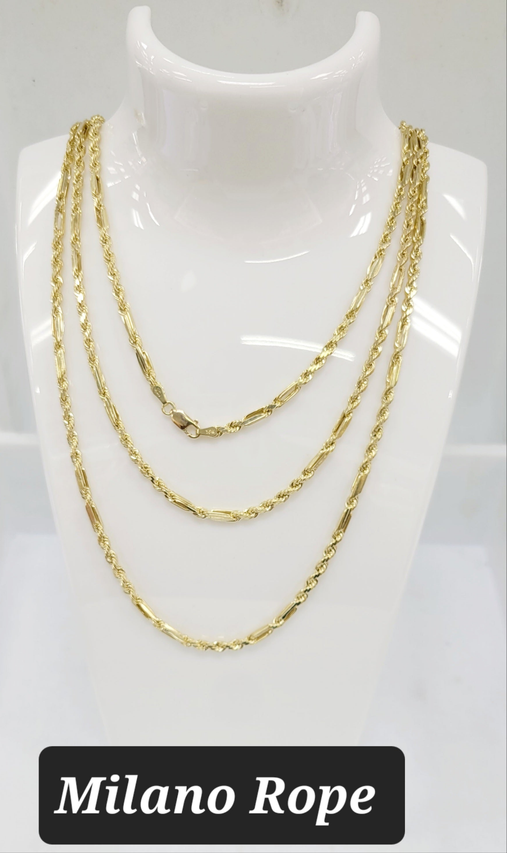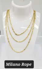 10KT gold this lightweight hollow Milano Rope chain and bracelet set features a brilliant diamond-cut finish for added shine and texture. Its sleek, twisted design offers a bold yet refined look—perfect for layering or standalone wear. Ideal for retailers seeking quality gold pieces with high visual appeal at competitive wholesale prices.