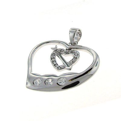 Sterling silver rhodium finish heart pendant