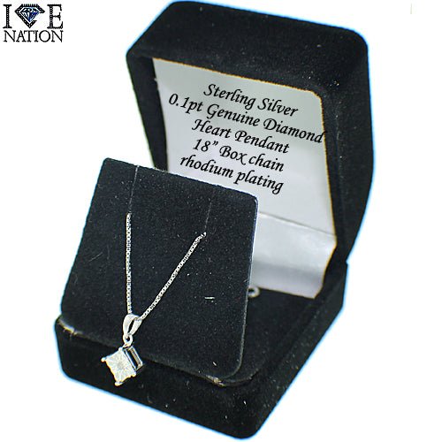 Sterling Silver Genuine Diamond Pendant Sterling Silver over Rhodium plating for long lasting 14kt white gold finish comes with 18" box chain Illusion Settings Butterfly Back comes with earring box