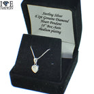 Sterling Silver Genuine Diamond Pendant Sterling Silver over Rhodium plating for long lasting 14kt white gold finish, comes with 18" box chain, Illusion Settings Butterfly Back comes with earring box.
