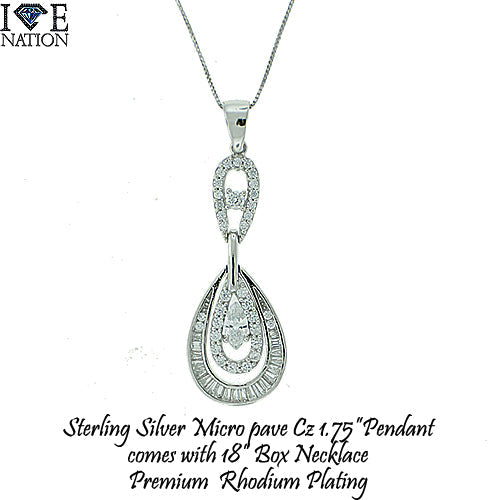 Sterling Silver Rhodium 18" Box Chain with Micro pave Pendants are made of Sterling Silver casting with high quality AAA grade CZ stones, finished a thick layer of Rhodium Plating for long lasting shine each piece looks and feels like genuine diamond.