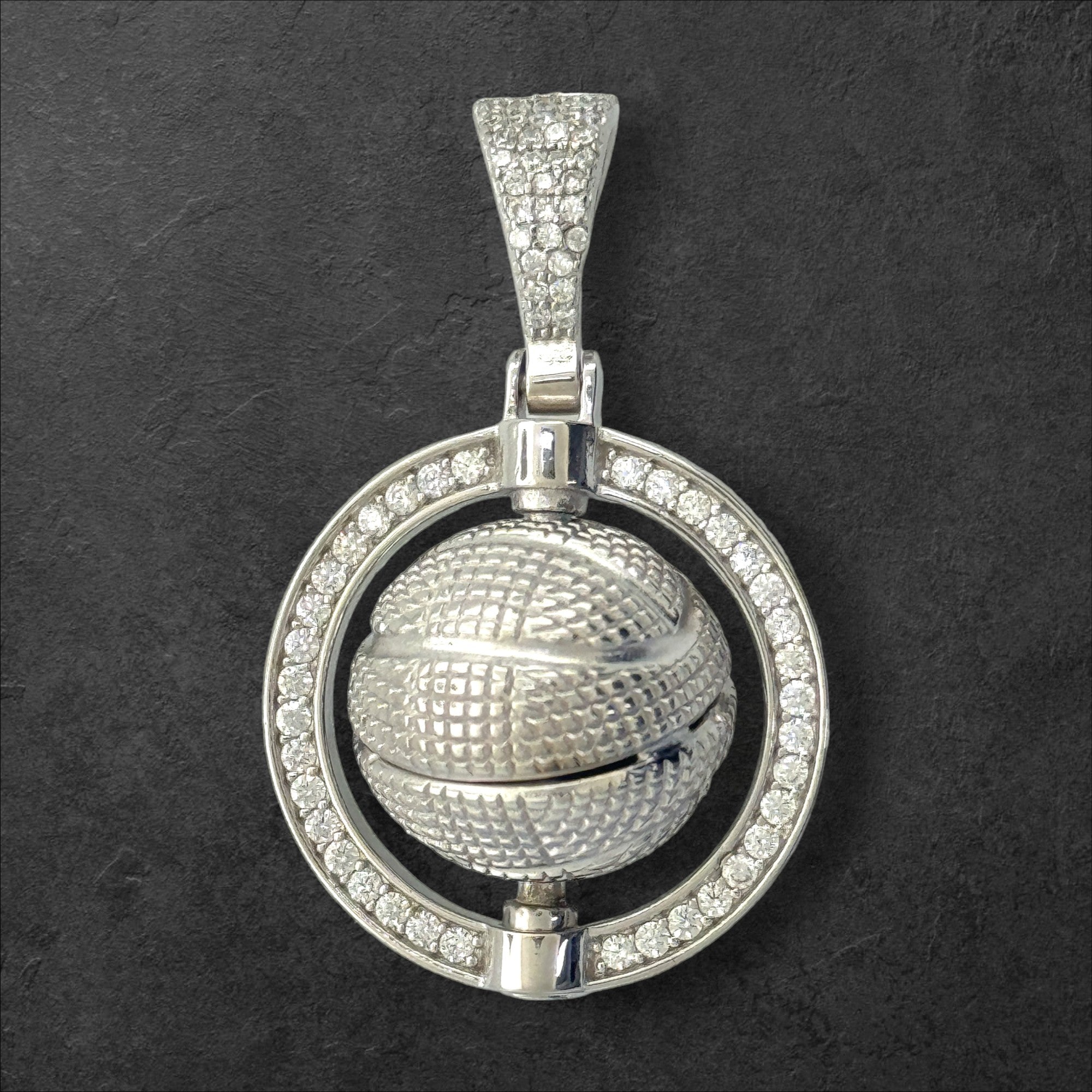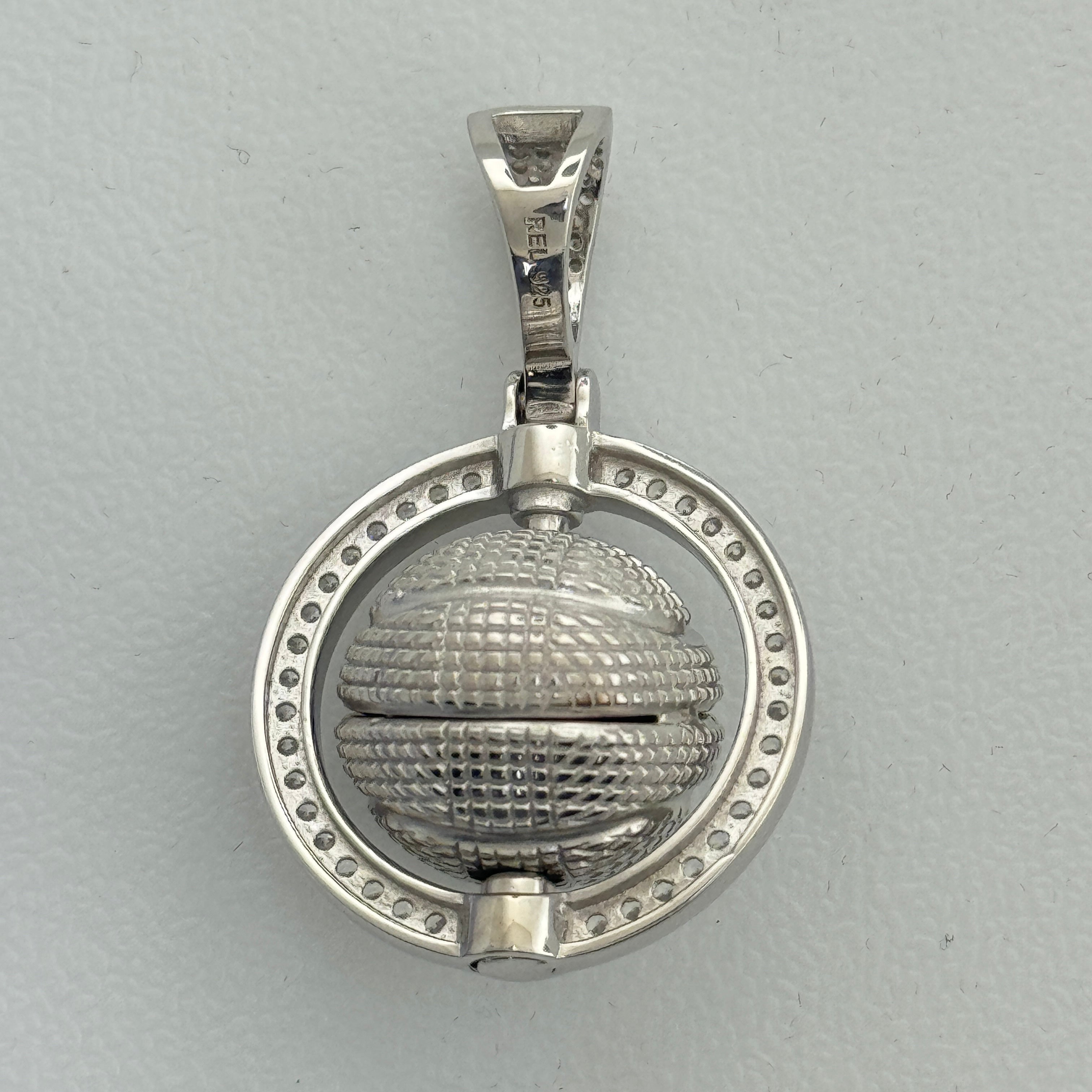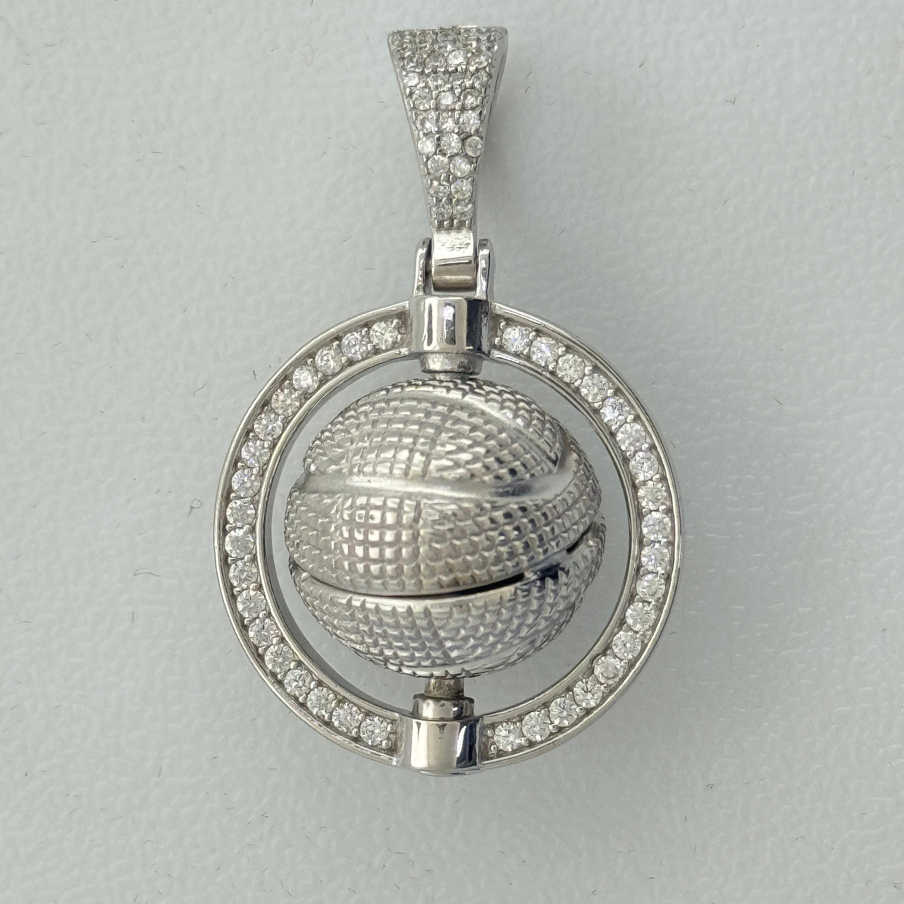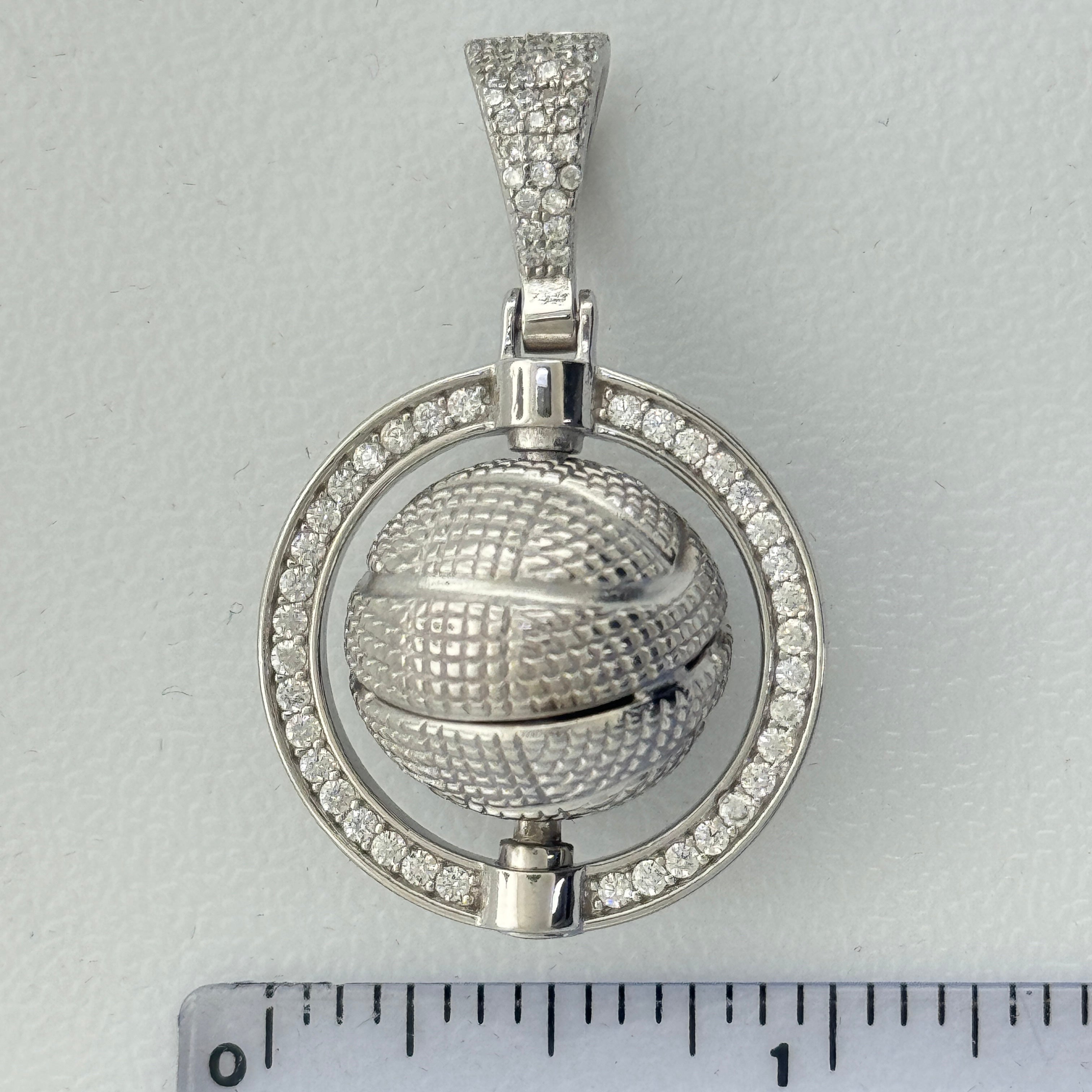 Sterling Silver CZ Spinner Basketball Pendent