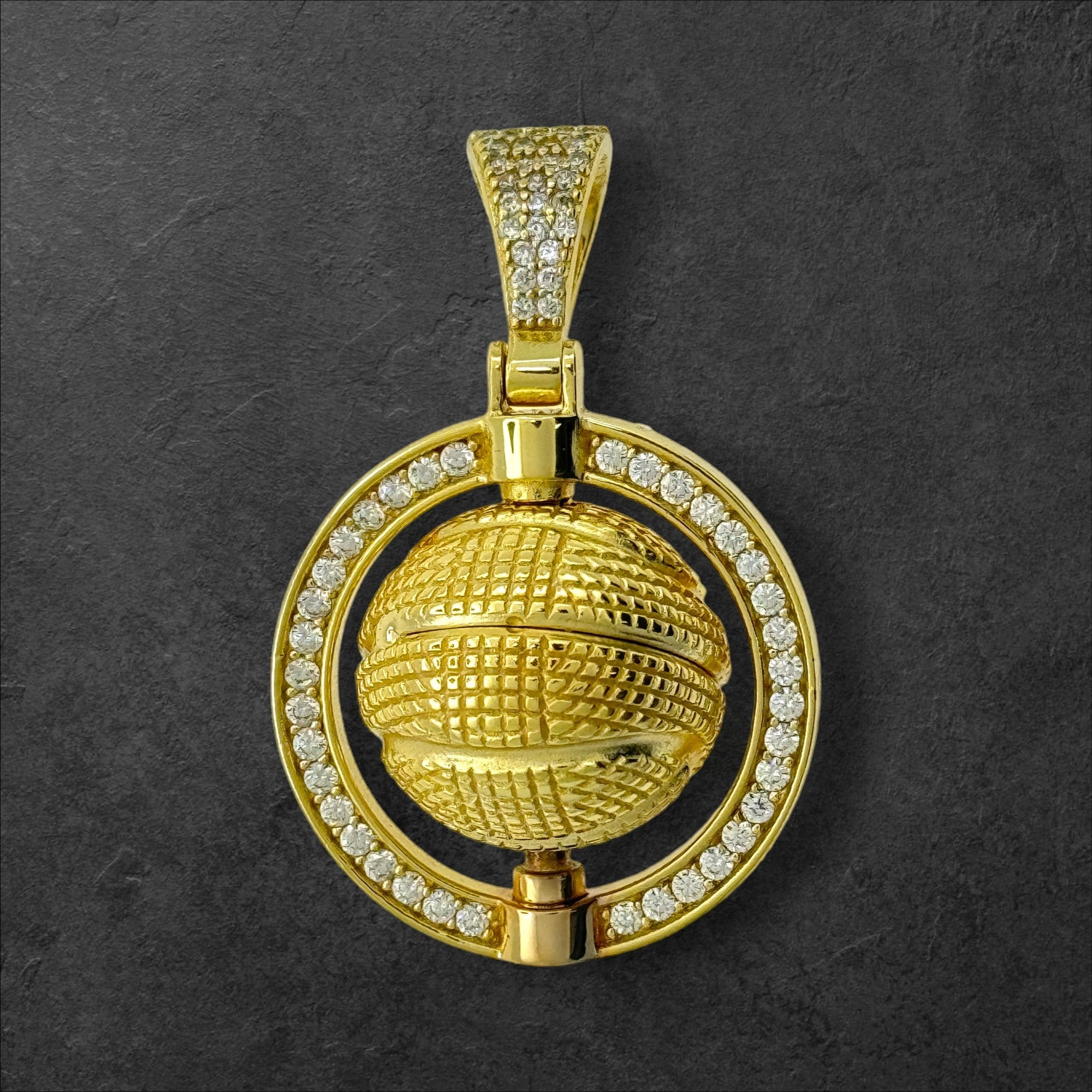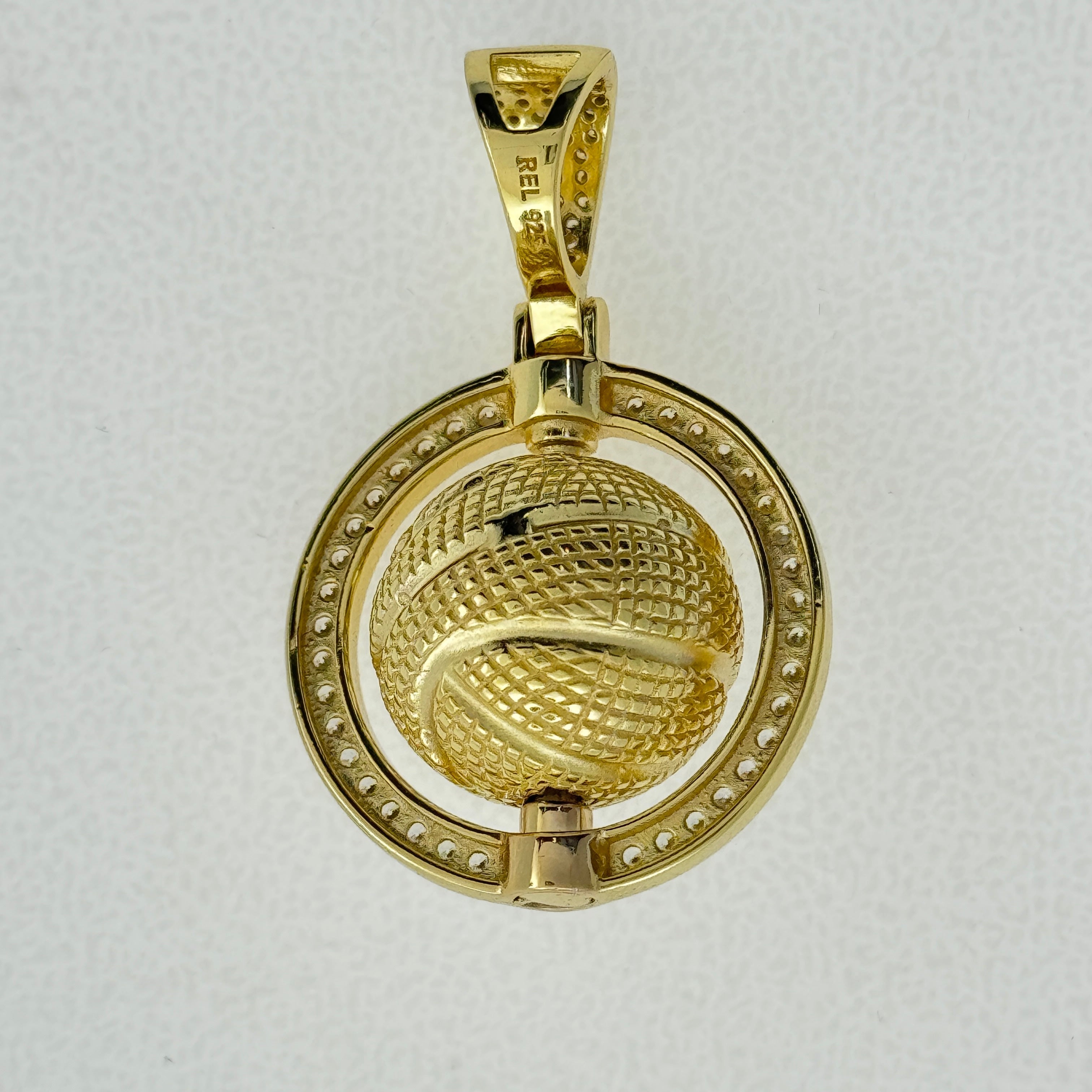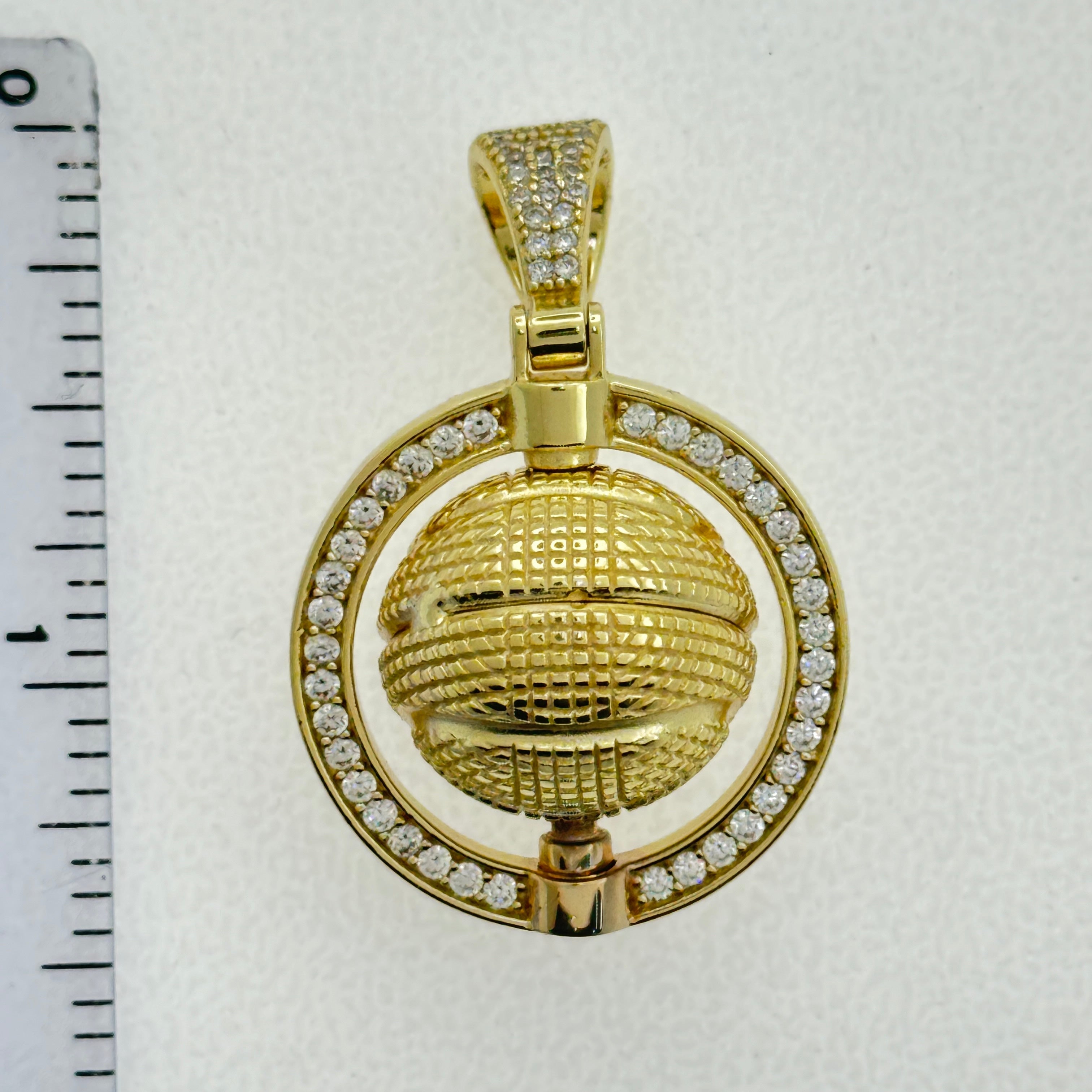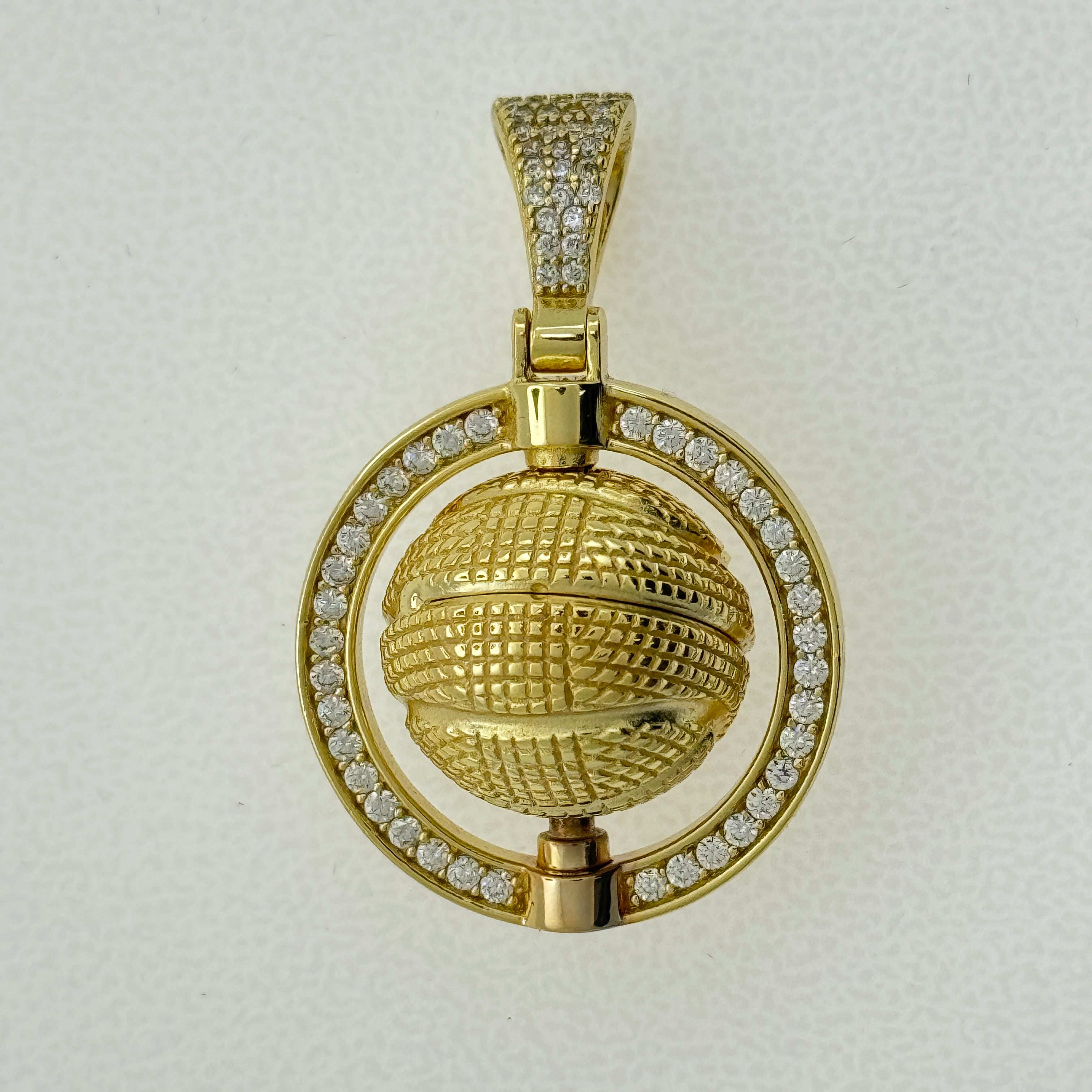 Sterling Silver CZ Spinner Basketball Pendent
