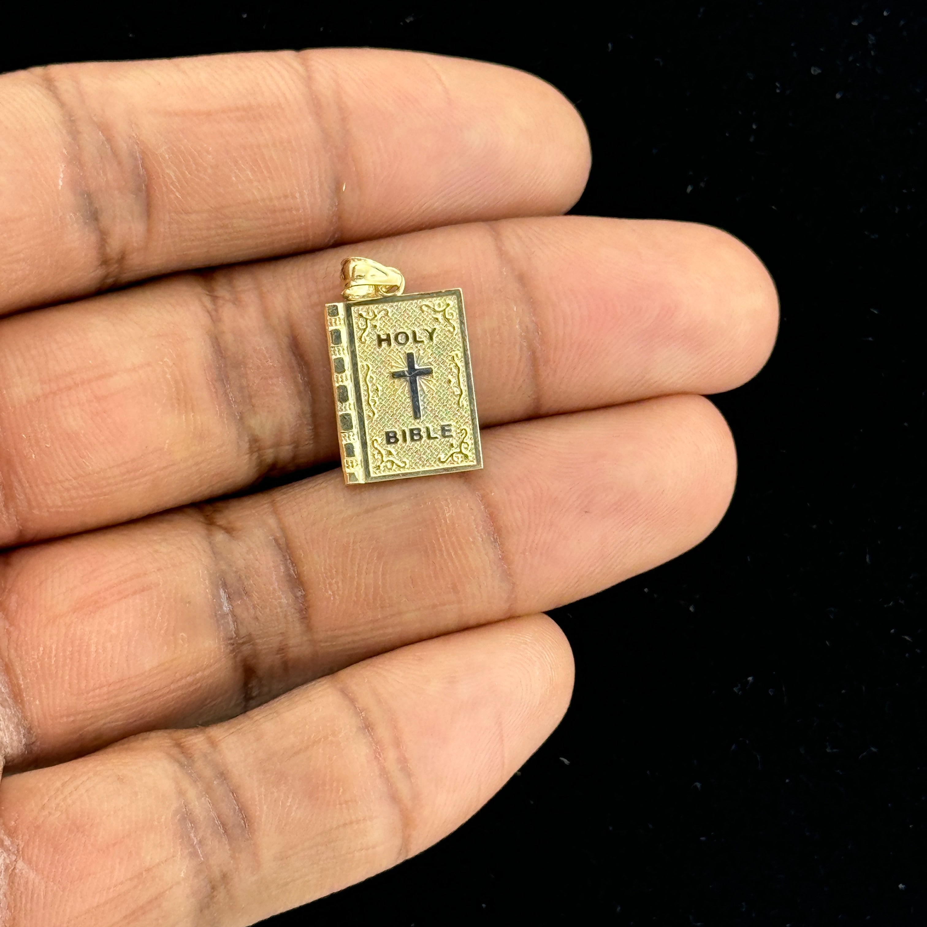 10K Gold Holy Bible Pendant with Cross - 1.35 Grm