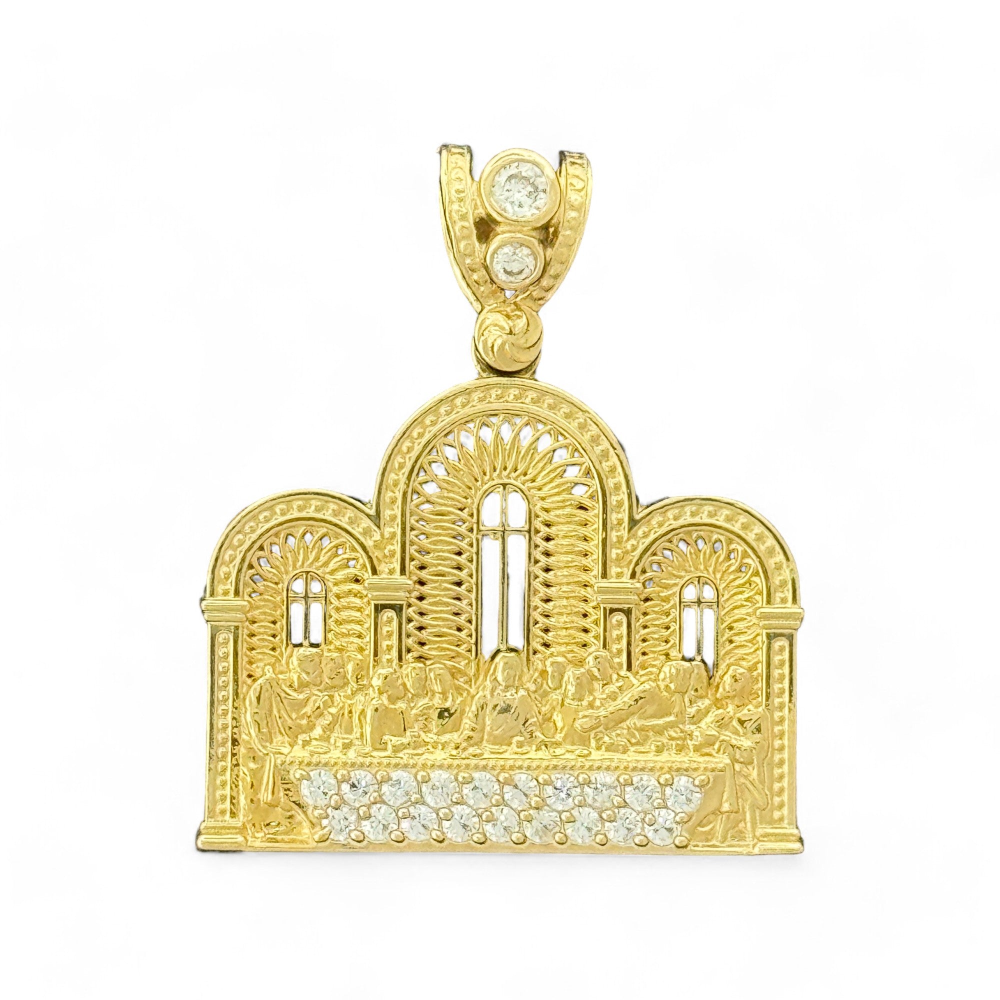 10K Gold Last Supper Pendant with CZ Stones - 3.7 Grm