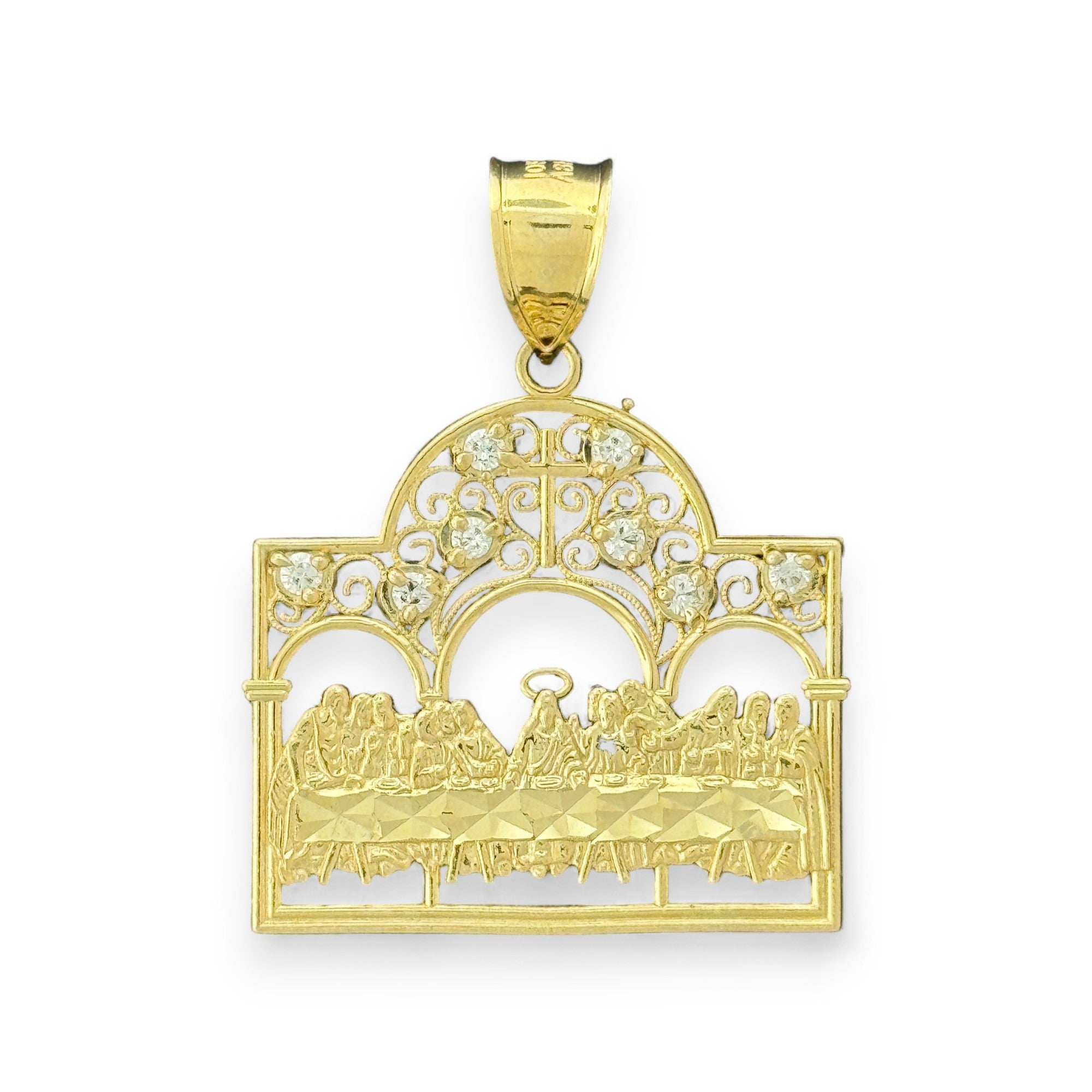 10K Gold Last Supper Pendant with CZ Stones - 4.9 Grm