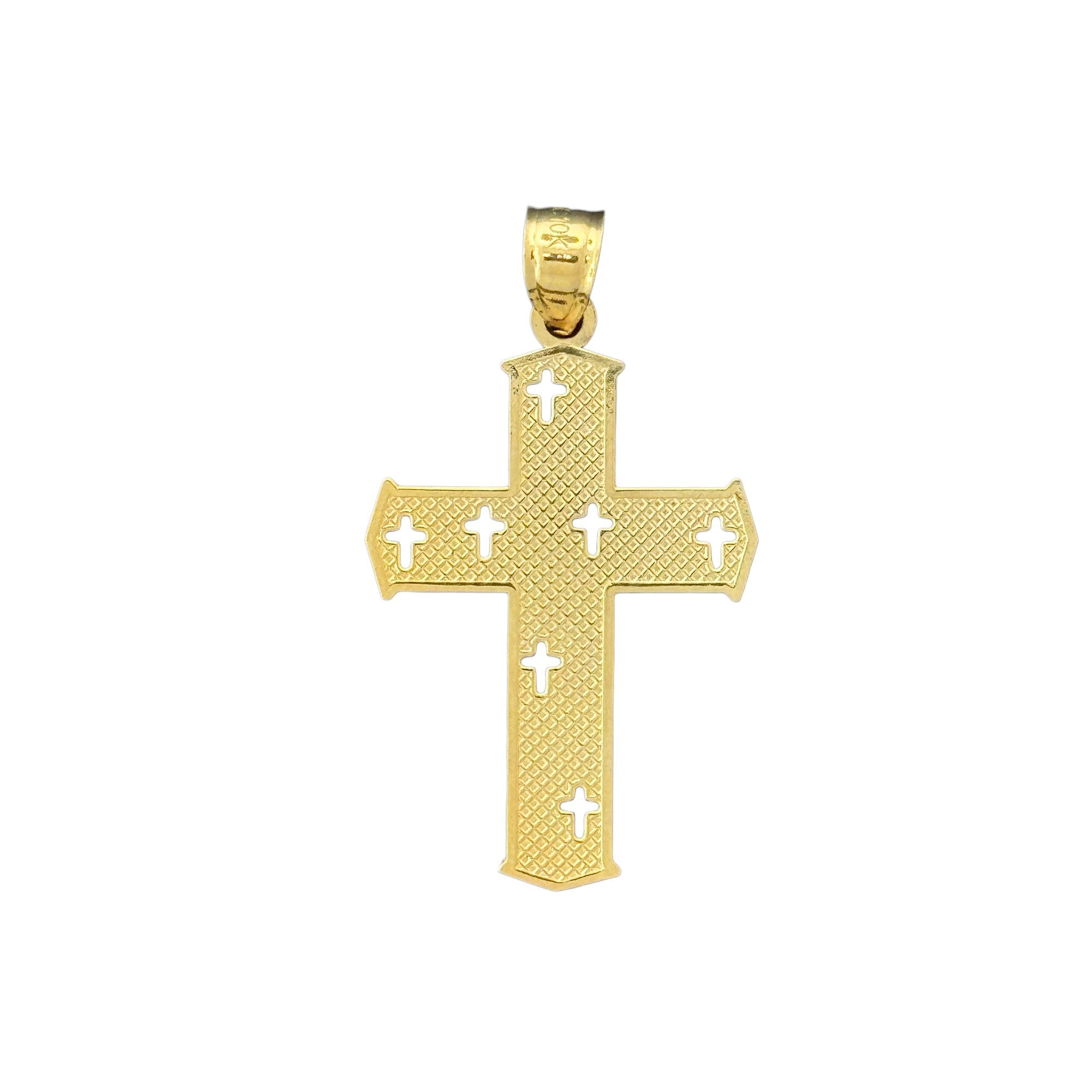 Embrace your faith with this unique 10KT Gold Cross Pendant, featuring an intricate cutout design. Weighing 1.26g and with a 2mm bail, this pendant offers a distinctive design perfect for any occasion. It makes a thoughtful gift or a special addition to your own collection. Order now to add a touch of spiritual elegance to your jewelry!