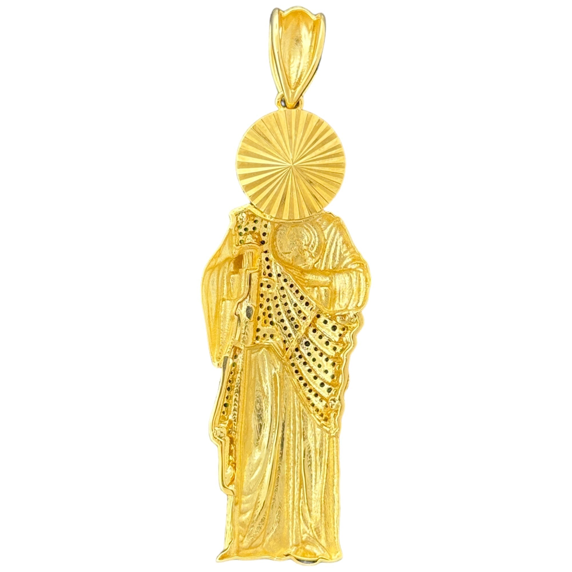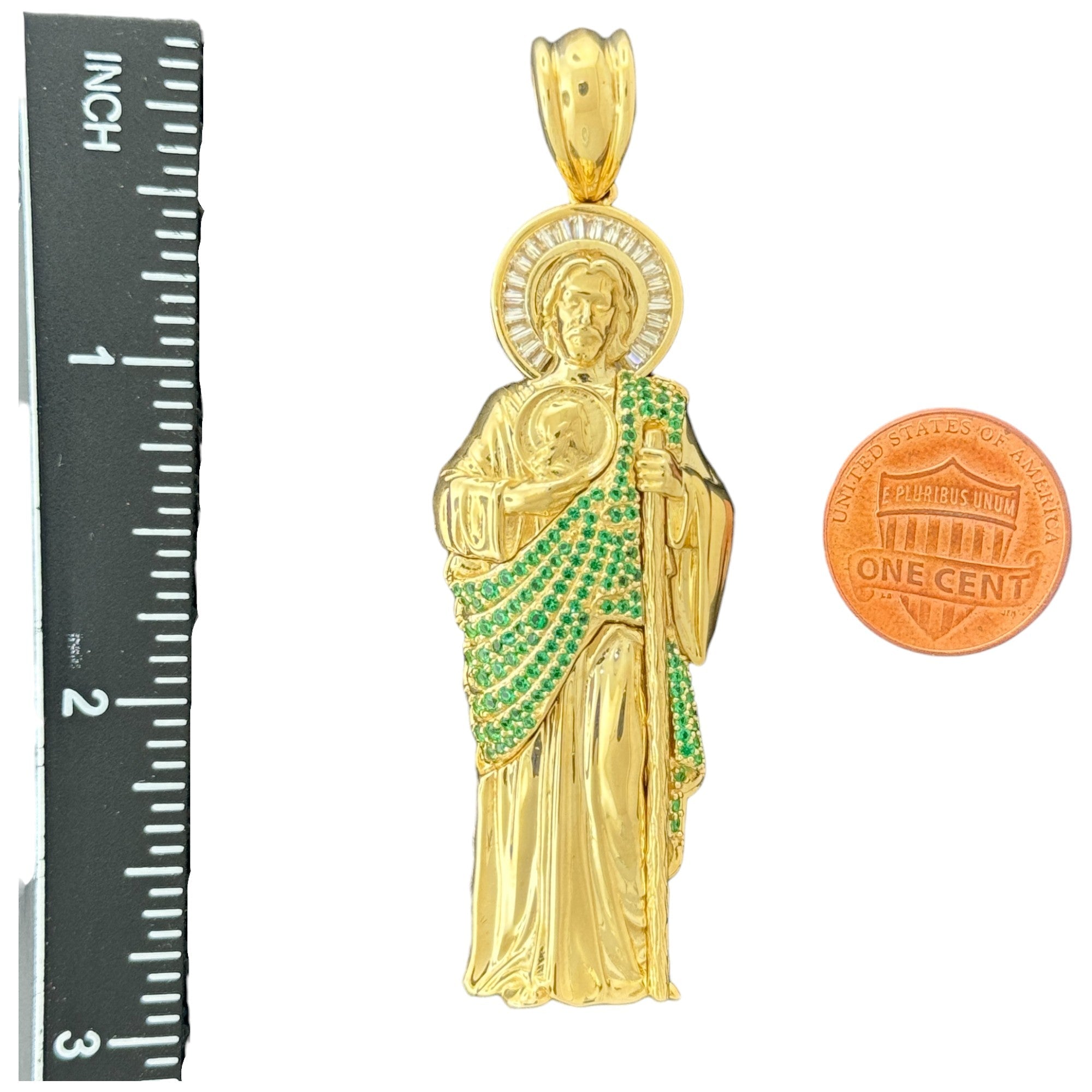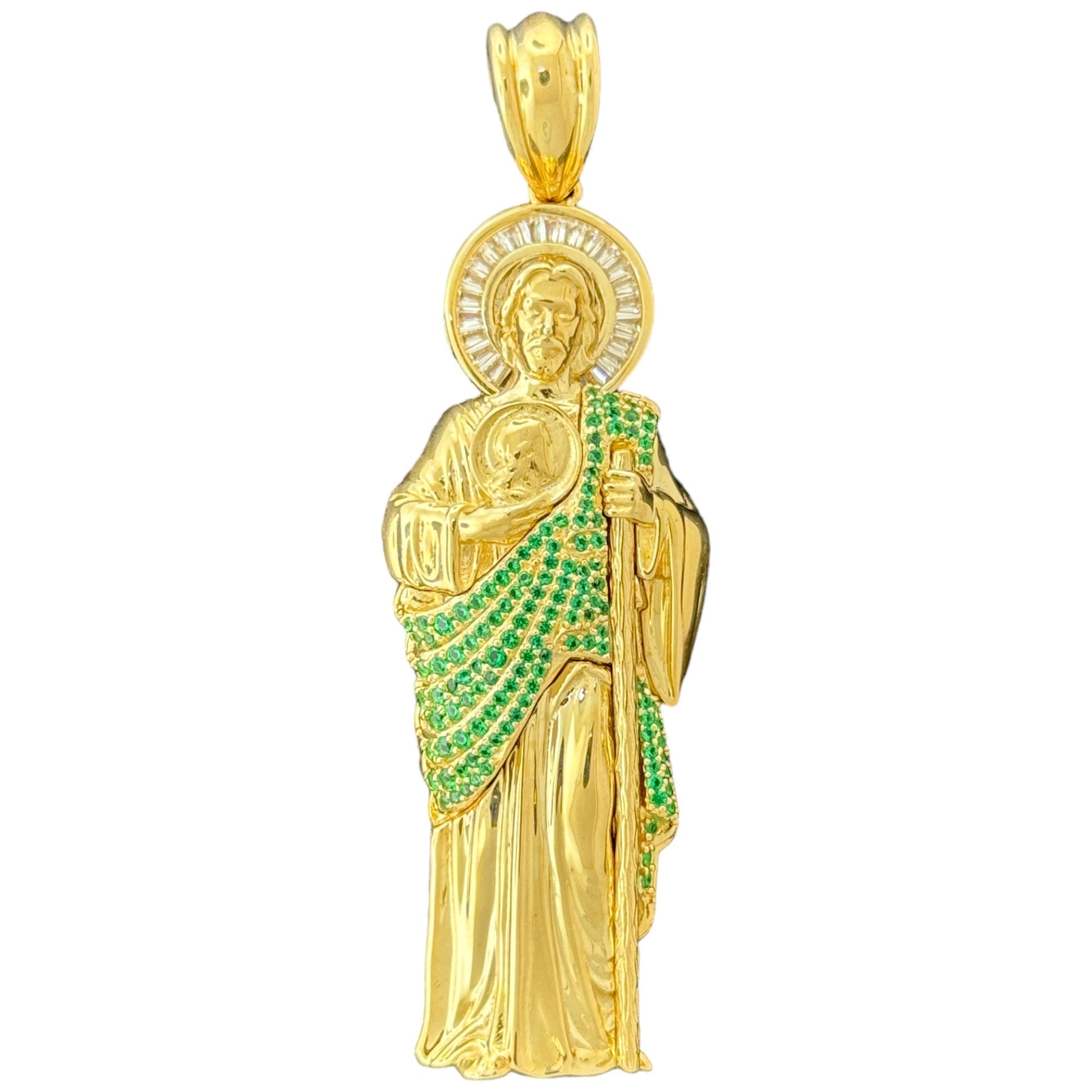10K Gold Saint Pendant with Green CZ Stones - 11.07g