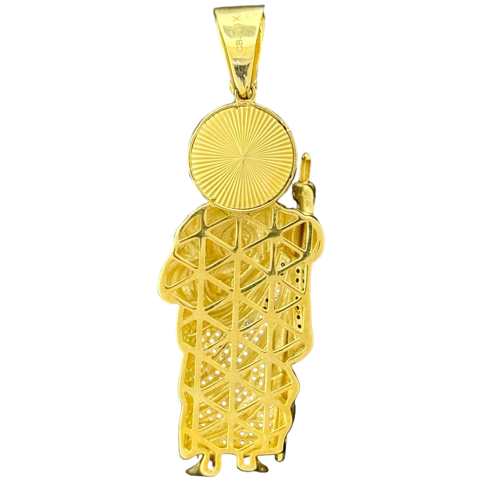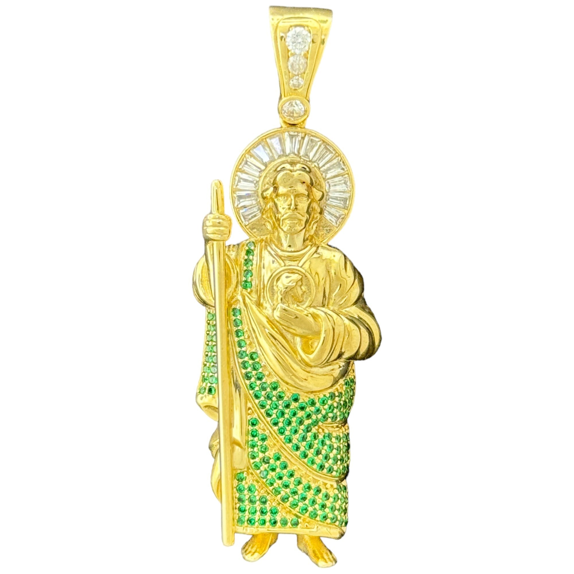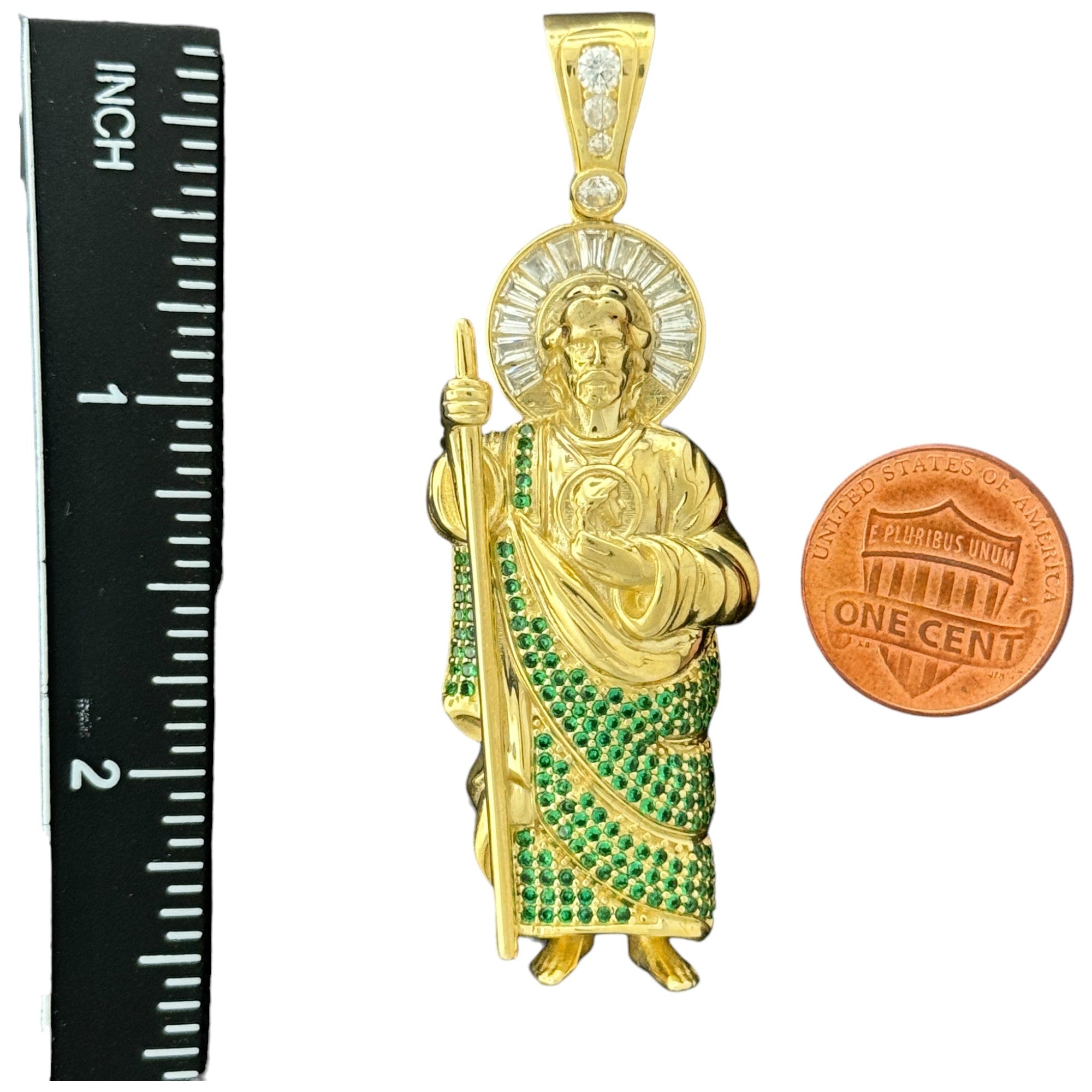 10K Gold Saint Pendant with Green CZ Stones - 12.19g