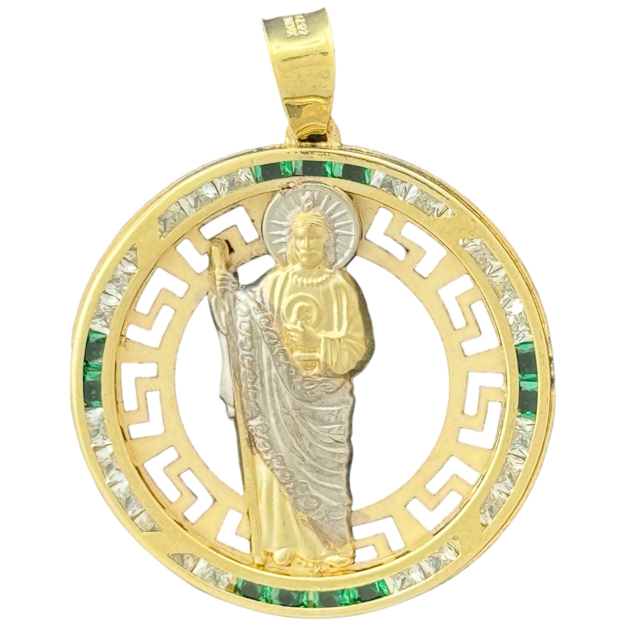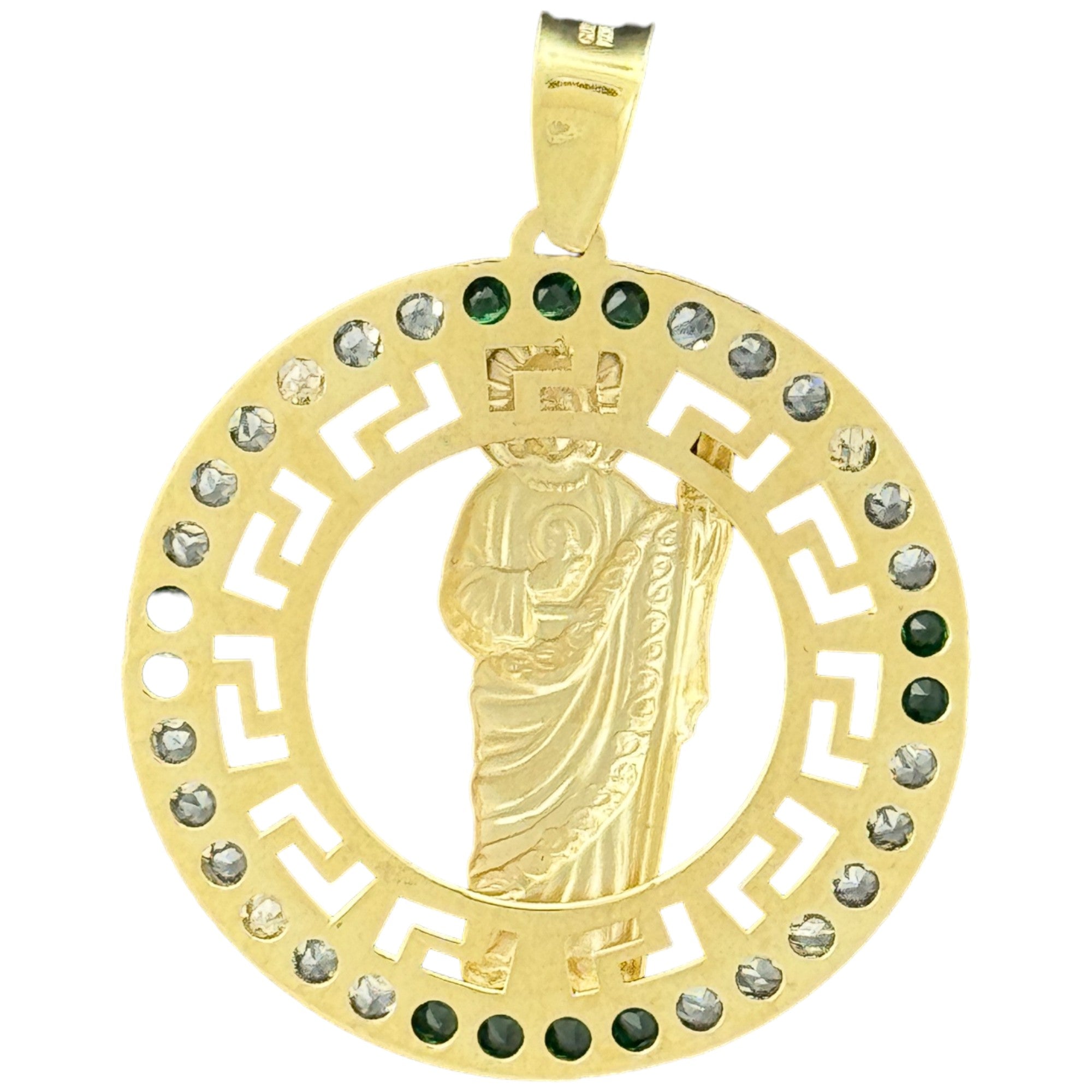 10K Gold Saint Pendant with Green CZ Stones - 2.56g