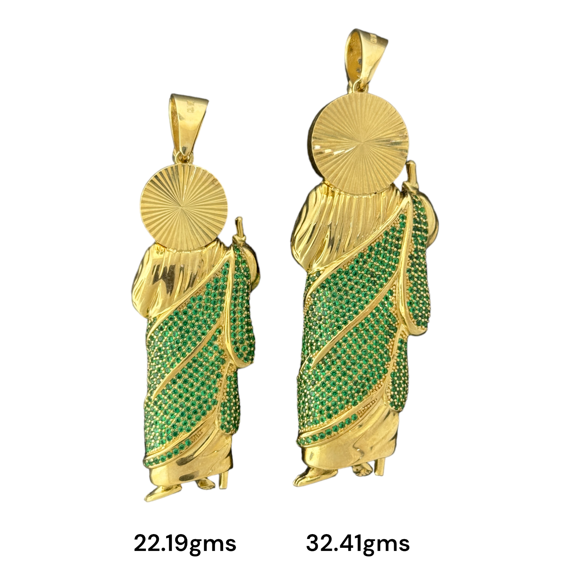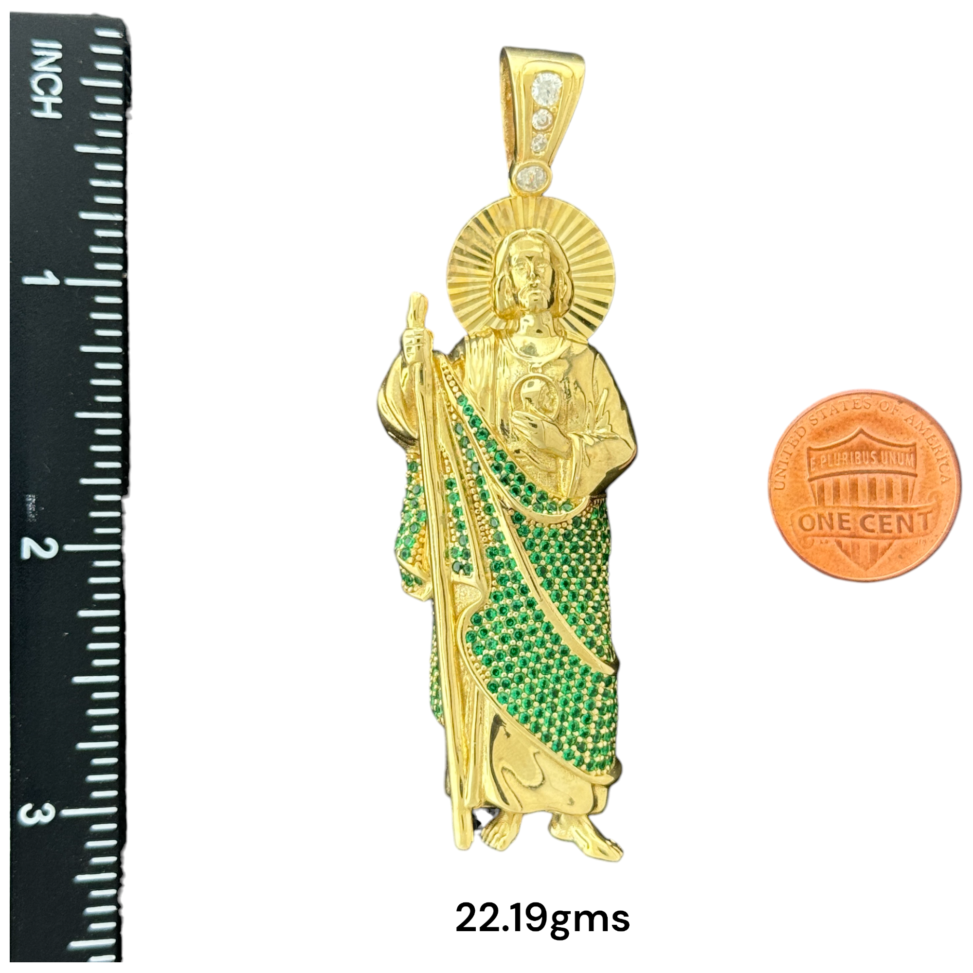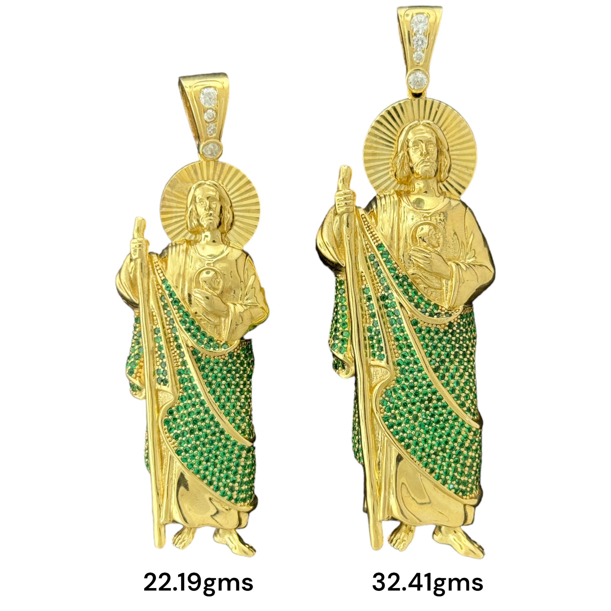 10K Gold Saint Pendant with Green CZ Stones - 22.19g and 32.41g