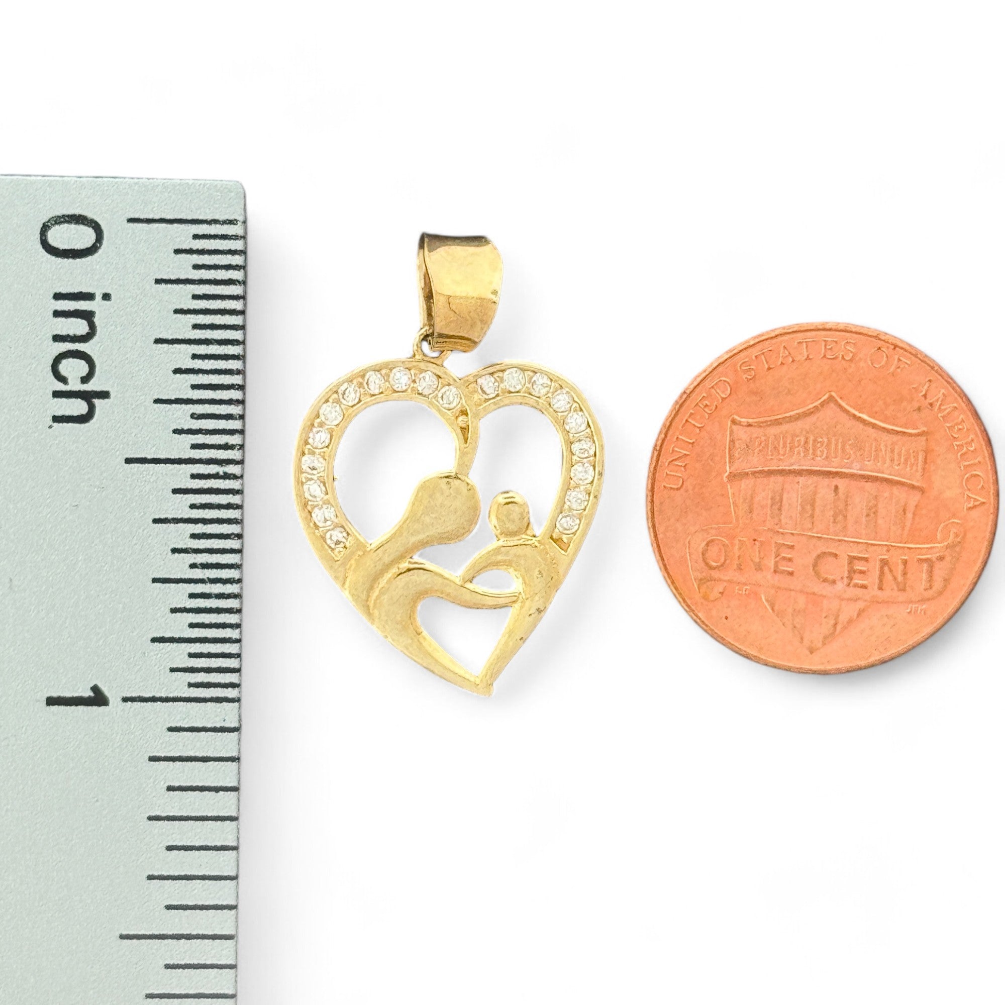 10k Gold Heart Pendant with Mother and Child Design - 1.57 Grm