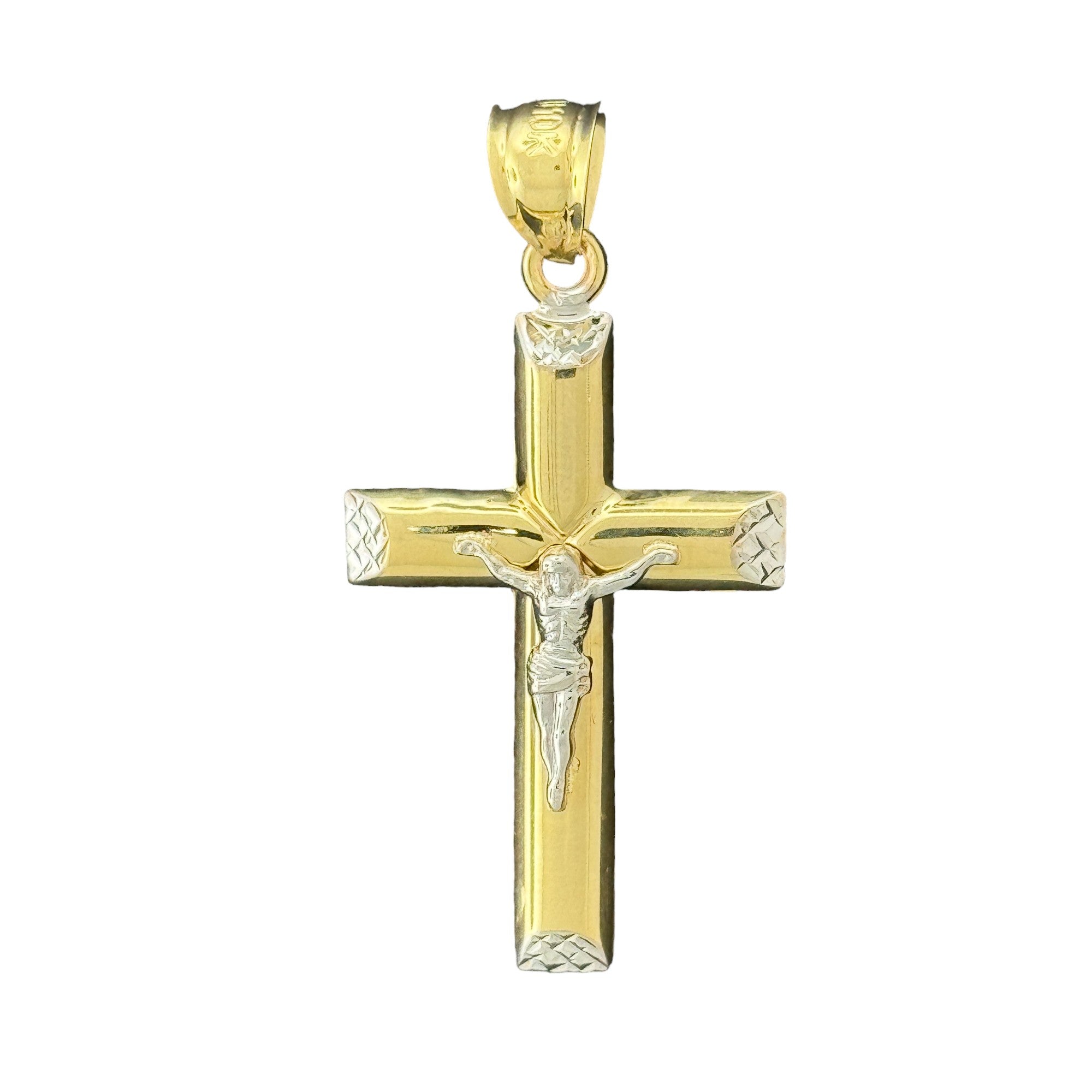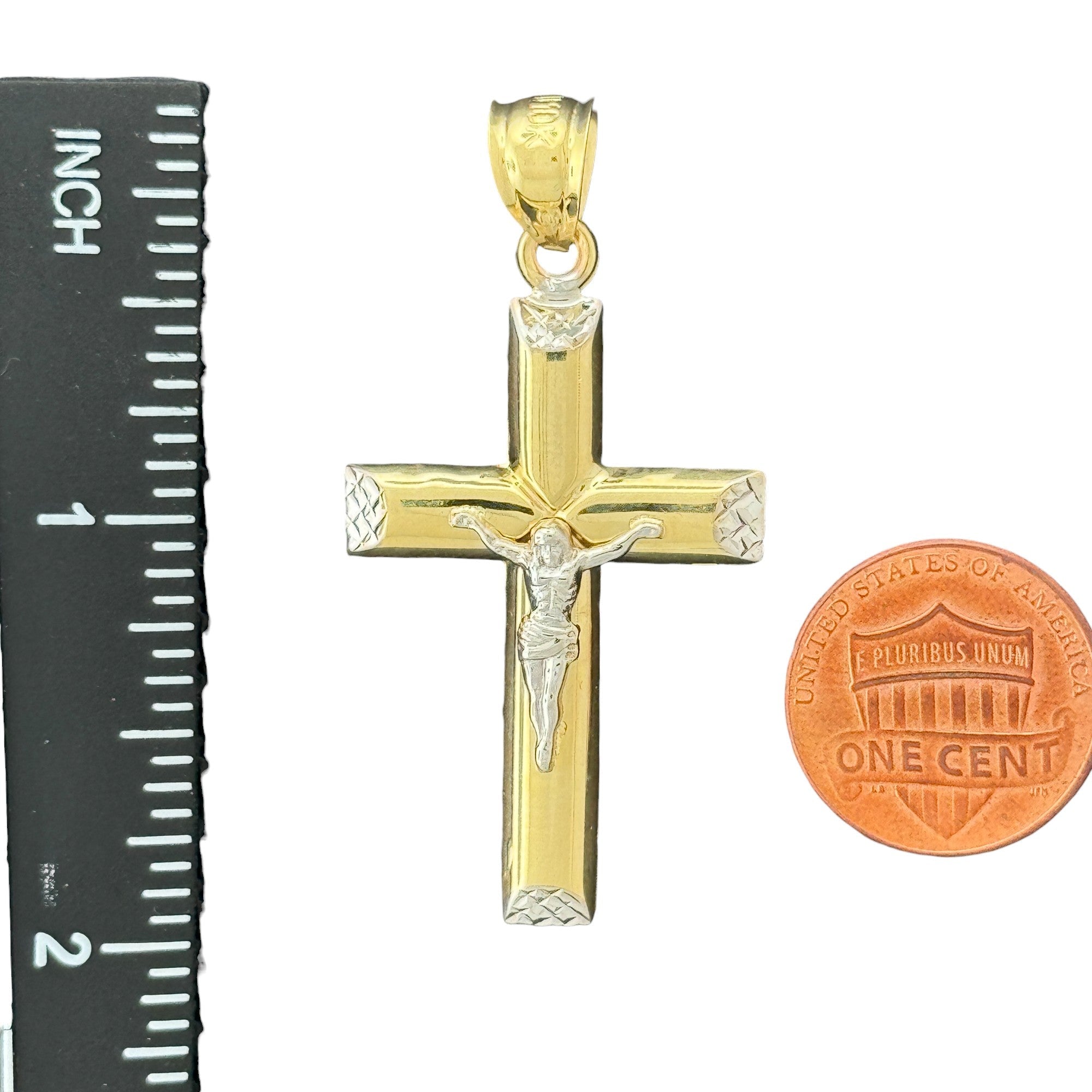 10K Gold Two-Tone Crucifix Pendant - 2.14g
