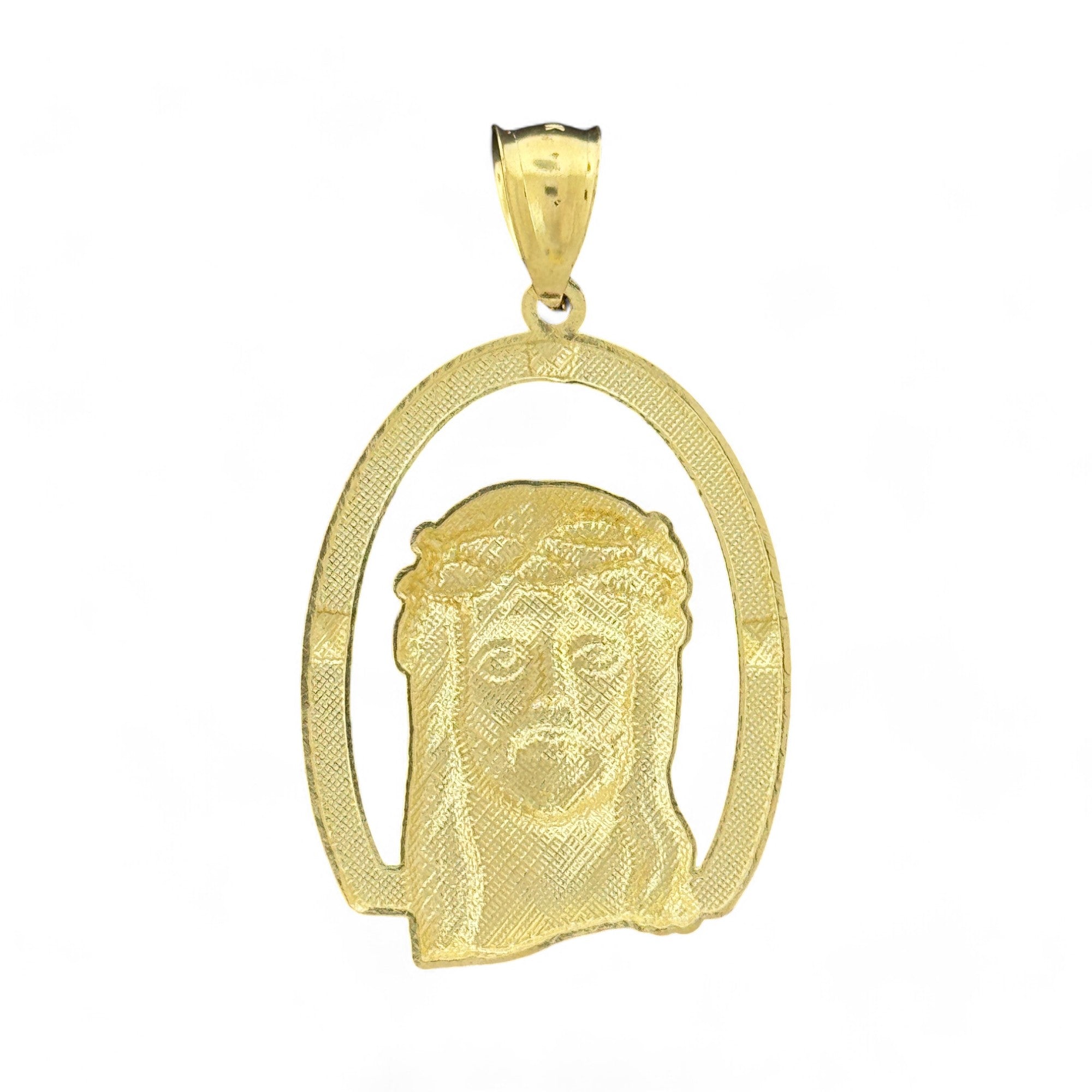 10KT Two-Tone Gold Jesus Pendant with Oval Frame