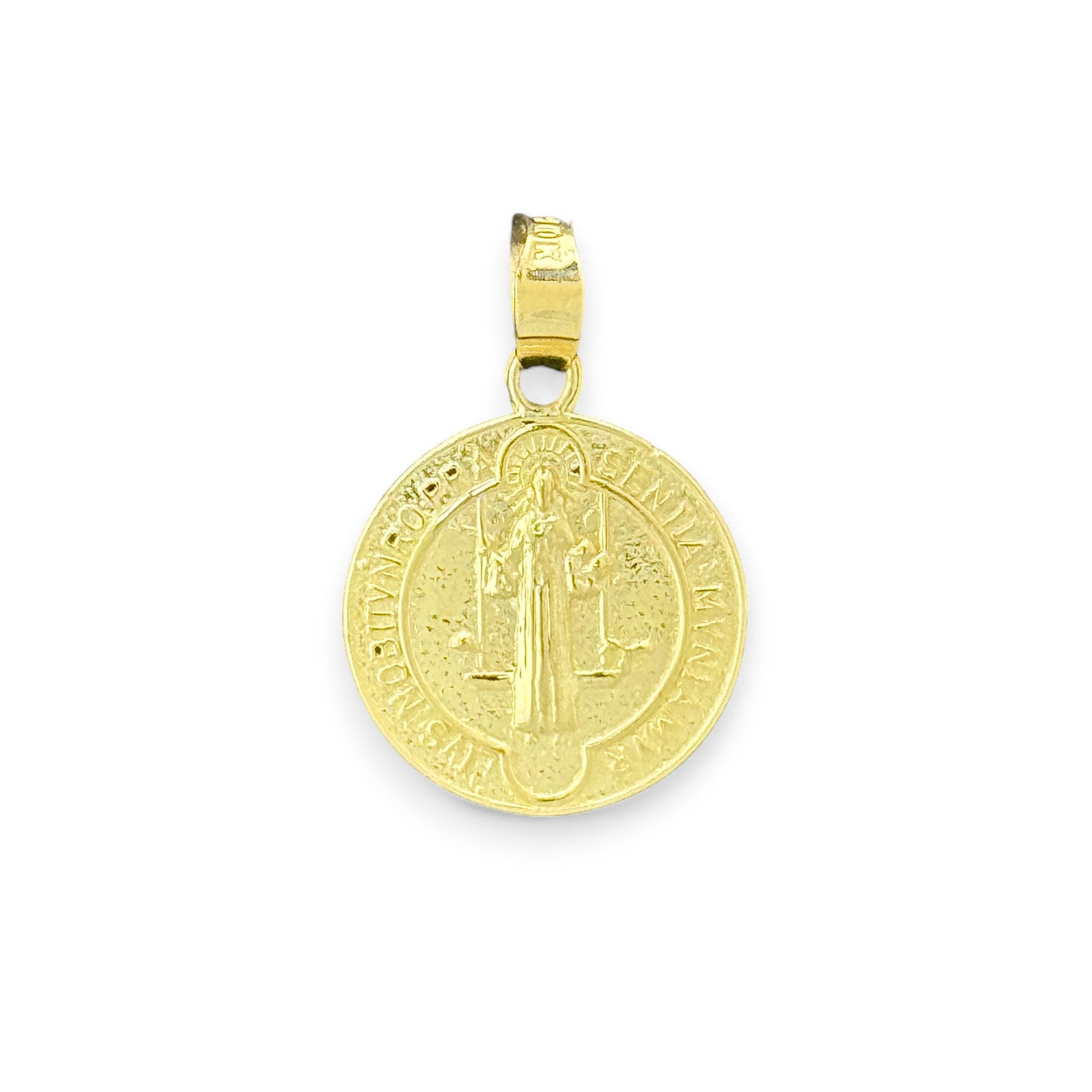 Celebrate your faith with this beautiful 10KT Yellow Gold Saint Benedict Medal Pendant. Featuring a detailed depiction of Saint Benedict, this pendant showcases exceptional craftsmanship. Suitable for both men and women, it is a perfect accessory for daily wear or special occasions. The pendant fits up to a 2mm chain, making it a versatile addition to any jewelry collection.