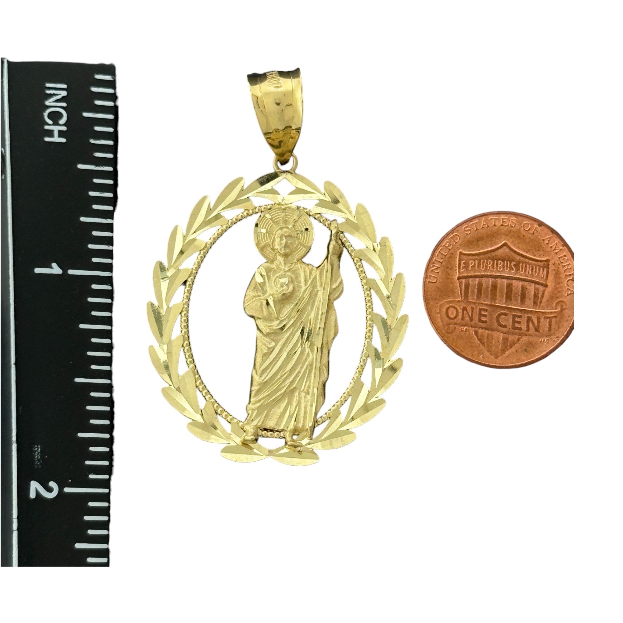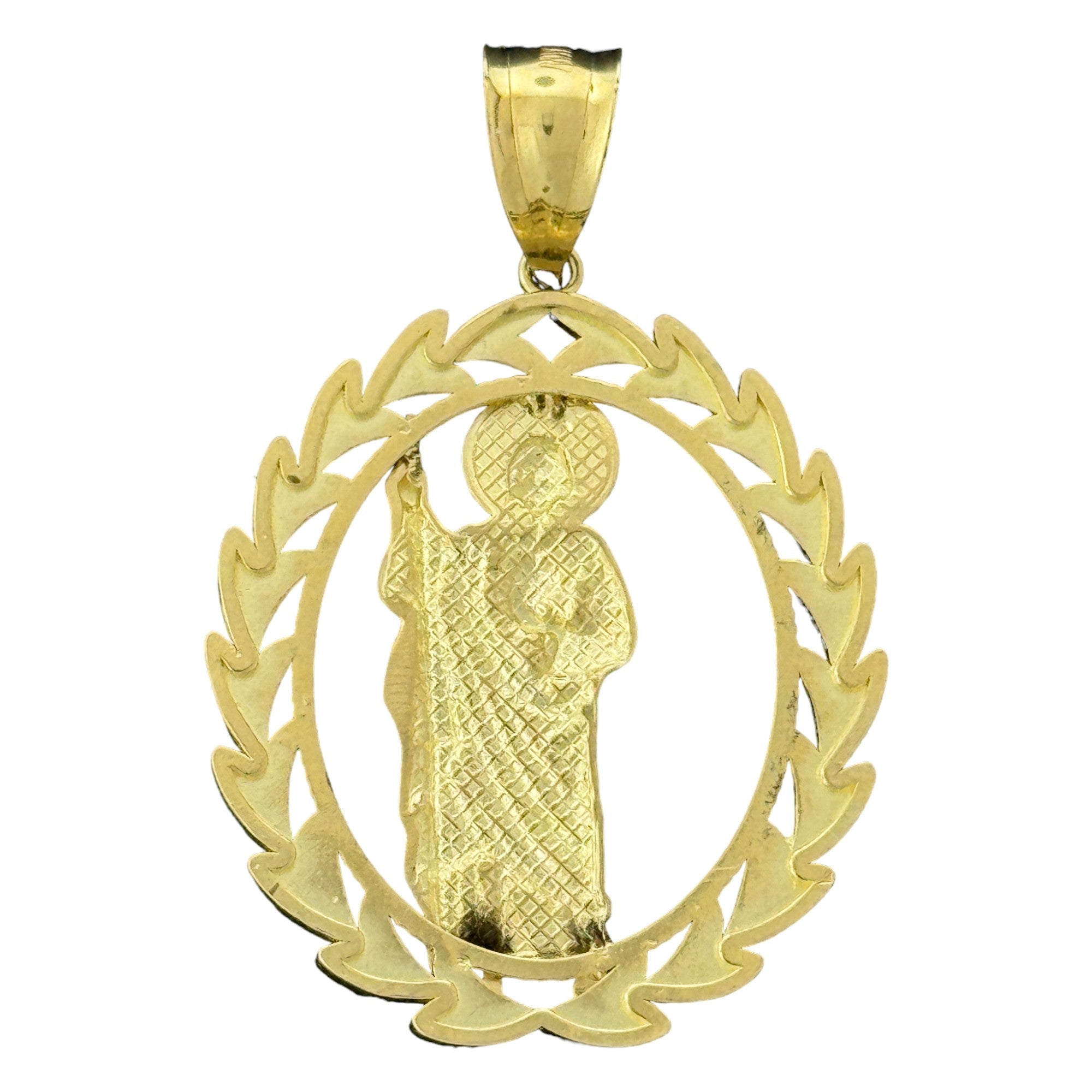 10K Gold Round Saint Pendant with CZ Stones - 5.1g