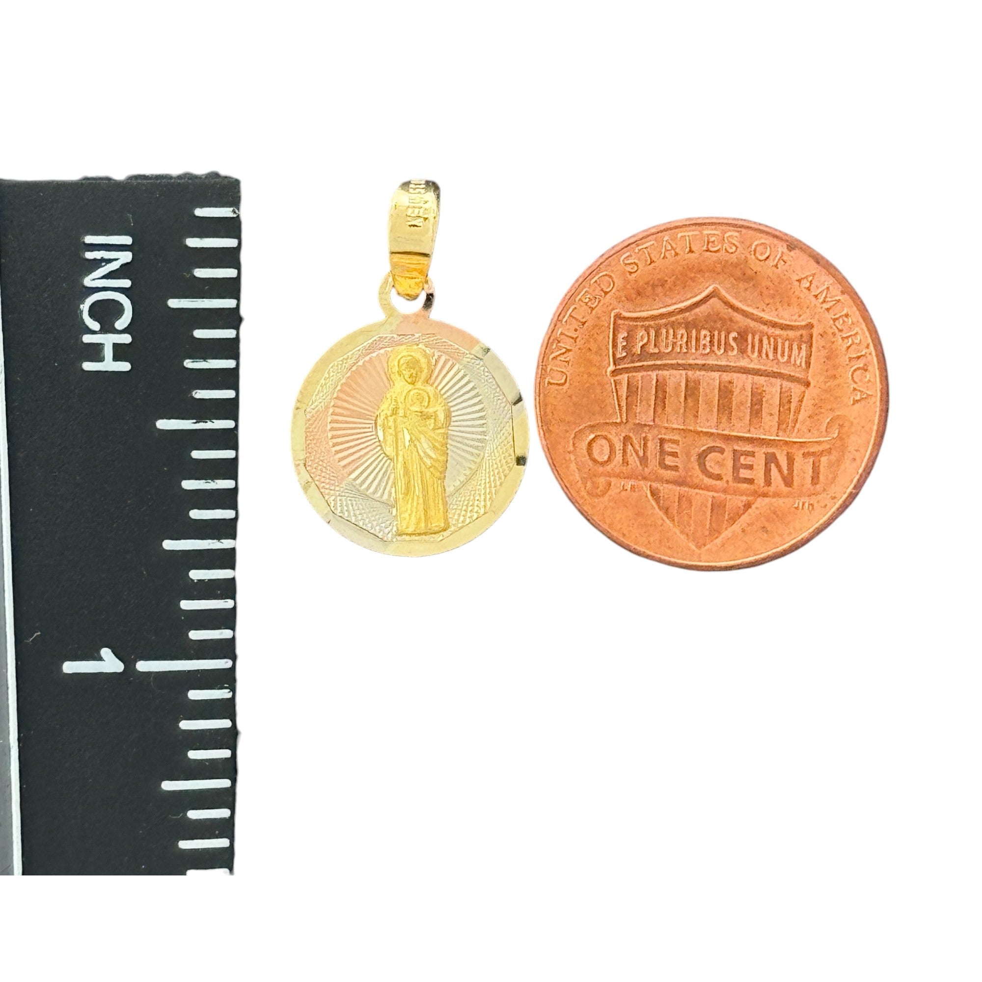 10K Gold Round Saint Pendant - 0.85g