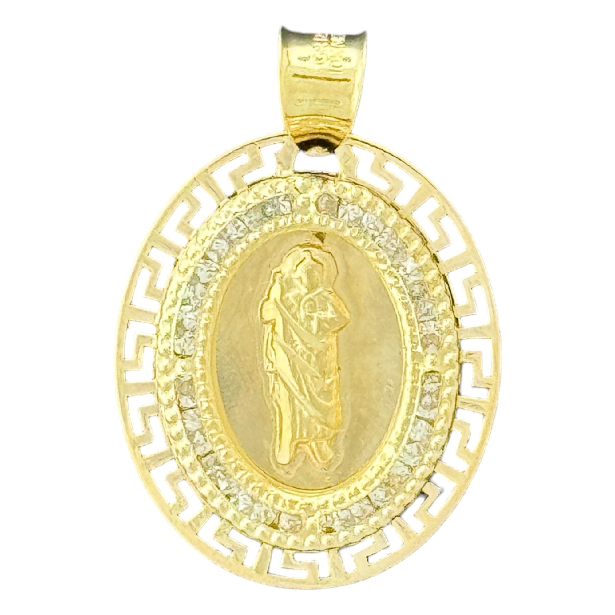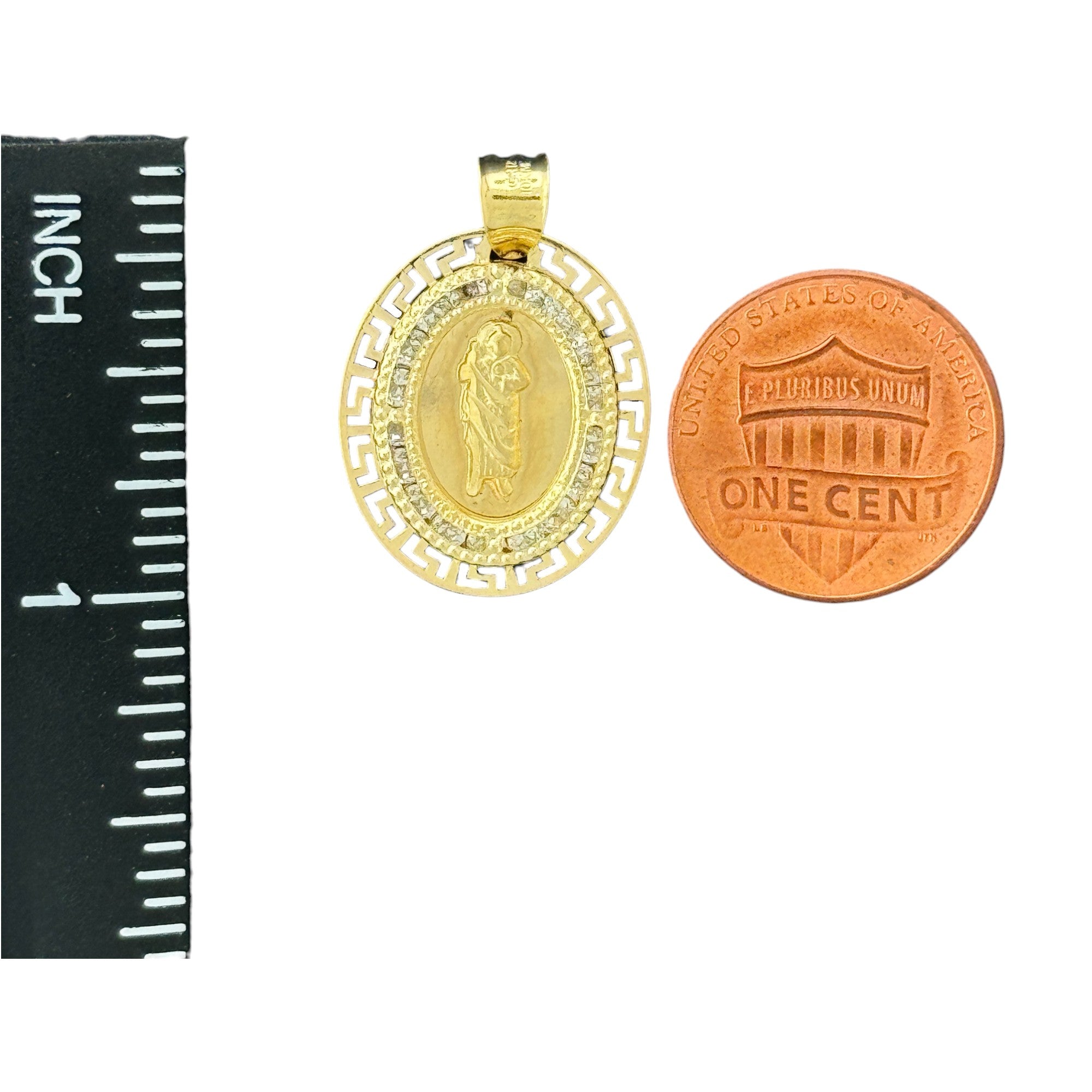 10K Gold Oval Saint Pendant with CZ Stones - 1.24g Religious Jewelry