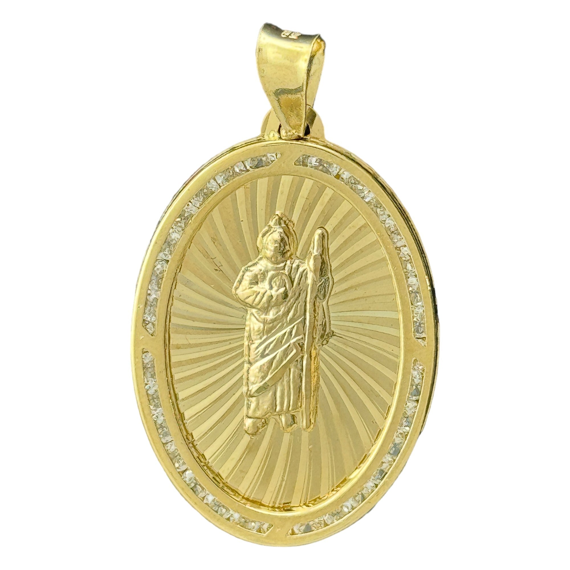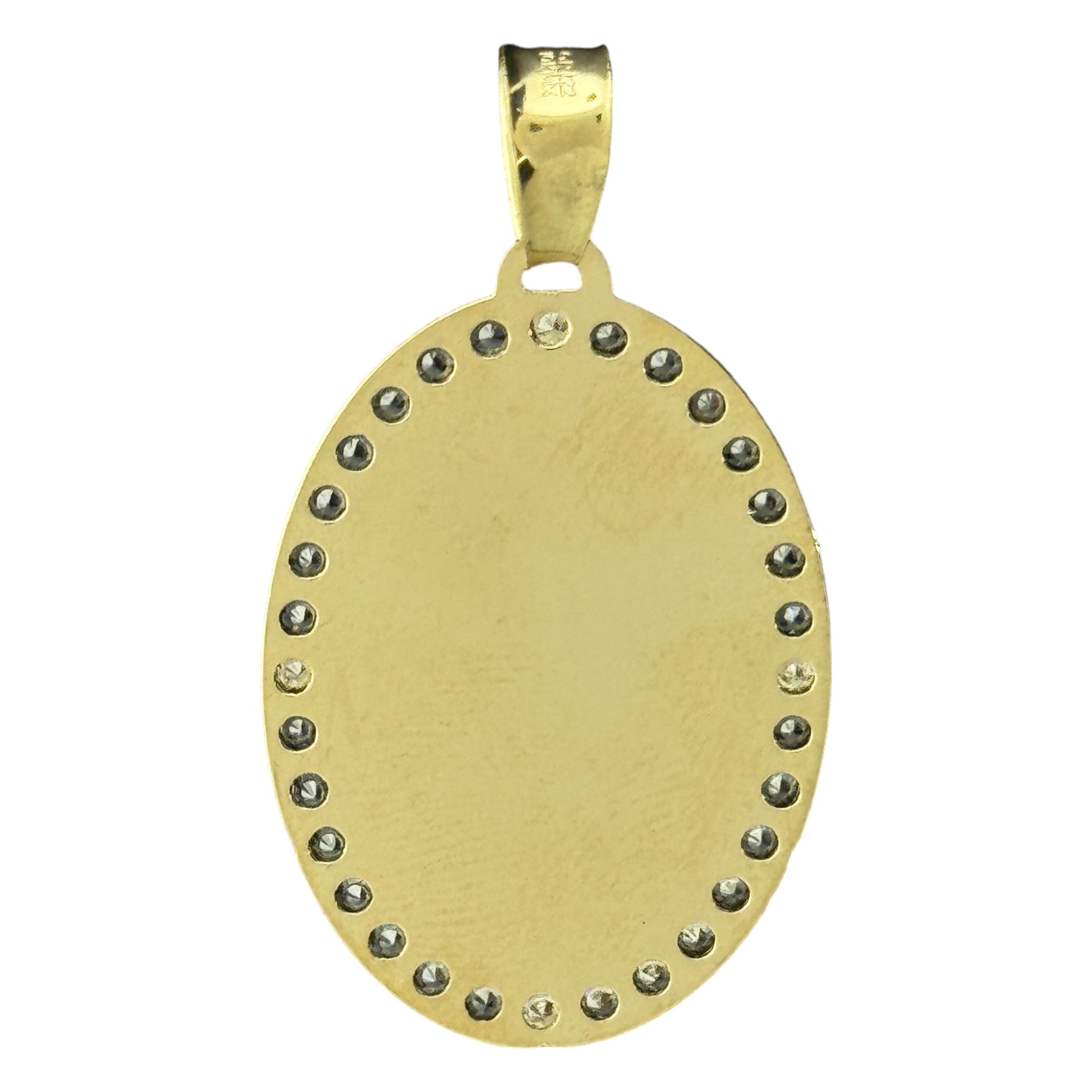 10K Gold Oval Saint Pendant with CZ Stones - 2.55g