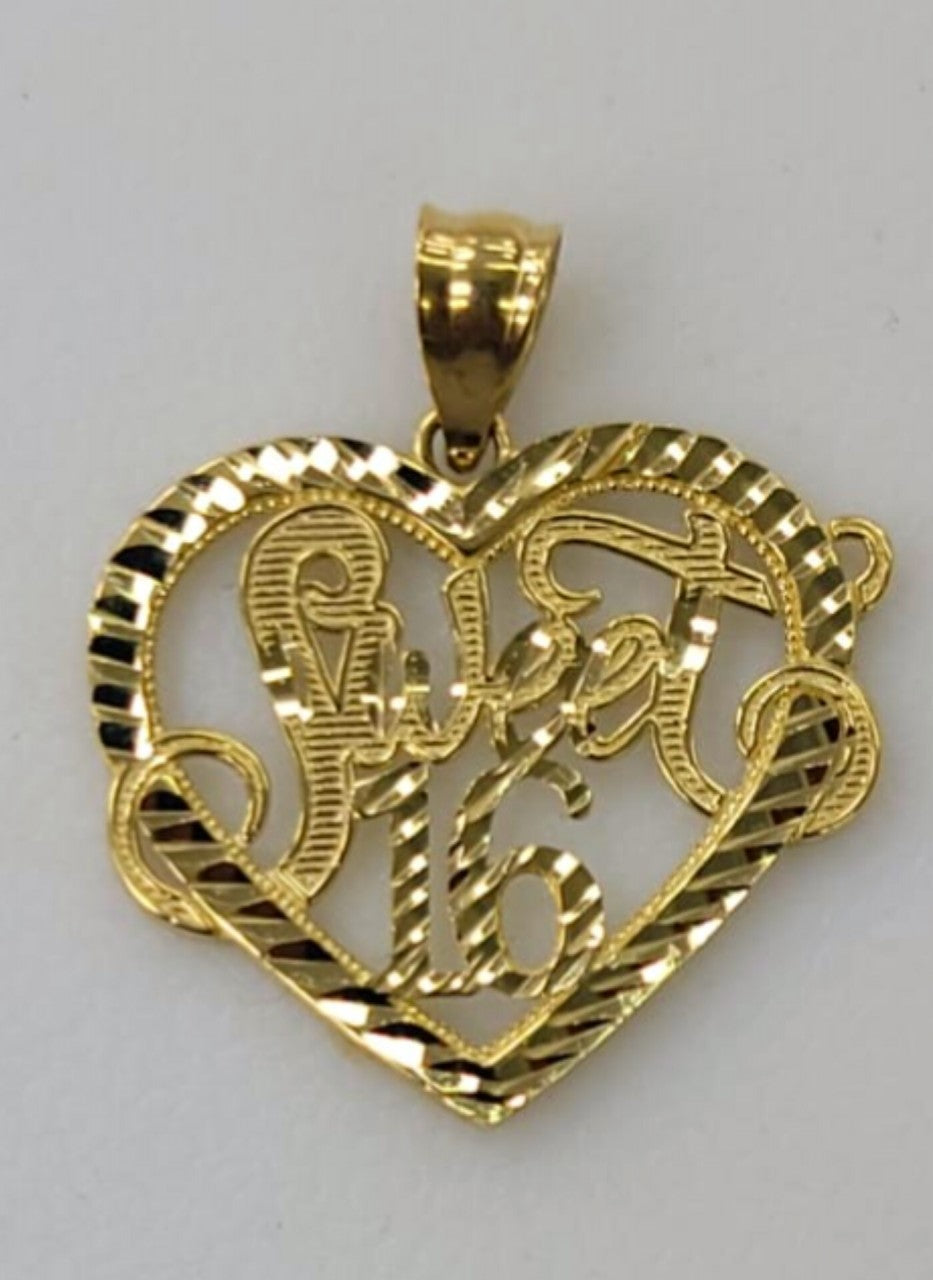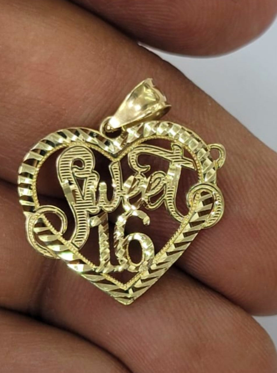 TThis stunning 10Kt Sweet 16 heart real yellow gold pendant is of very high quality. This exquisite piece is able to catch light from every angle, making it the perfect bling to add into your everyday drip. Add this stylish pendant to your collection today! We carry the highest quality jewelry, making sure this pendant will never disappoint.100% Authentic 10KT GoldShips within 1 business dayApproximately gramsPremium workmanshipDiamond Cut FinishCustom made designs Brand New10KT stamp on the bail/loop We at Captain Bling have 25+ years of experience! Shop with confidence and our assurance that you will not be let down by our high quality pieces! Check out our ebay store for more high quality pieces to add into your collection.ype a description for this product here...