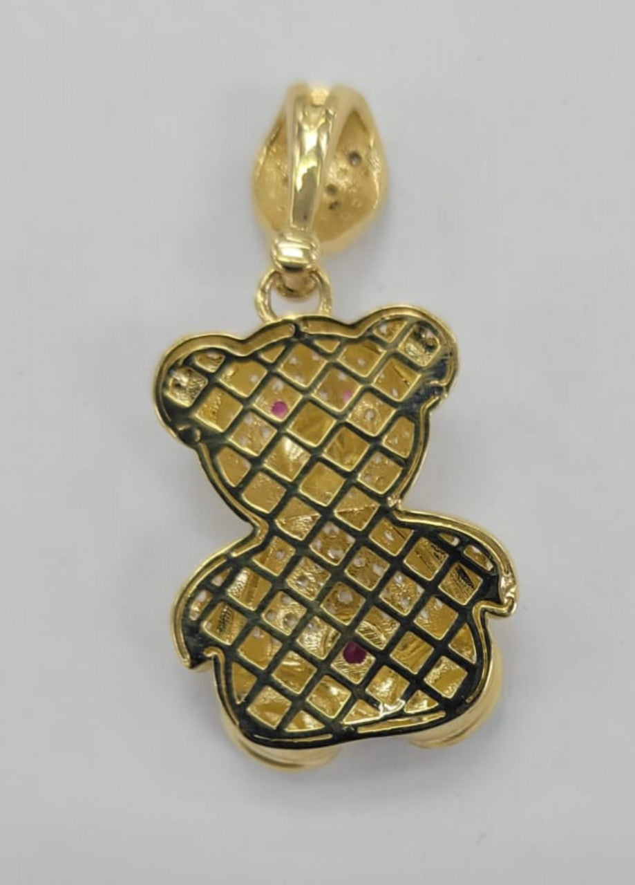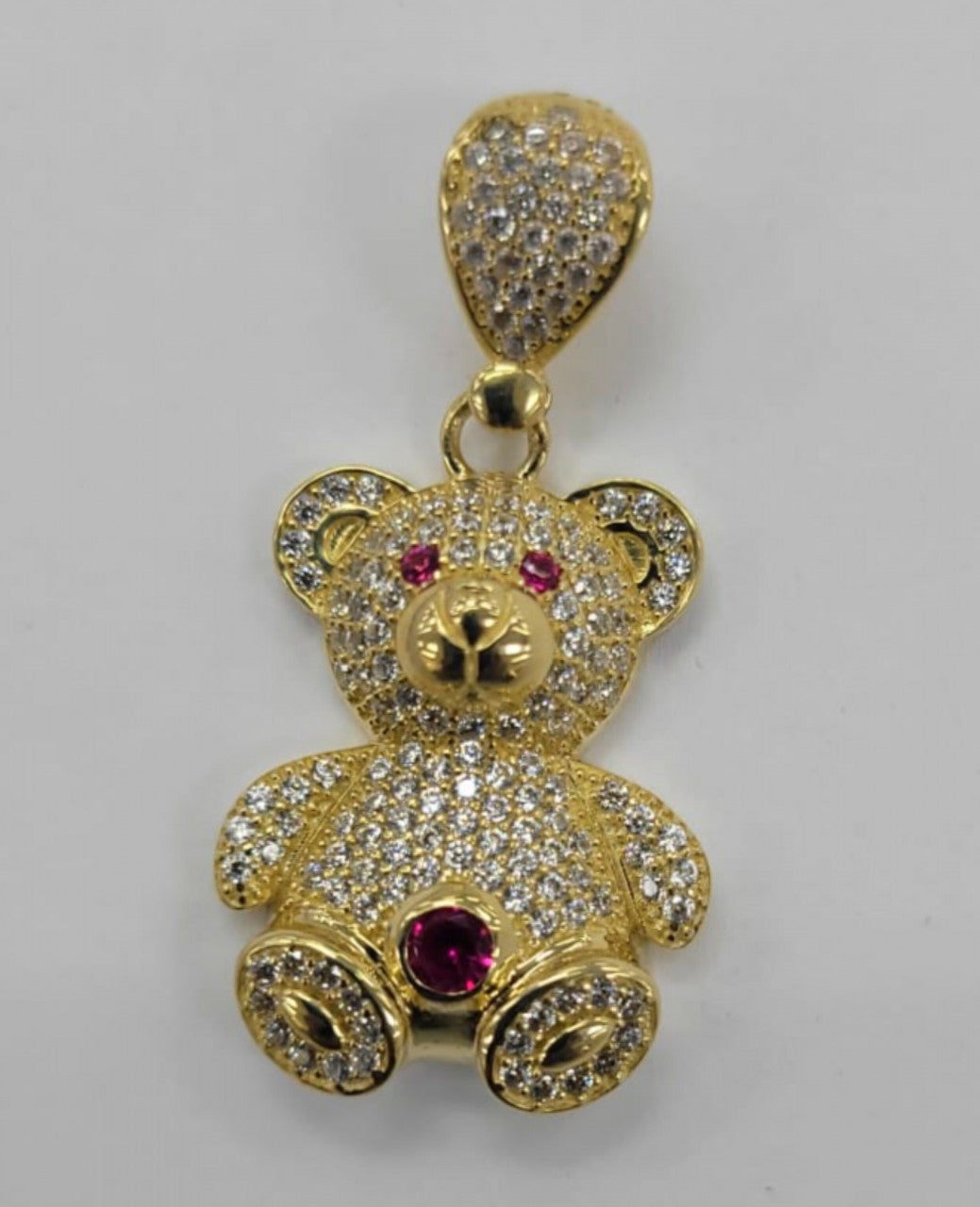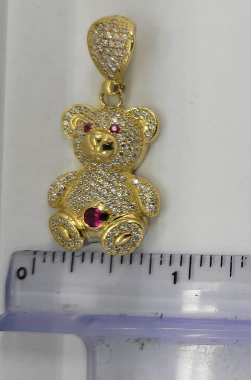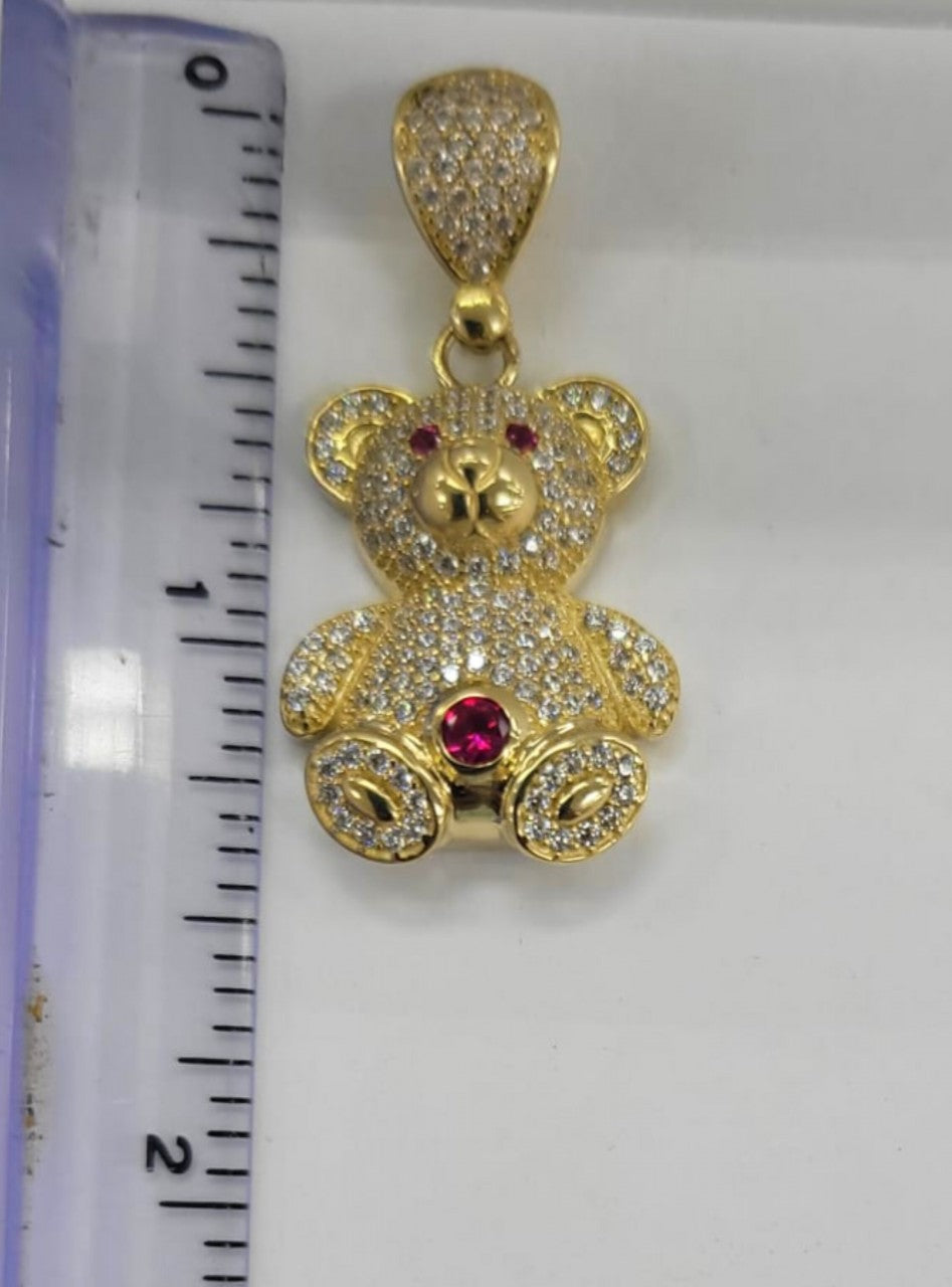 10K Gold Teddy with pink stone eyes pendant, premium quality , Brand new