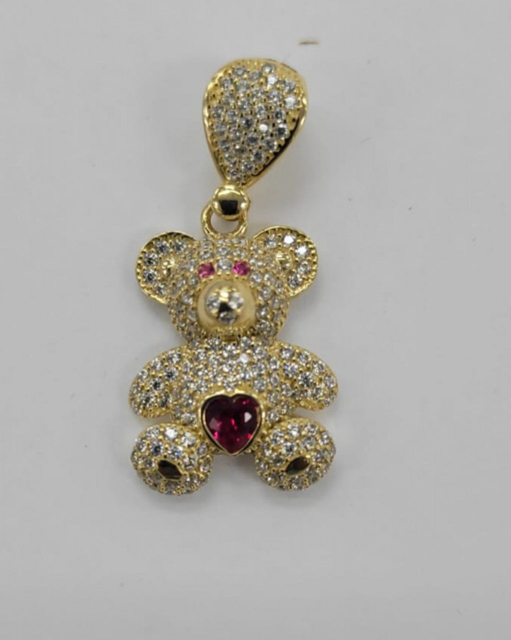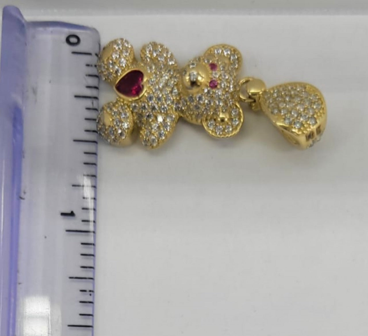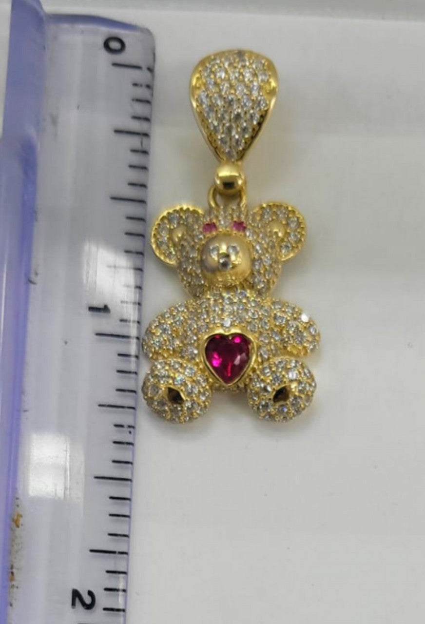 10K Gold Teddy with pink stone eyes pendant, premium quality , Brand new.