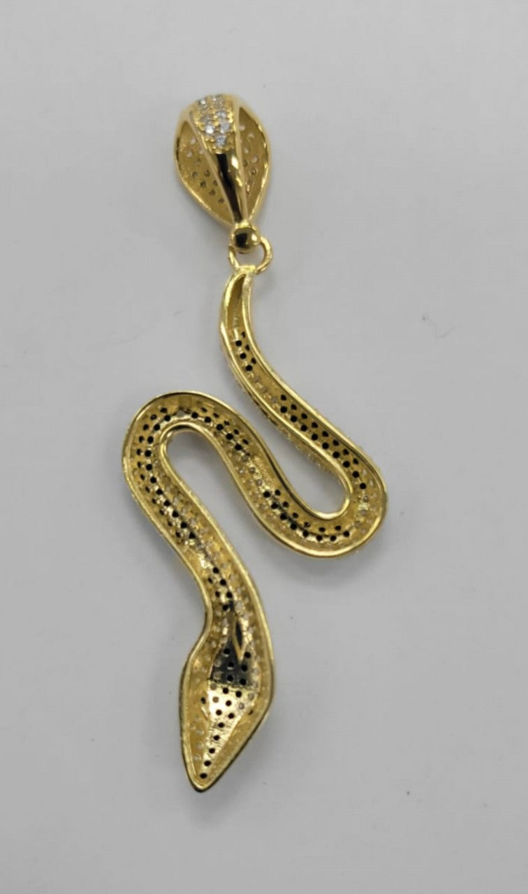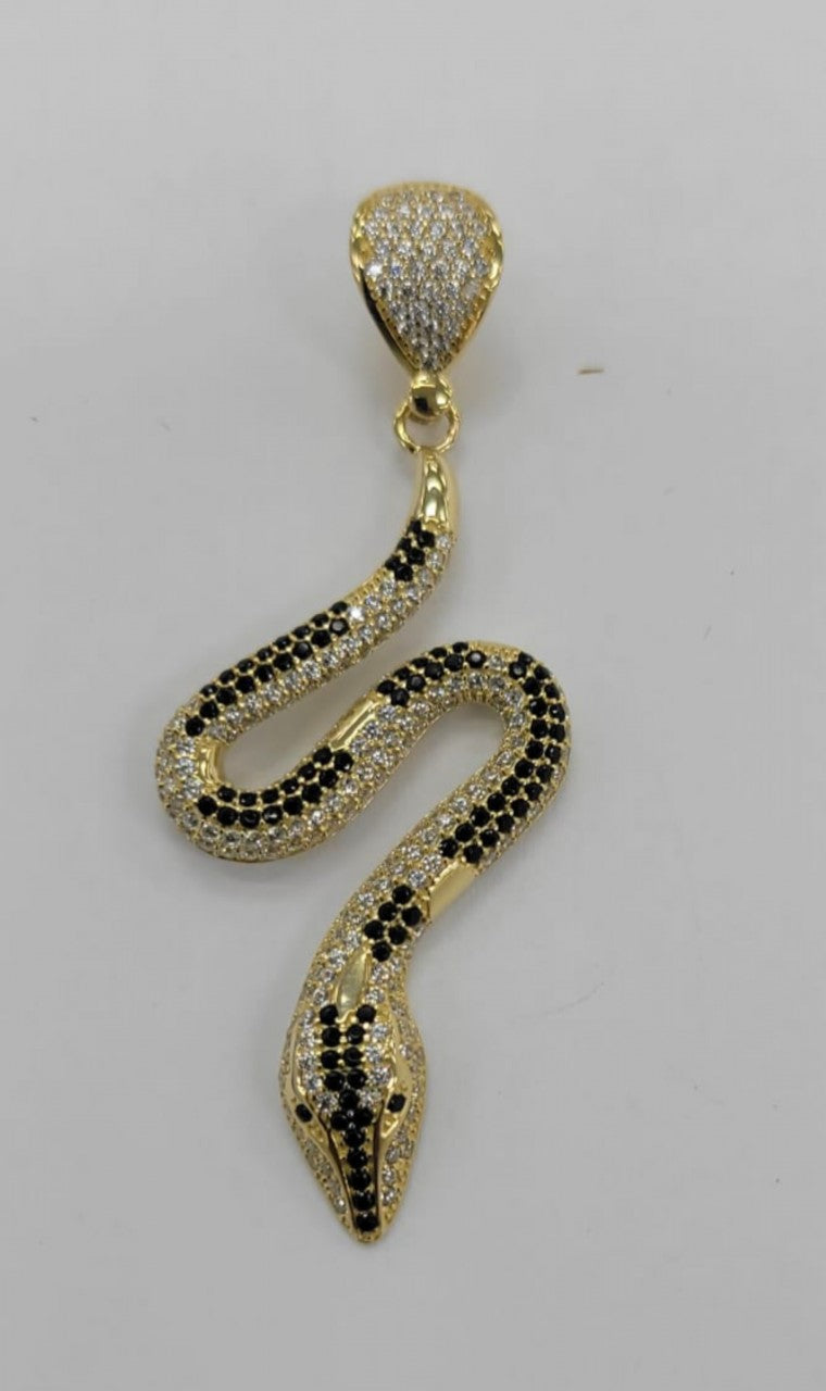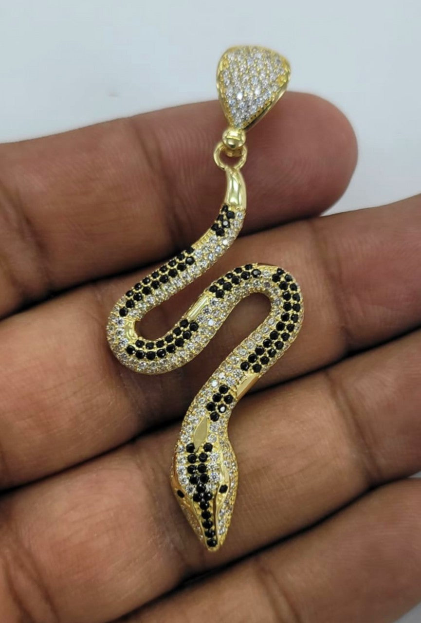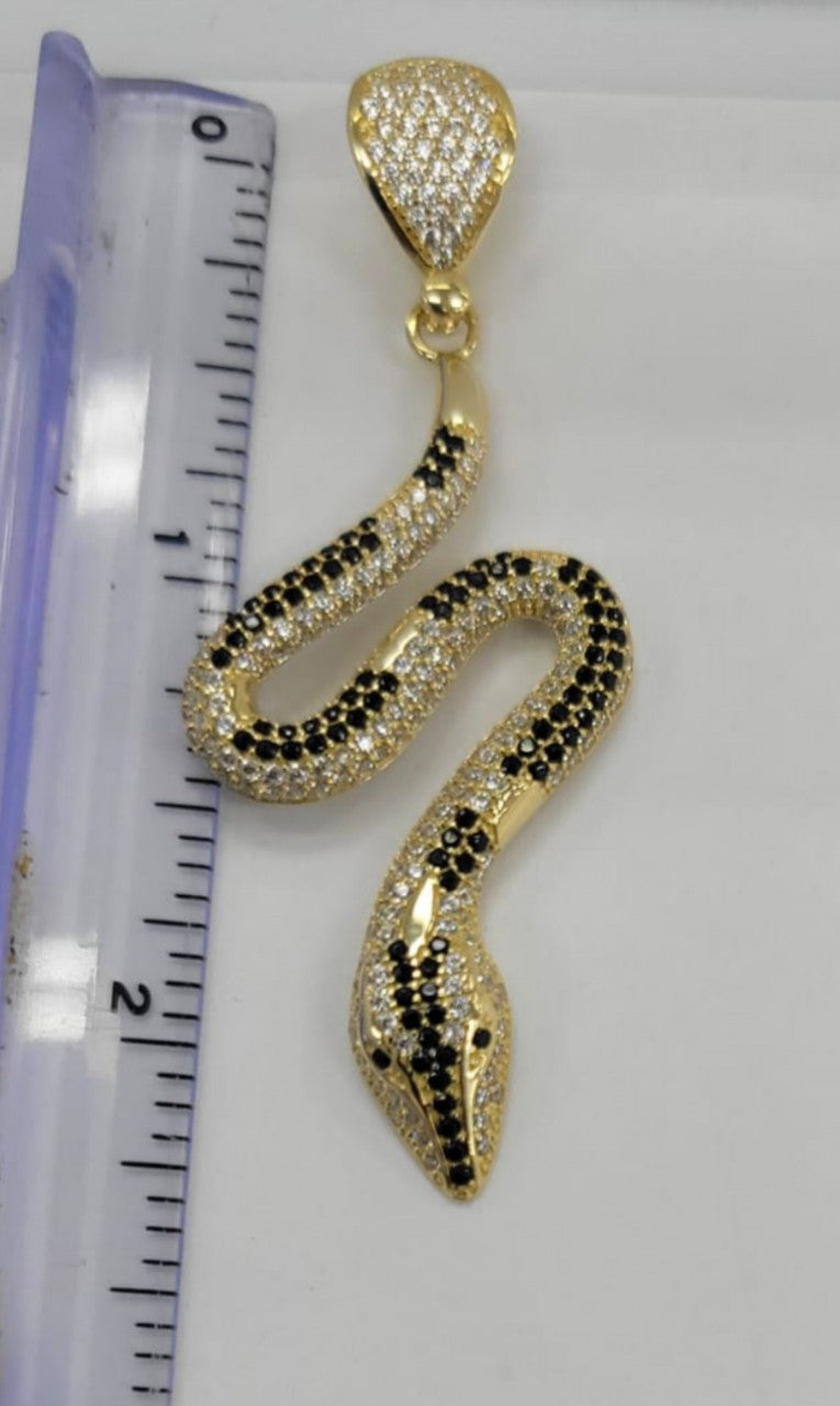10K Gold Snake with black stones pendant, premium quality , Brand new