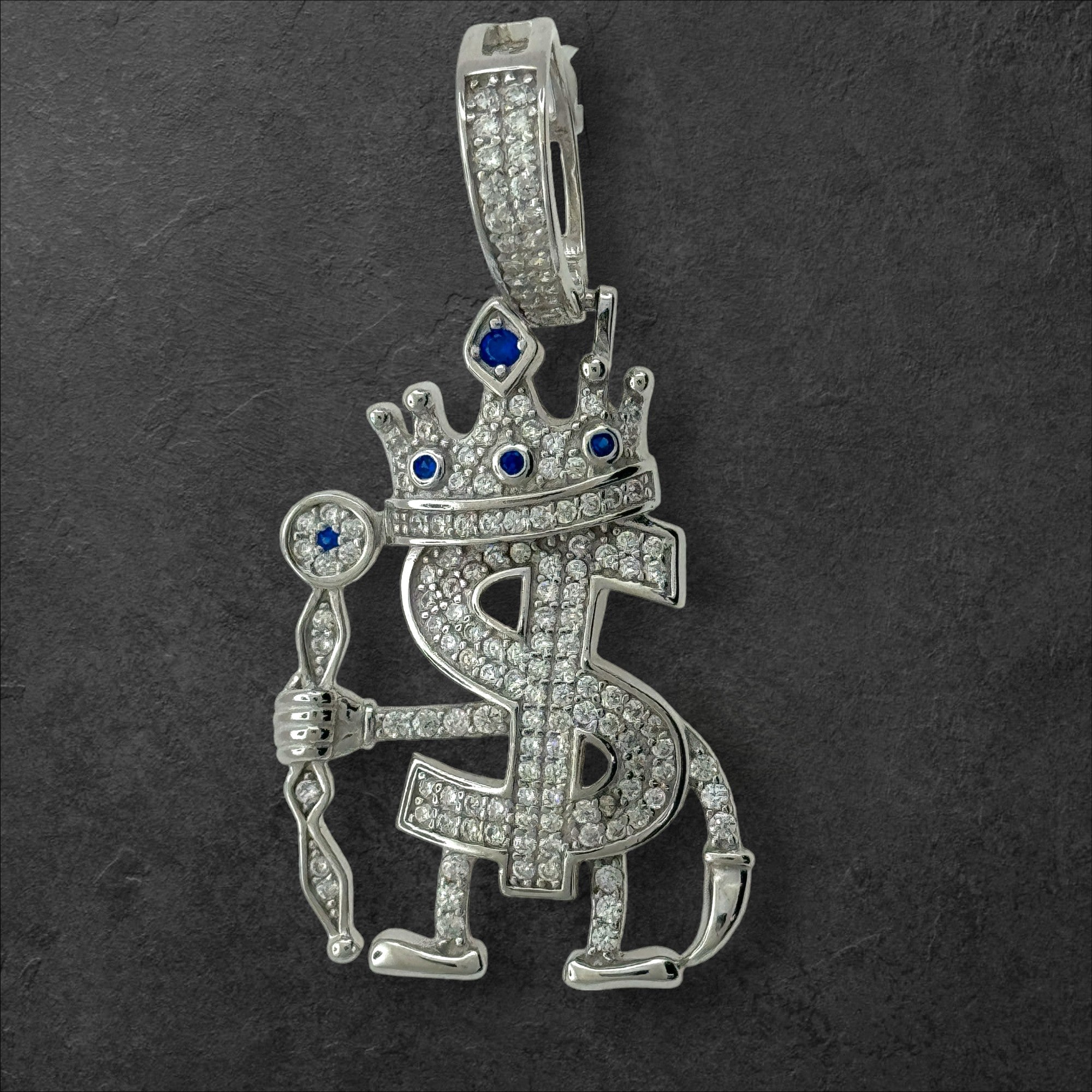 🔹 Command Your Kingdom with 925 Sterling Silver CZ Dollar King Pendant