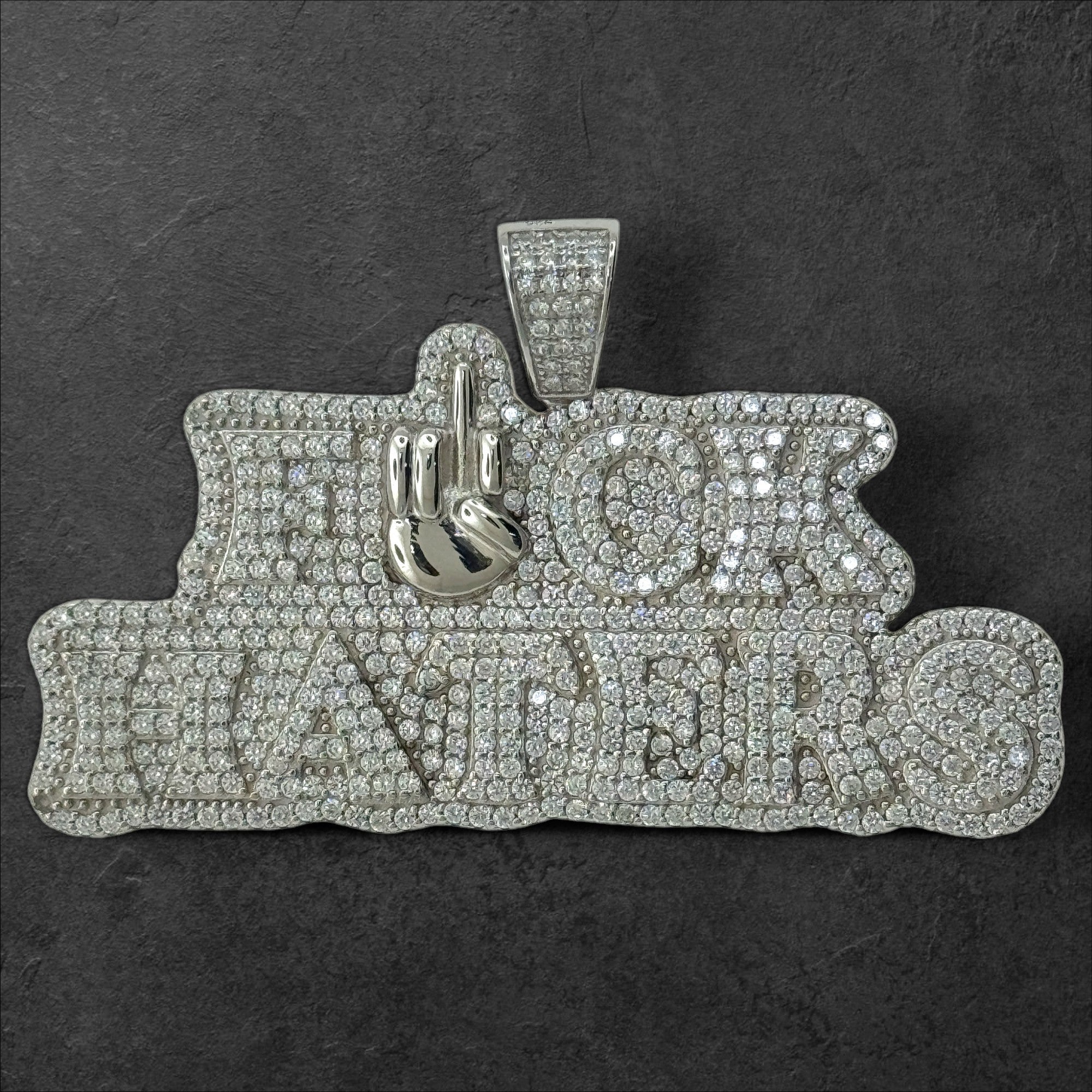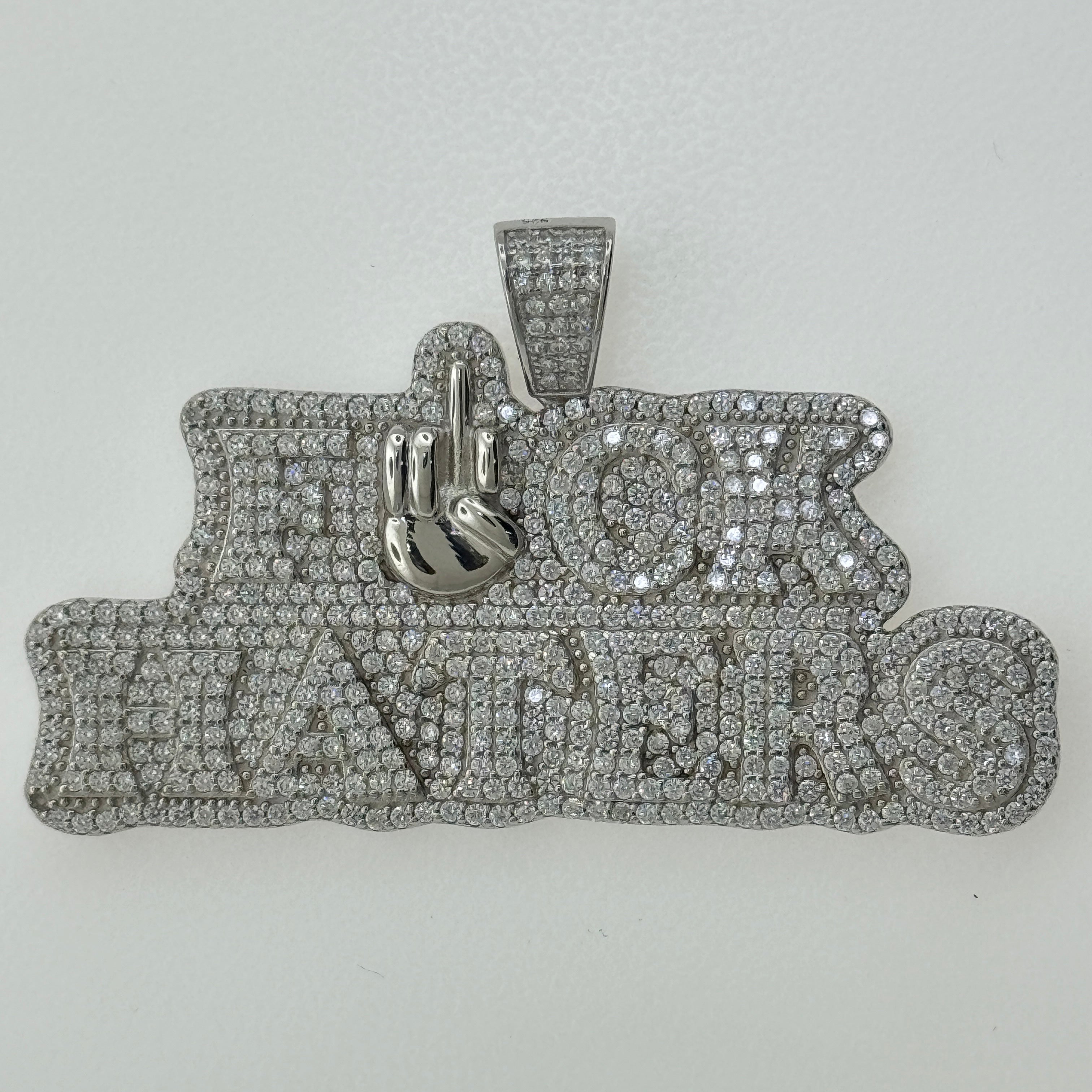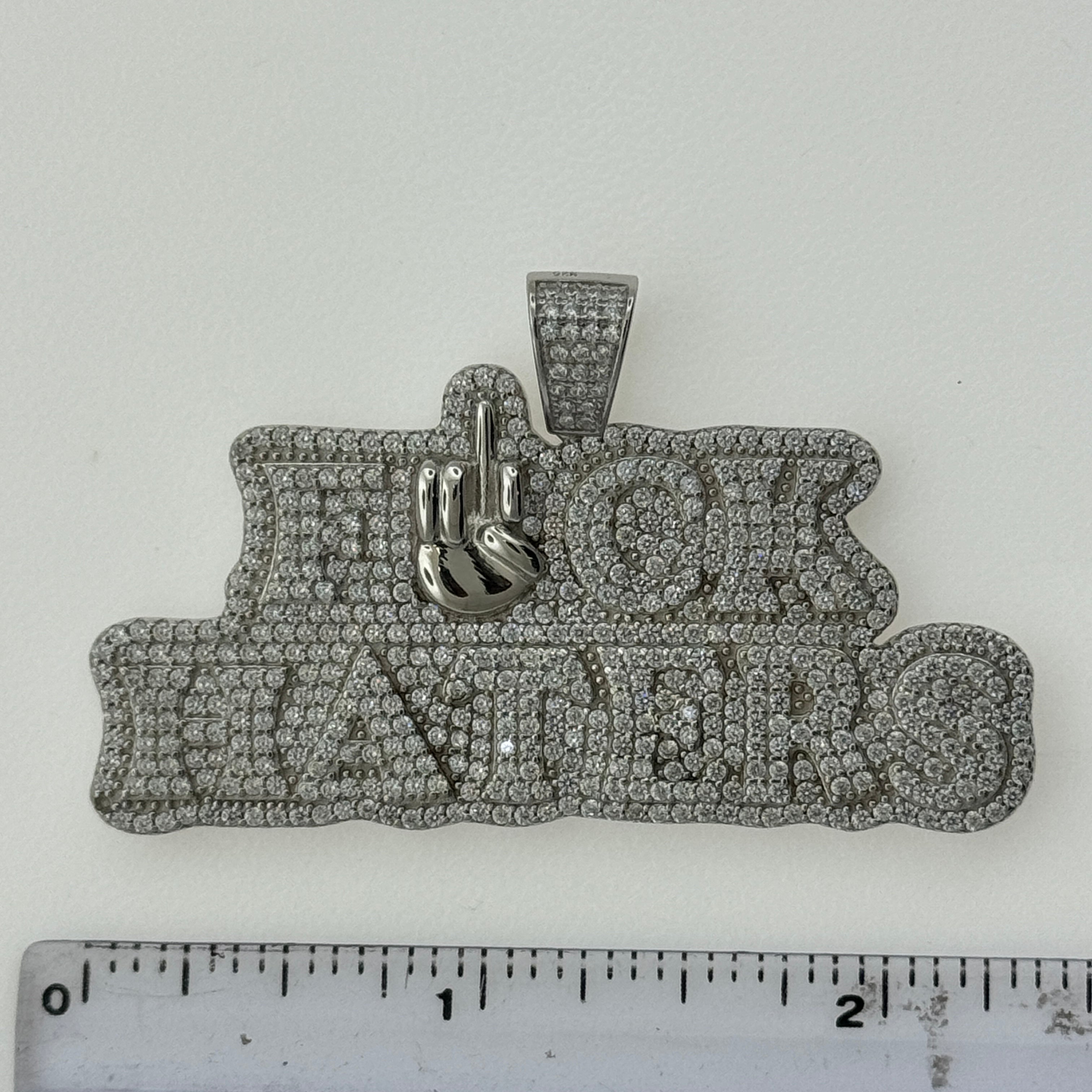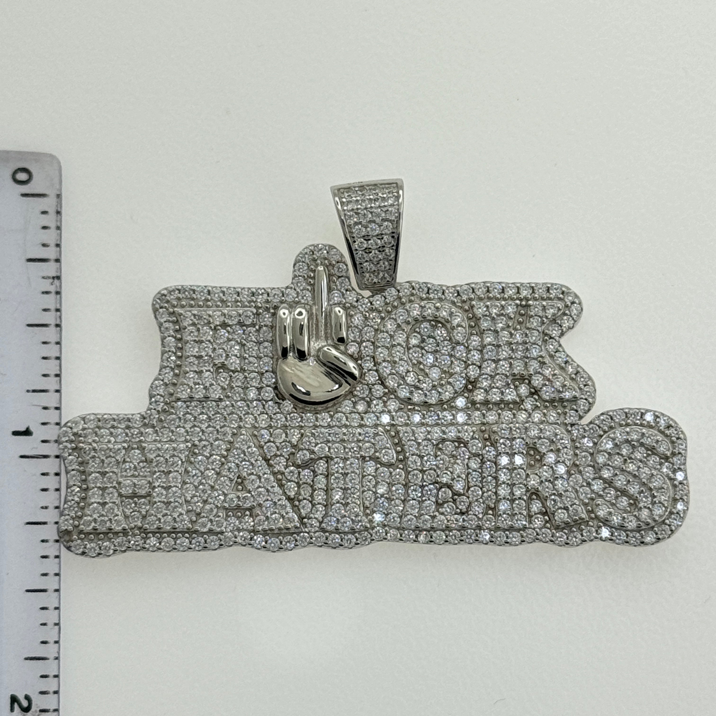 🔹 Make a Bold Statement with 925 Sterling Silver CZ 'Fk Haters' Pendant**