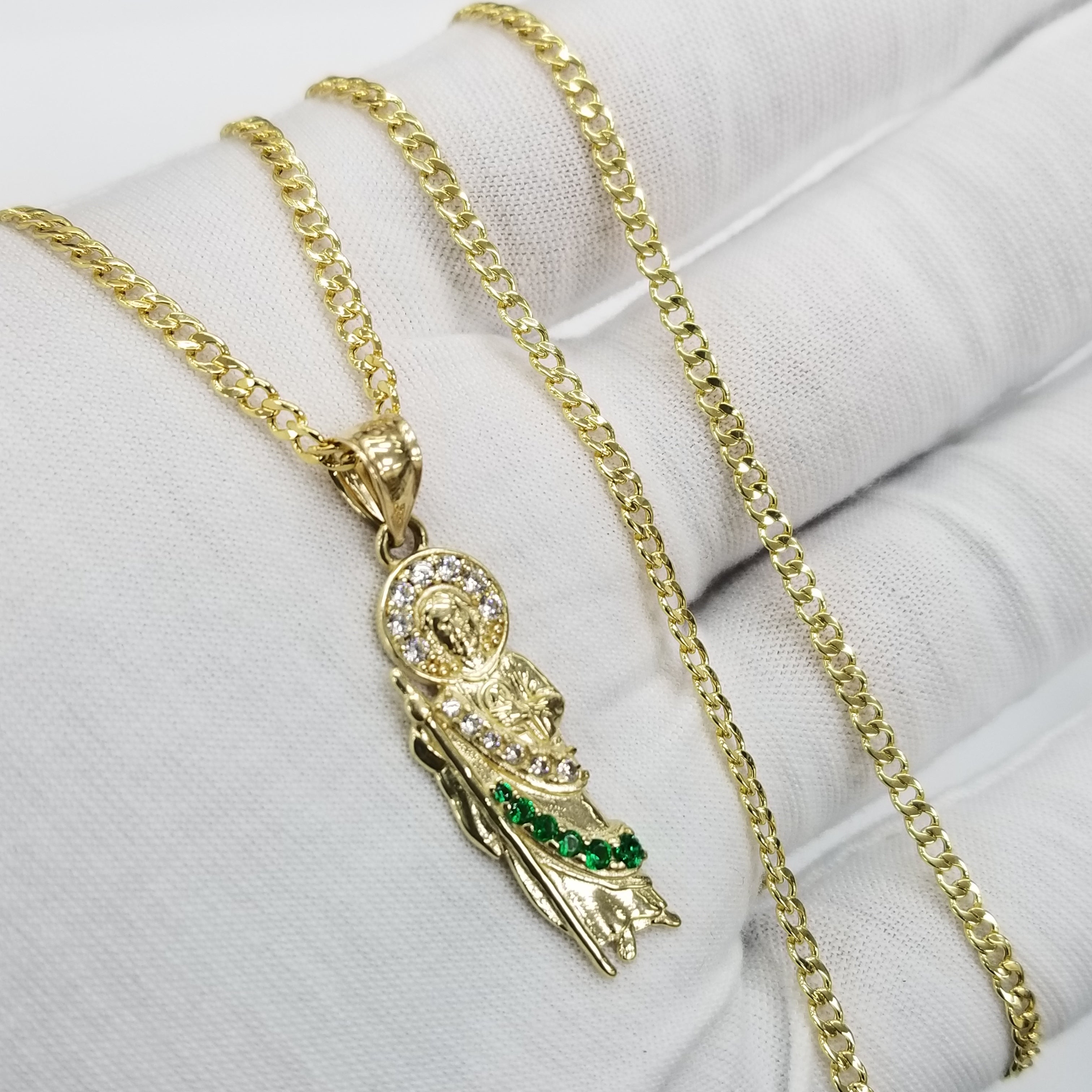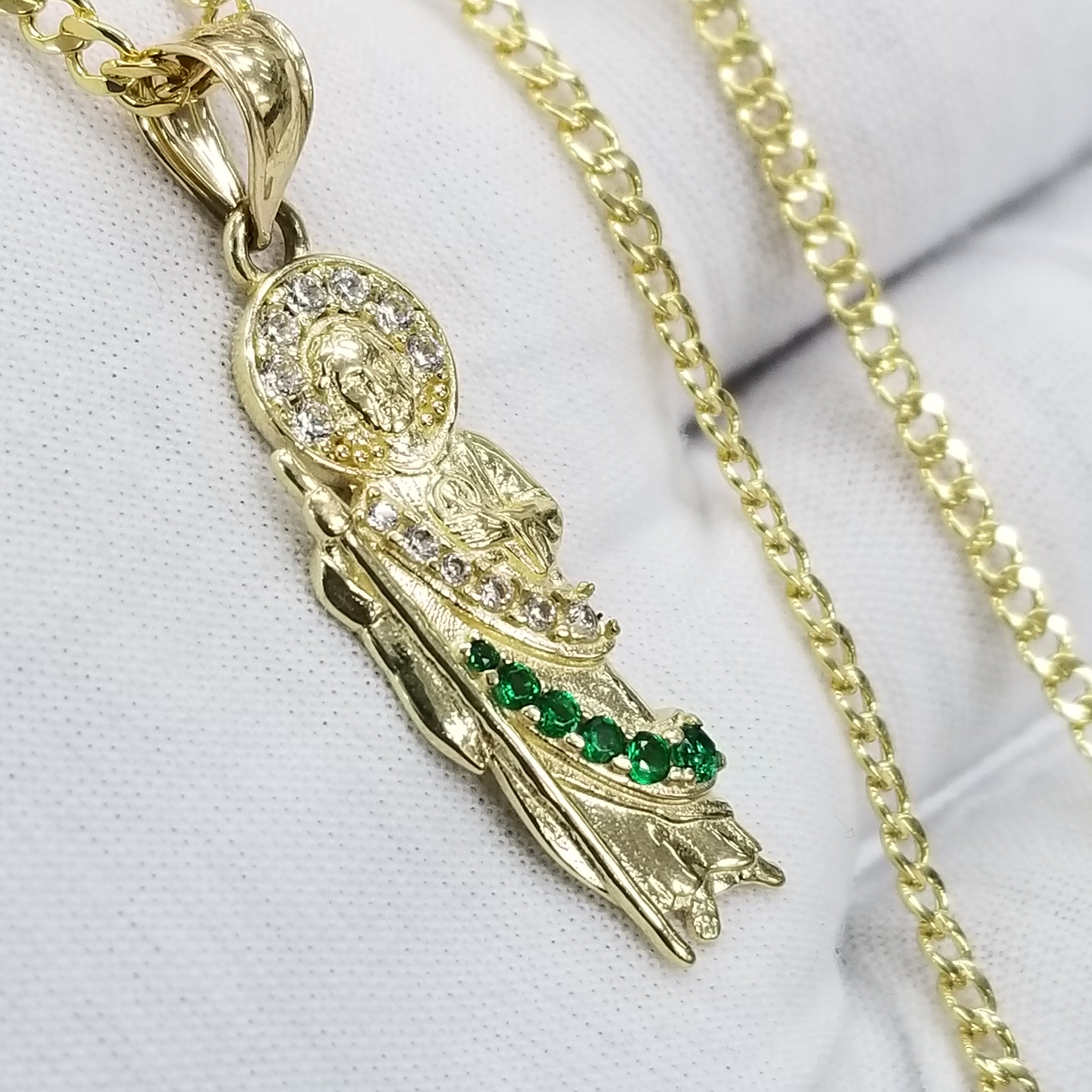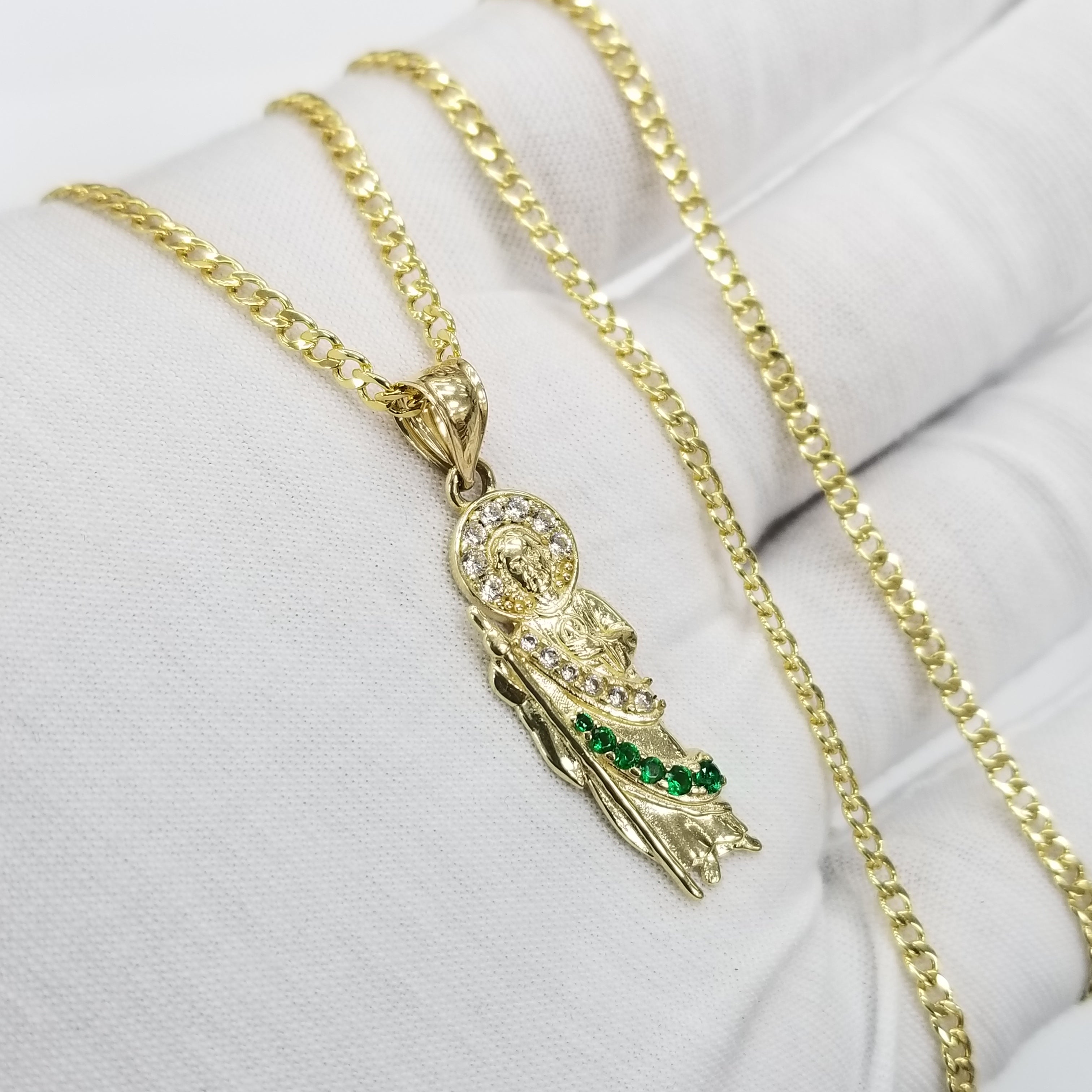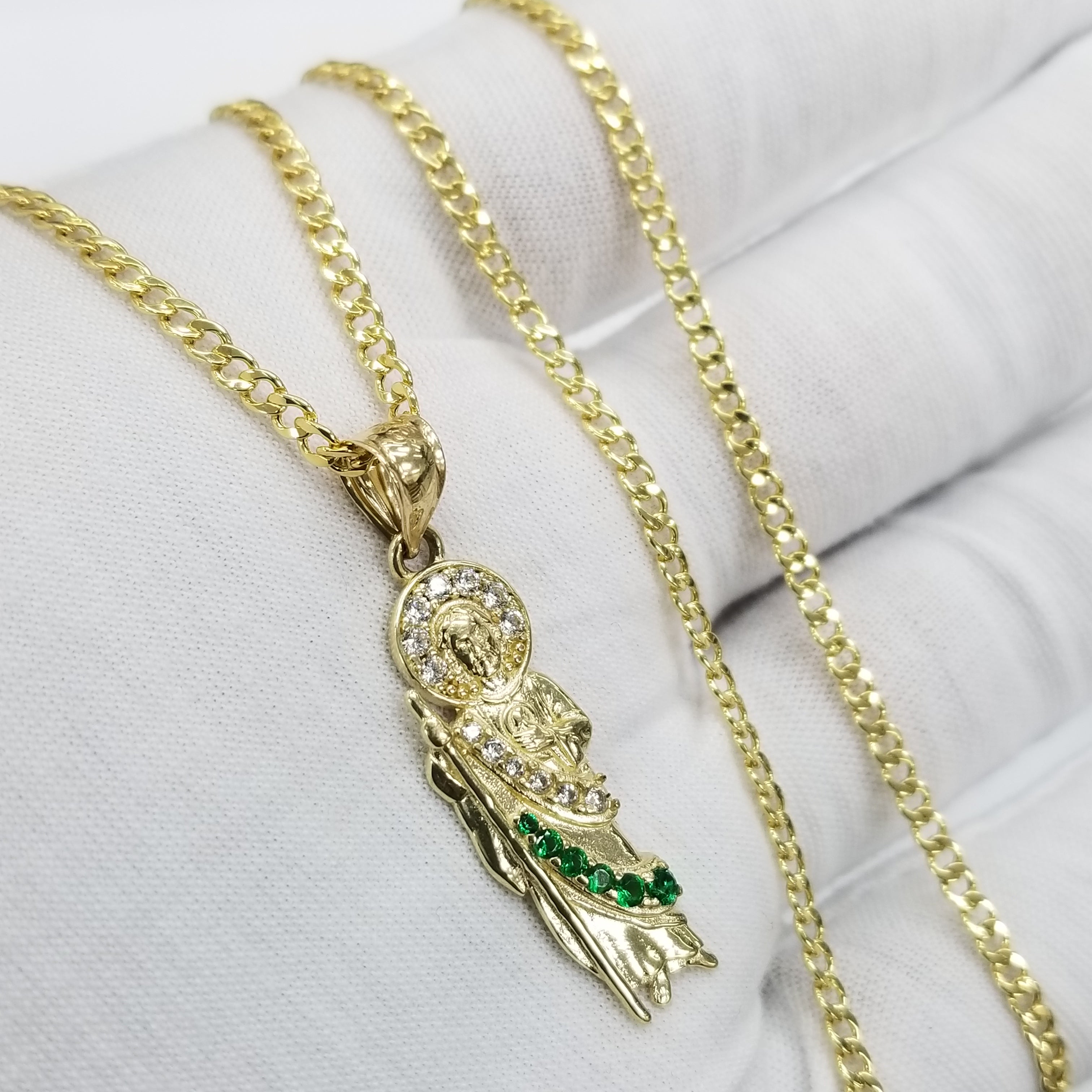 10KT Yellow Gold Saint Jude Pendant with Cuban Necklace