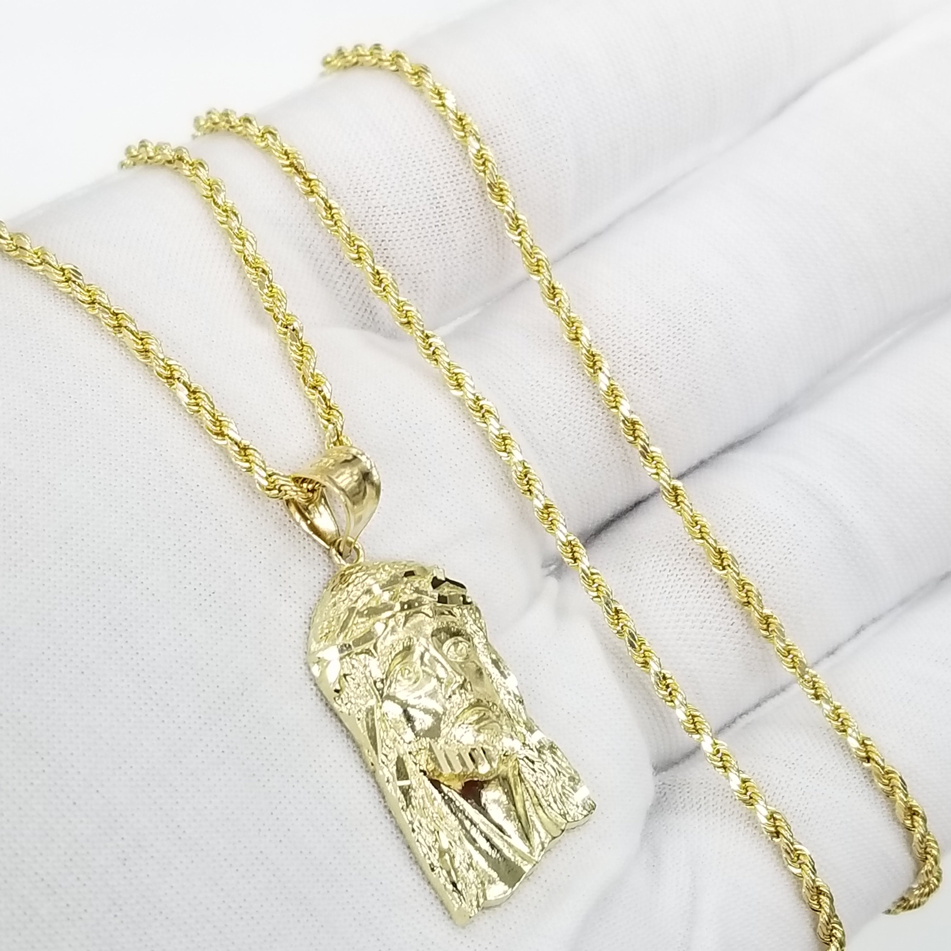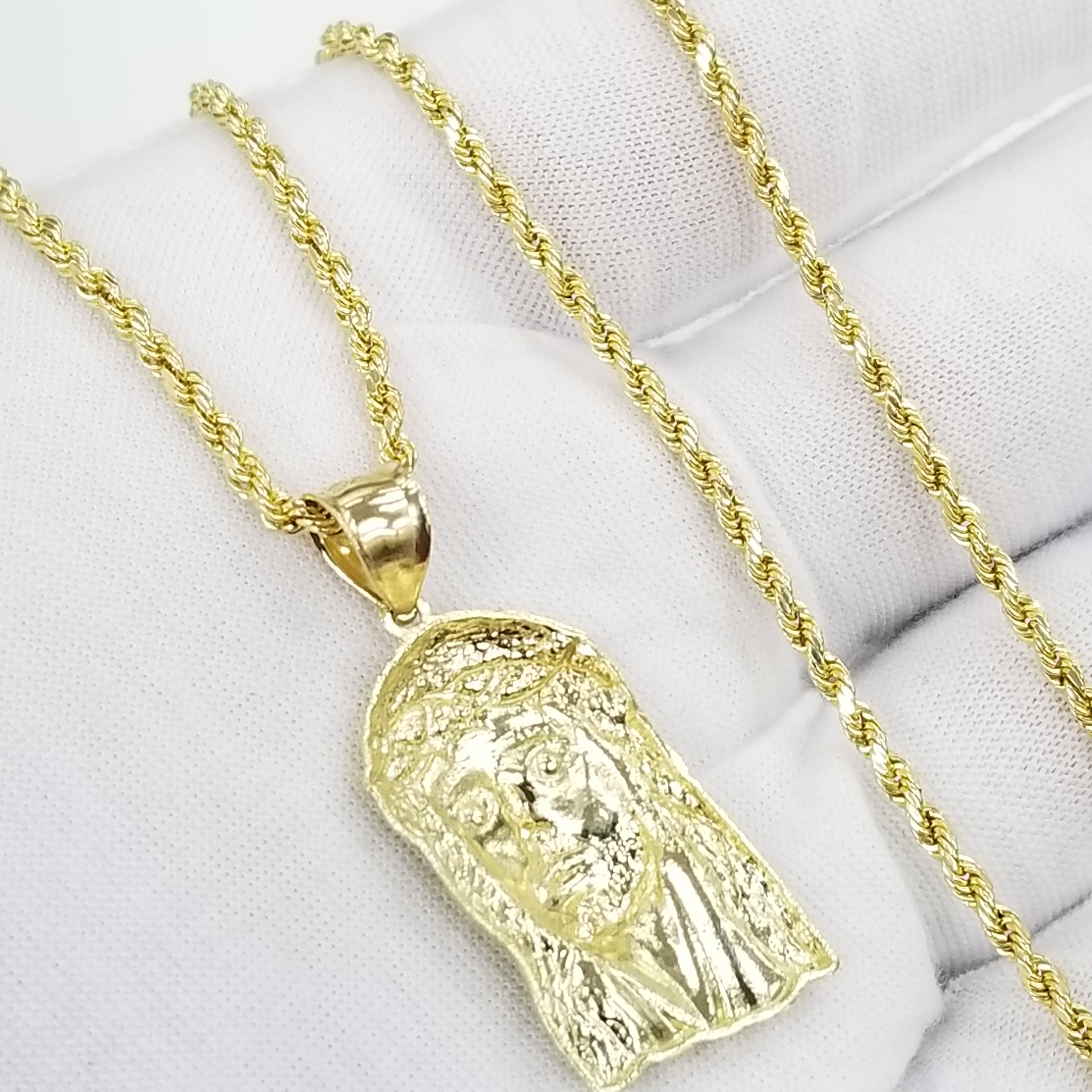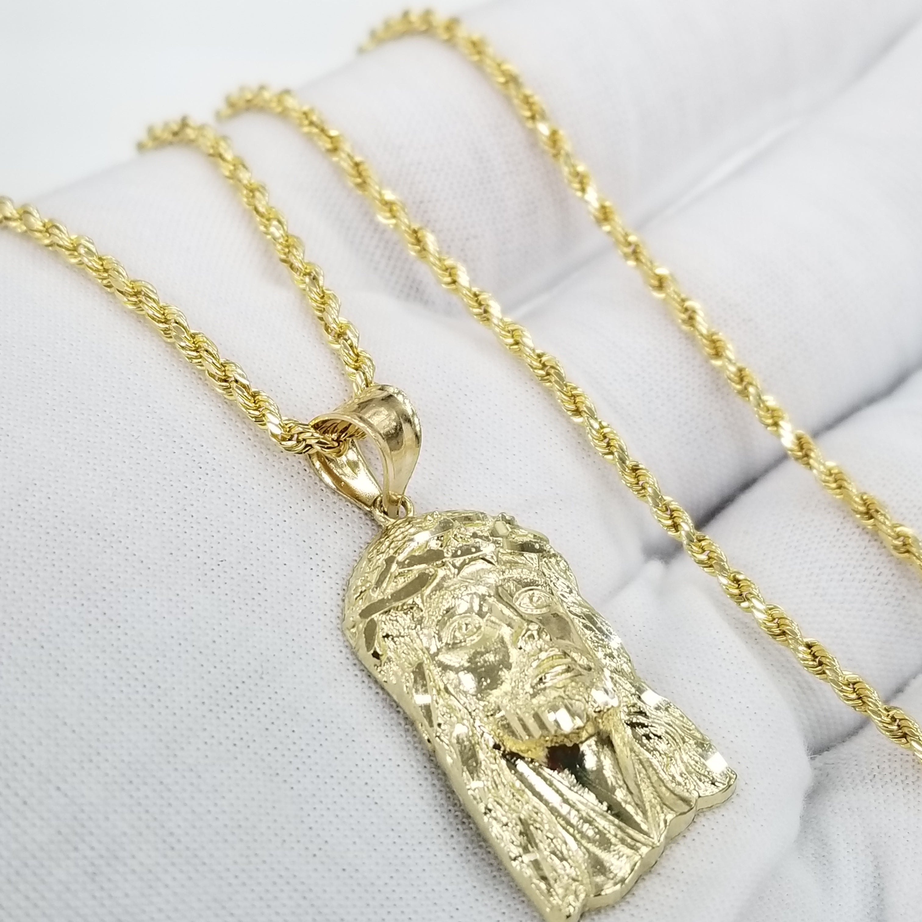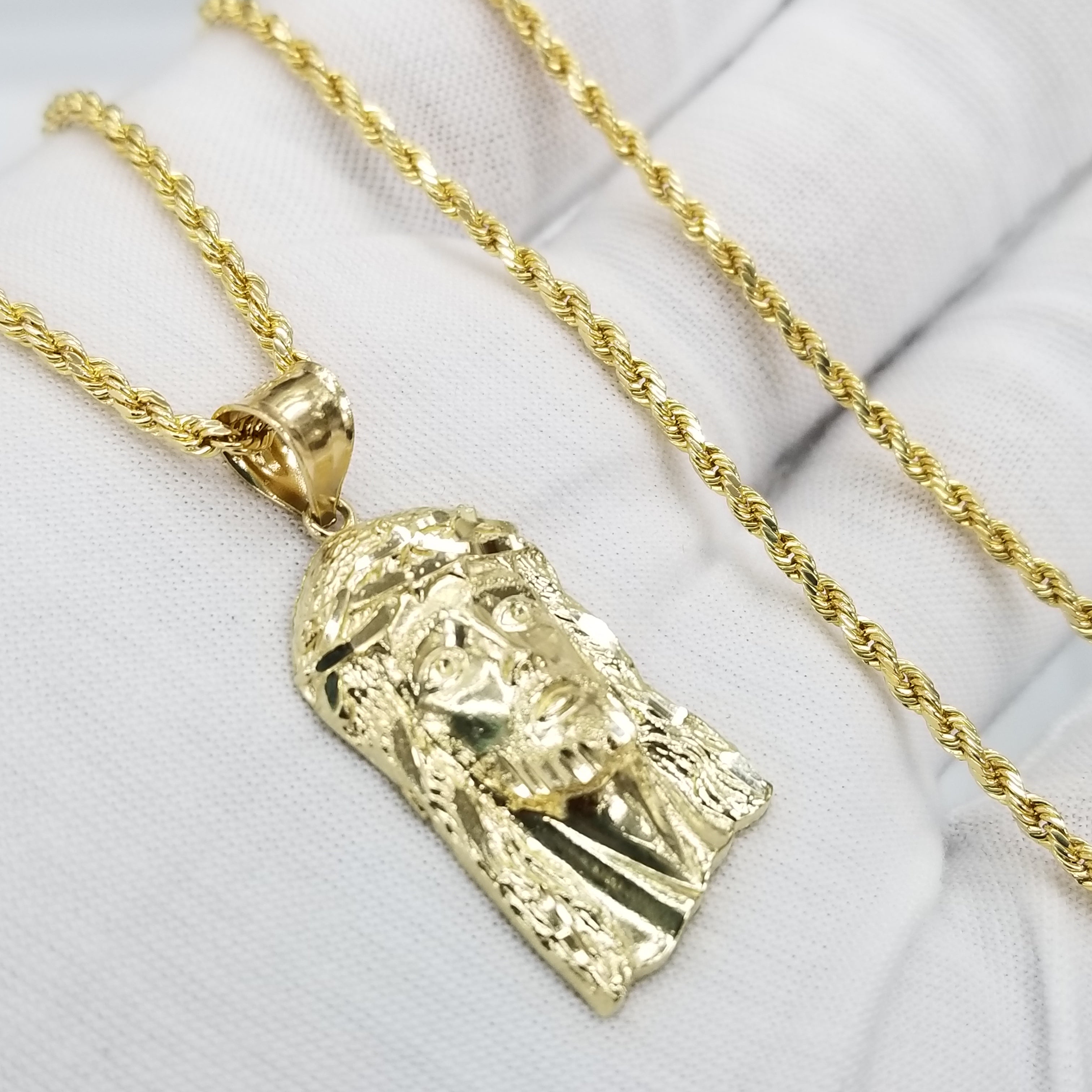 Rope Necklace with Jesus Face Pendant 10K Real Gold