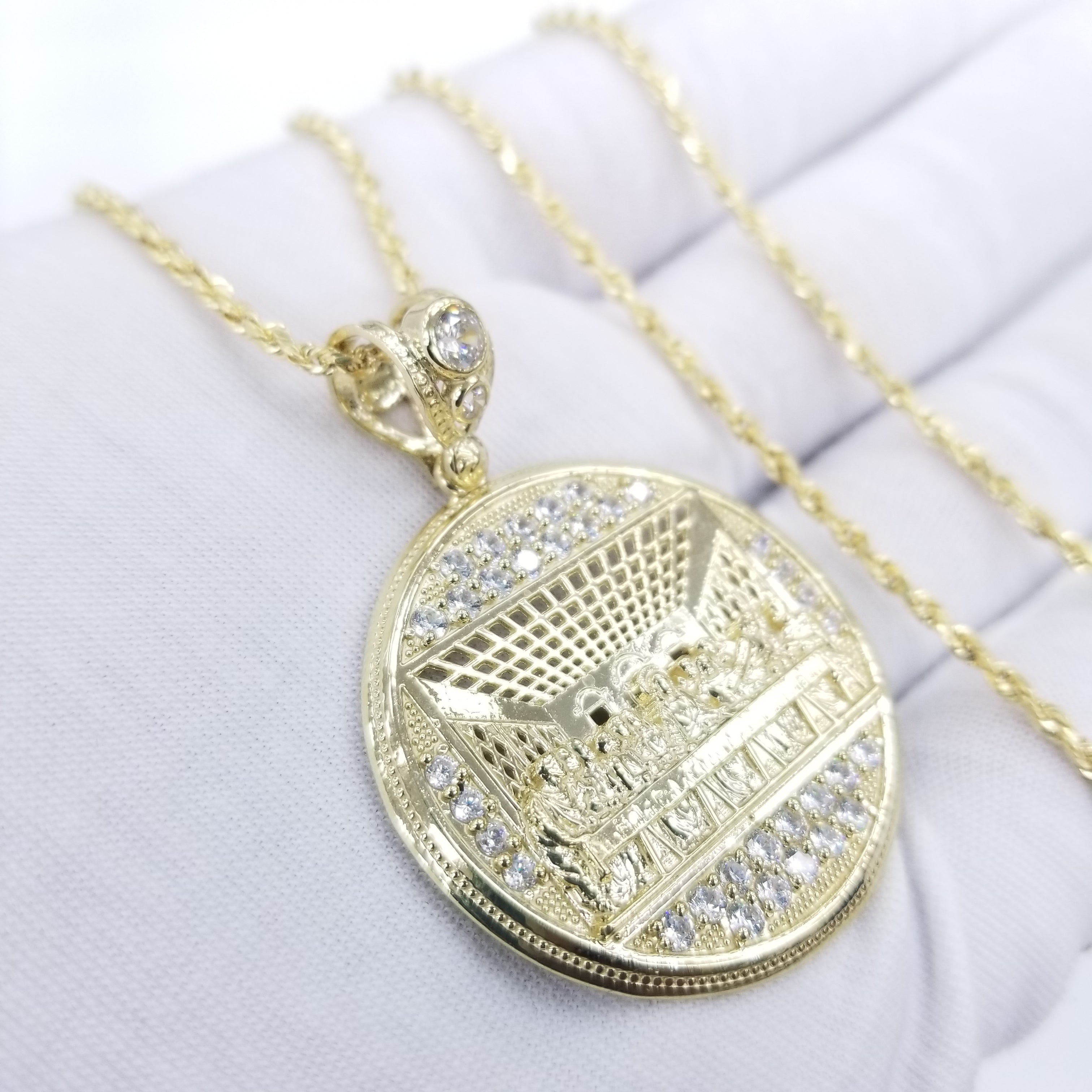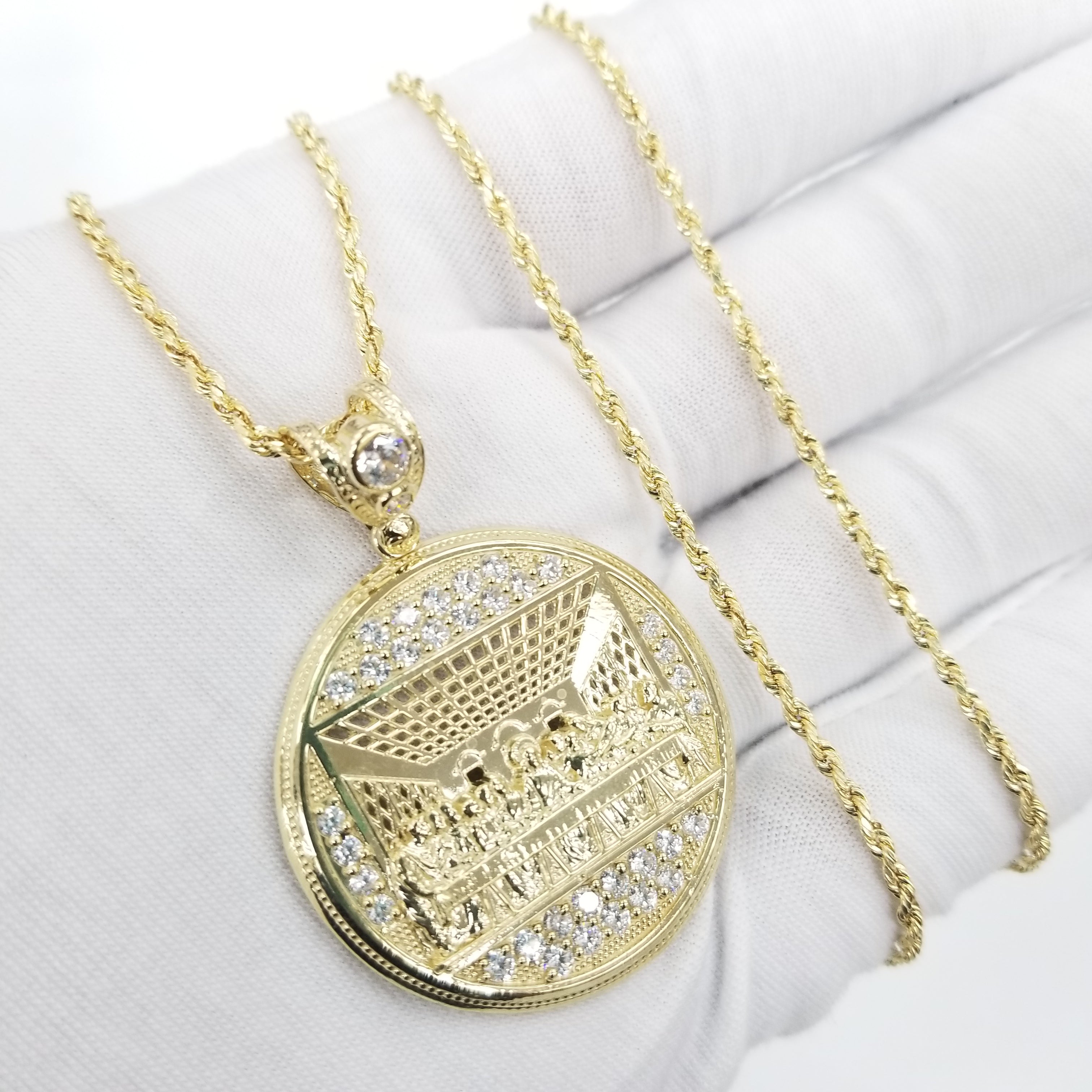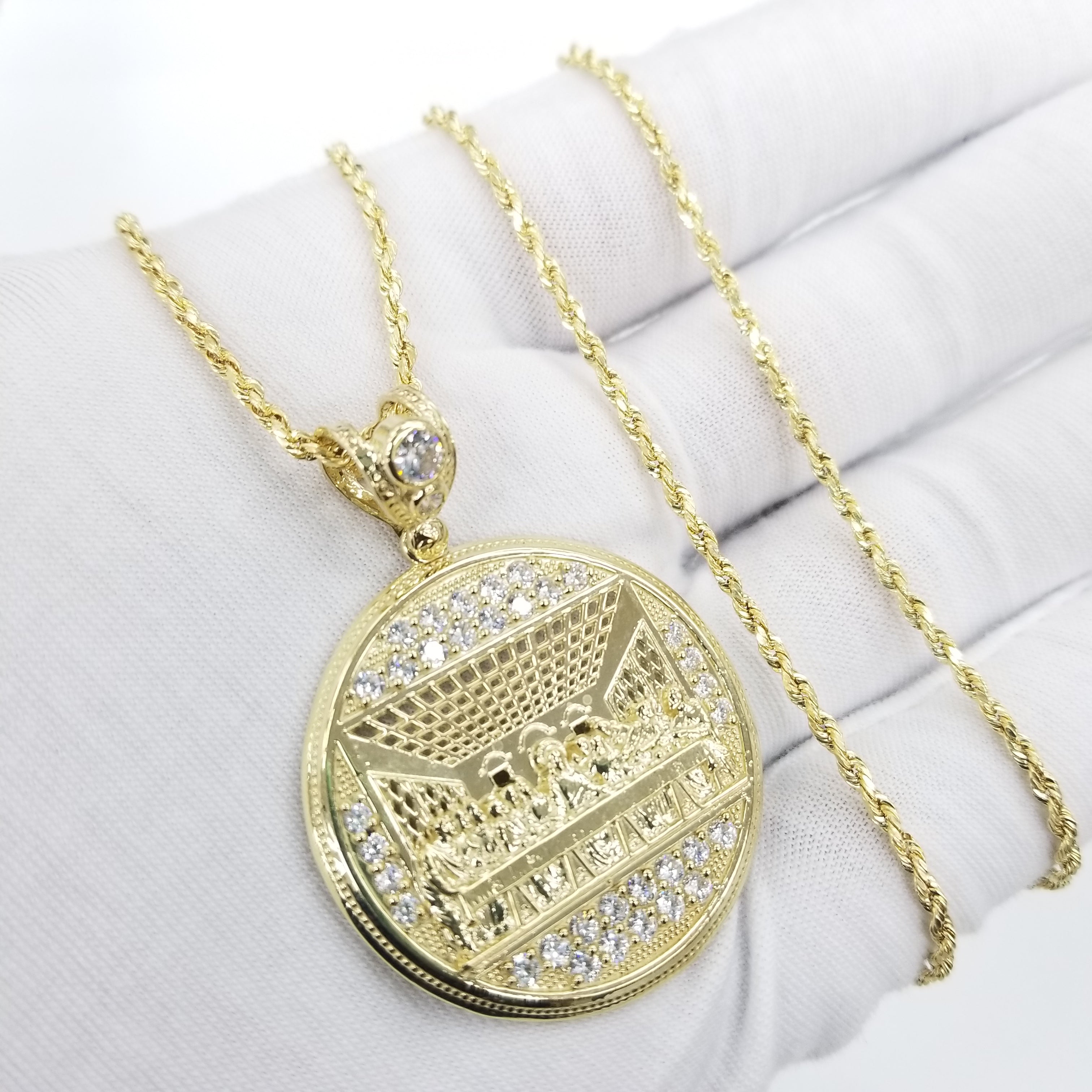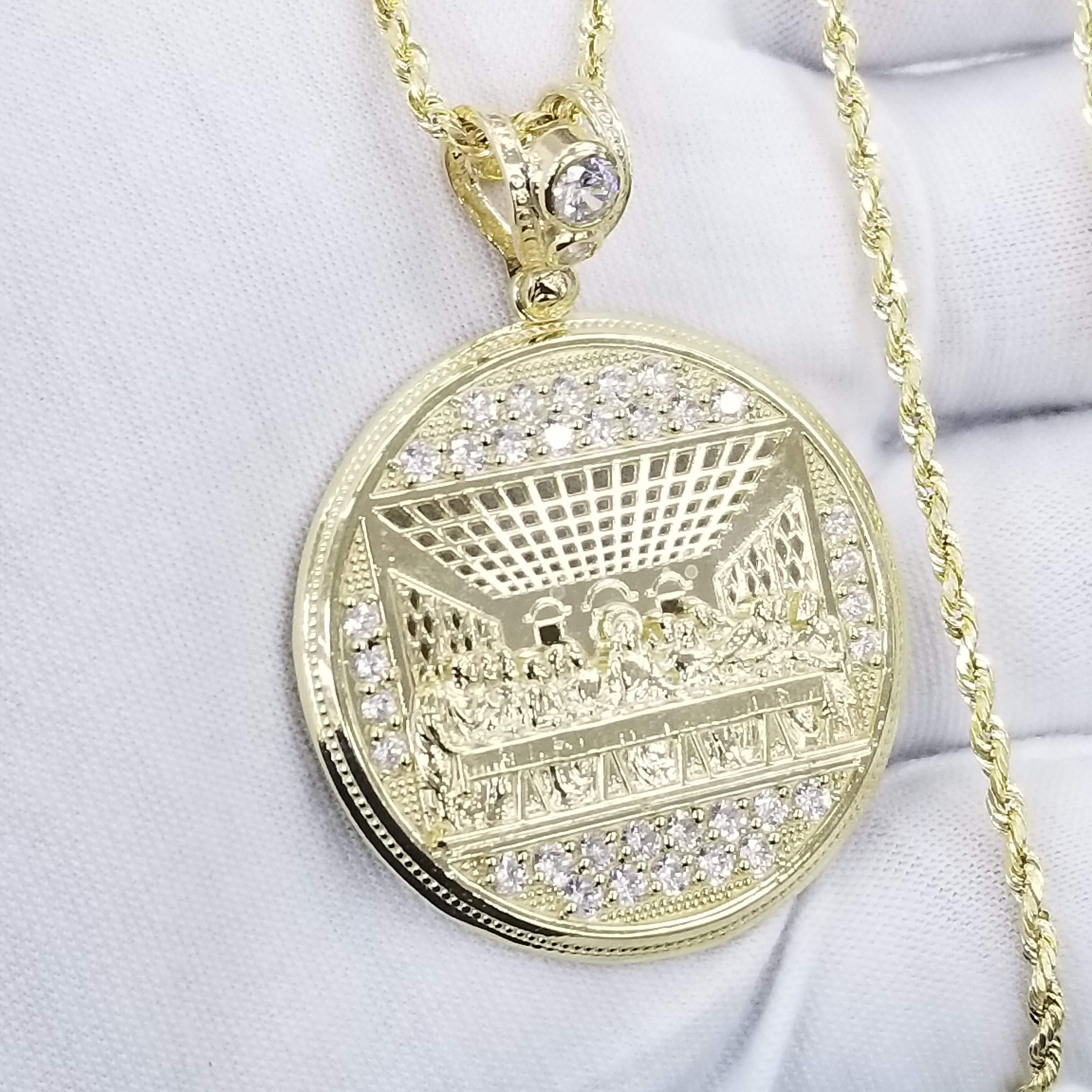 Rope Necklace with Last Supper Pendant 10K Real Gold