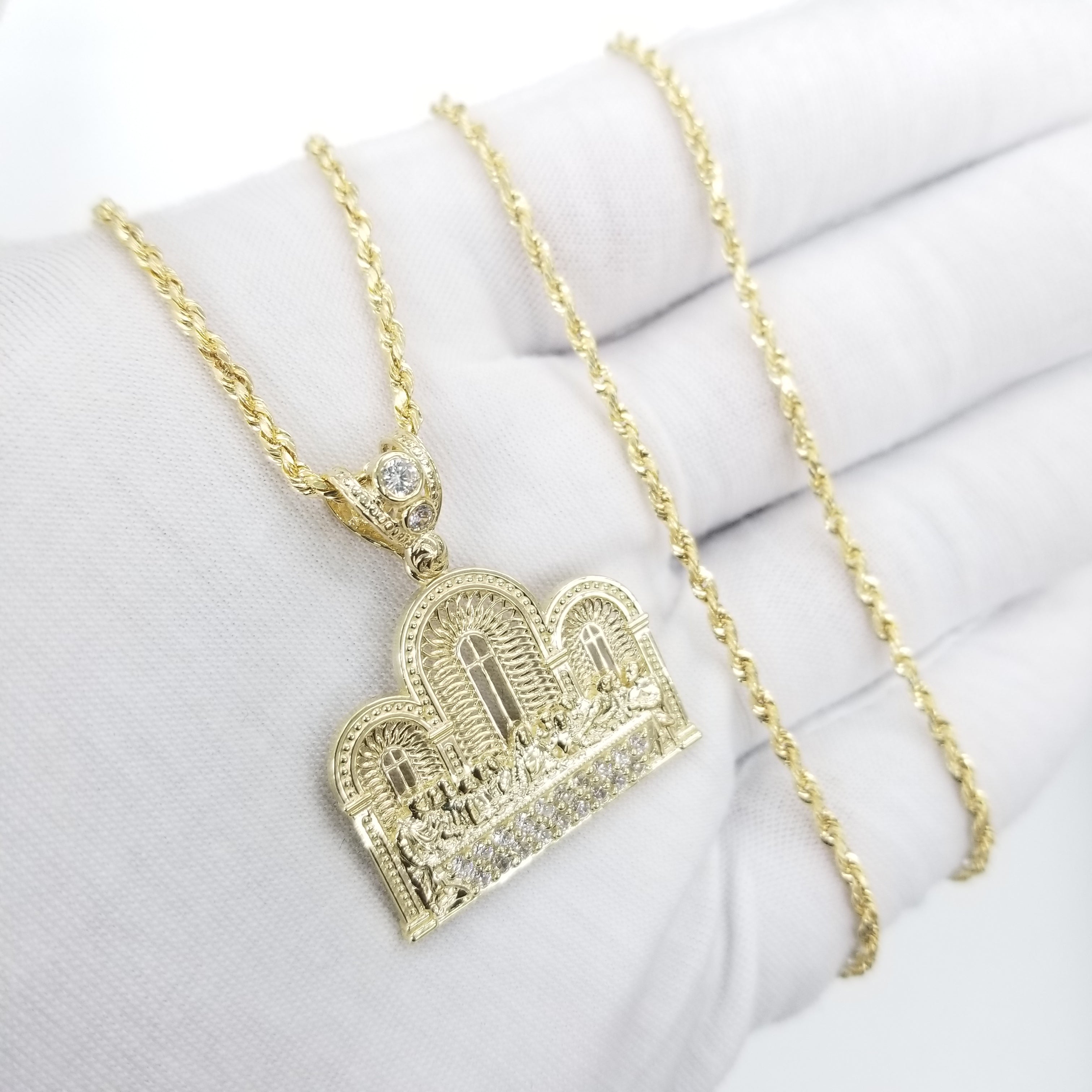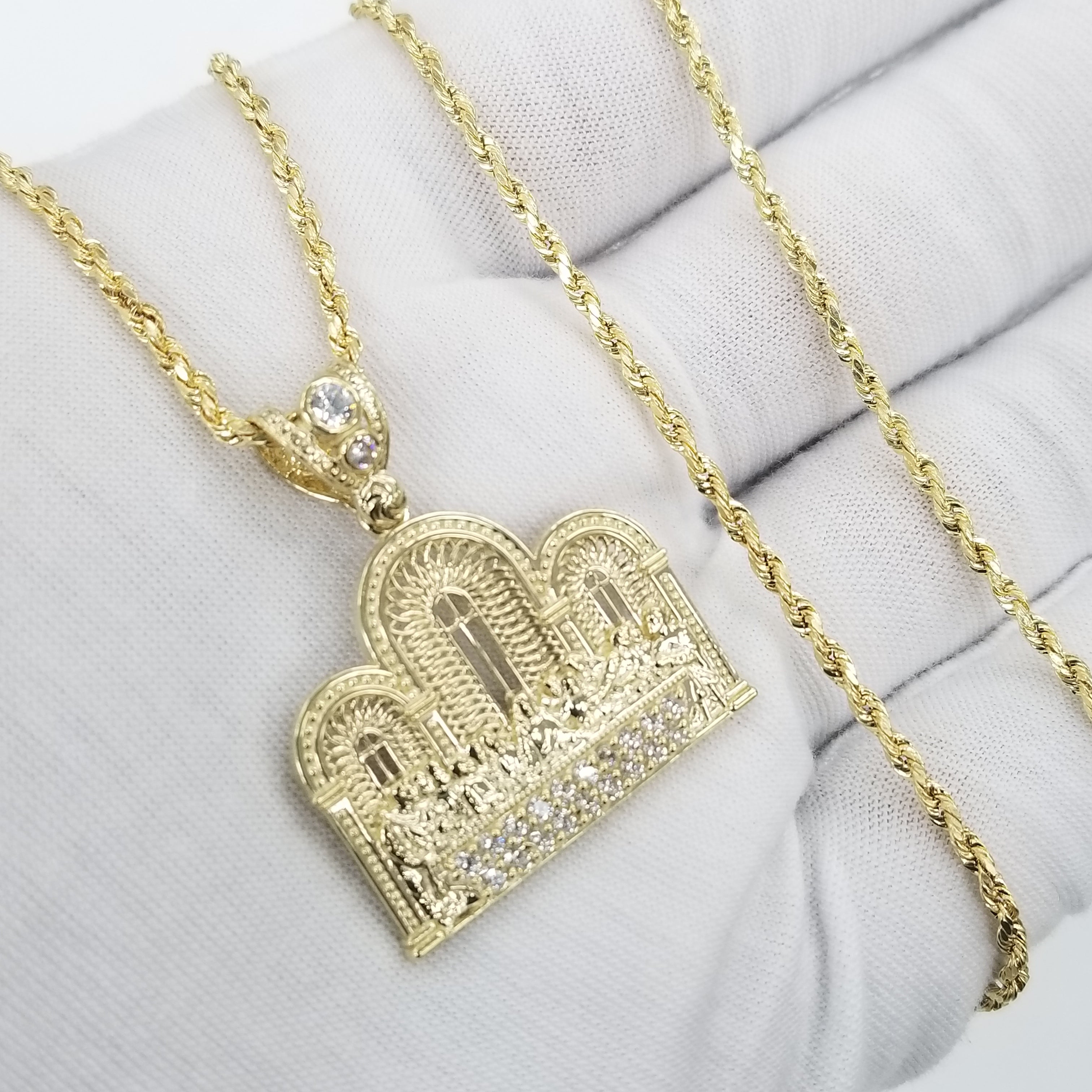 Rope Necklace with Last Supper Pendant 10K Real Gold