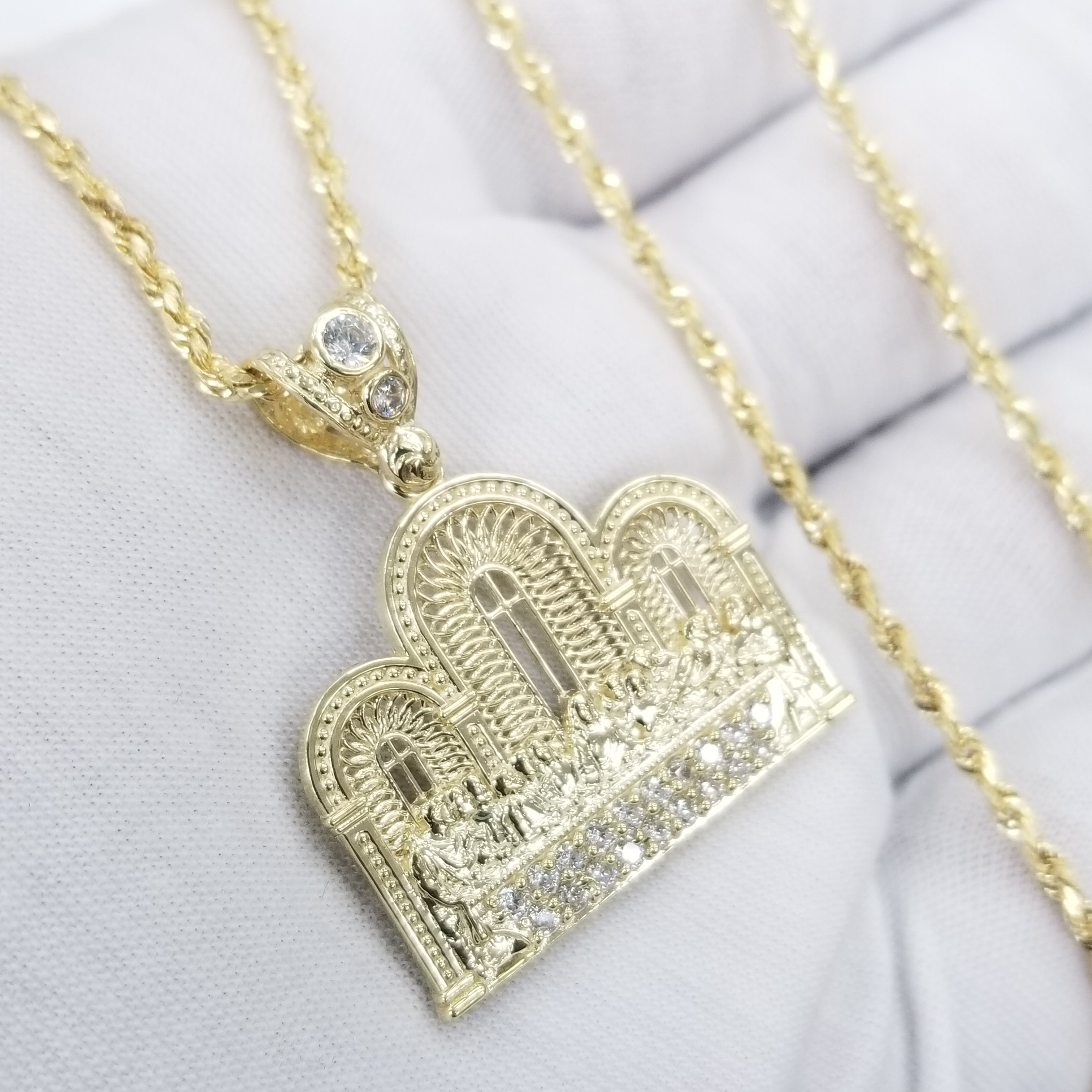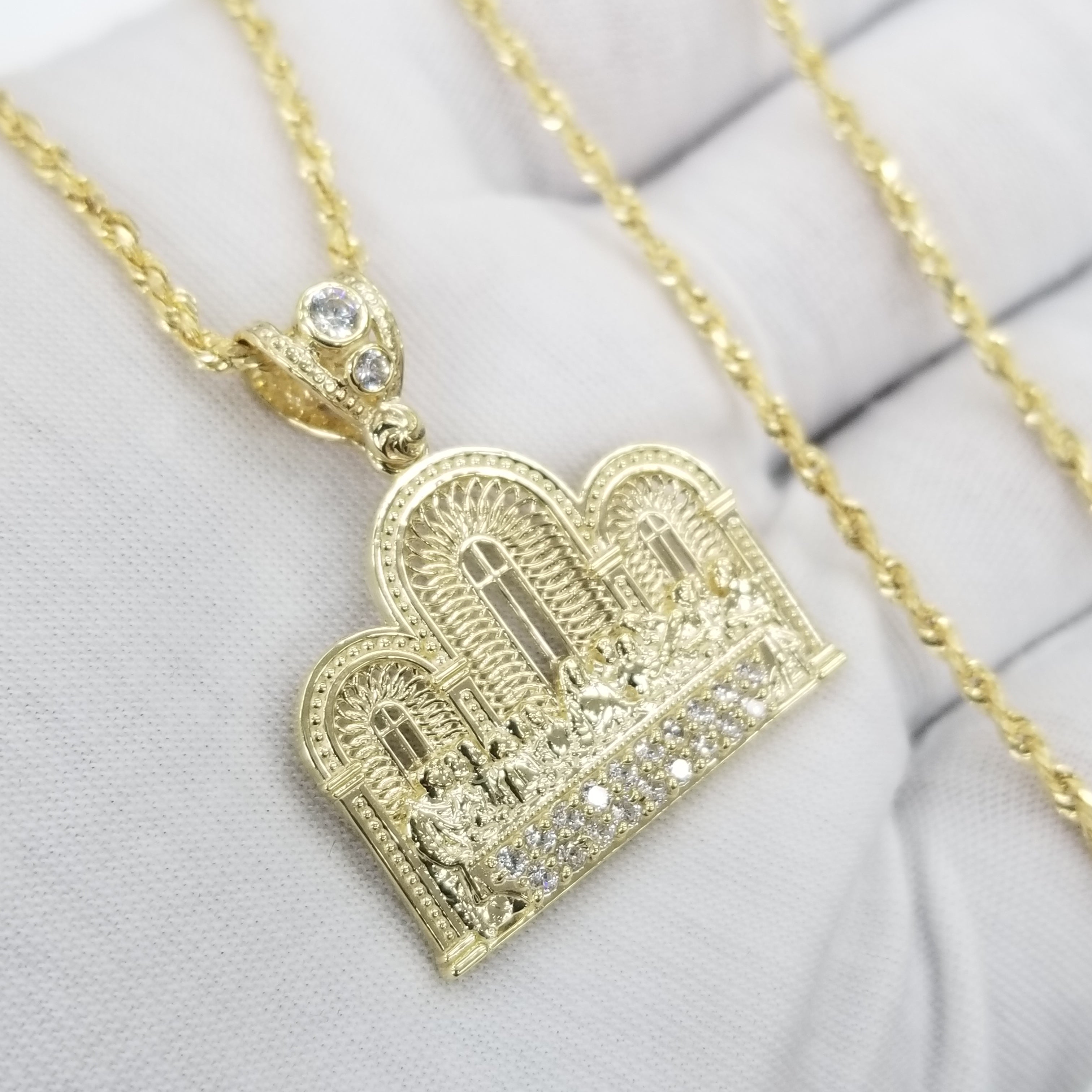 10KT Yellow Gold Last Supper Pendant with Rope Necklace