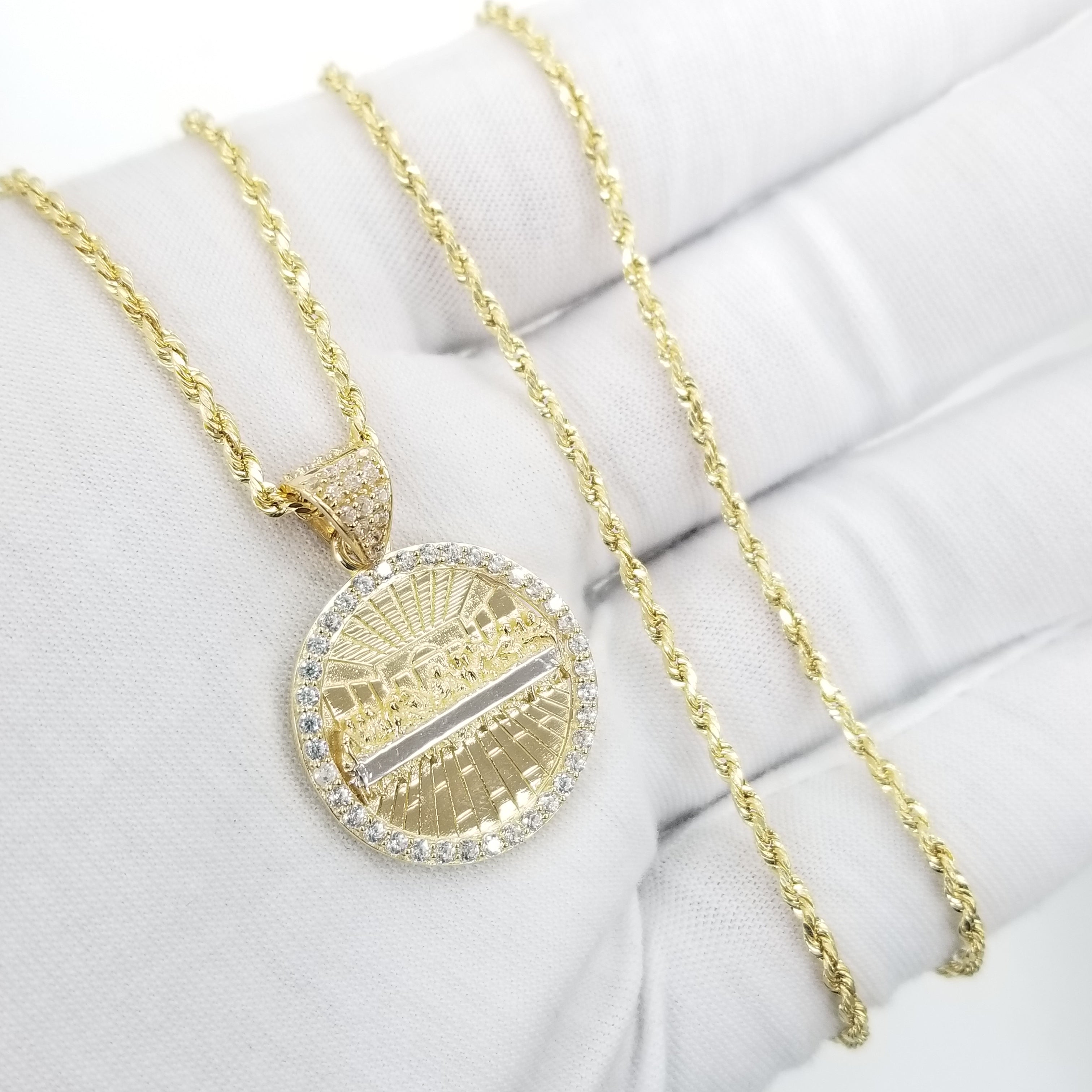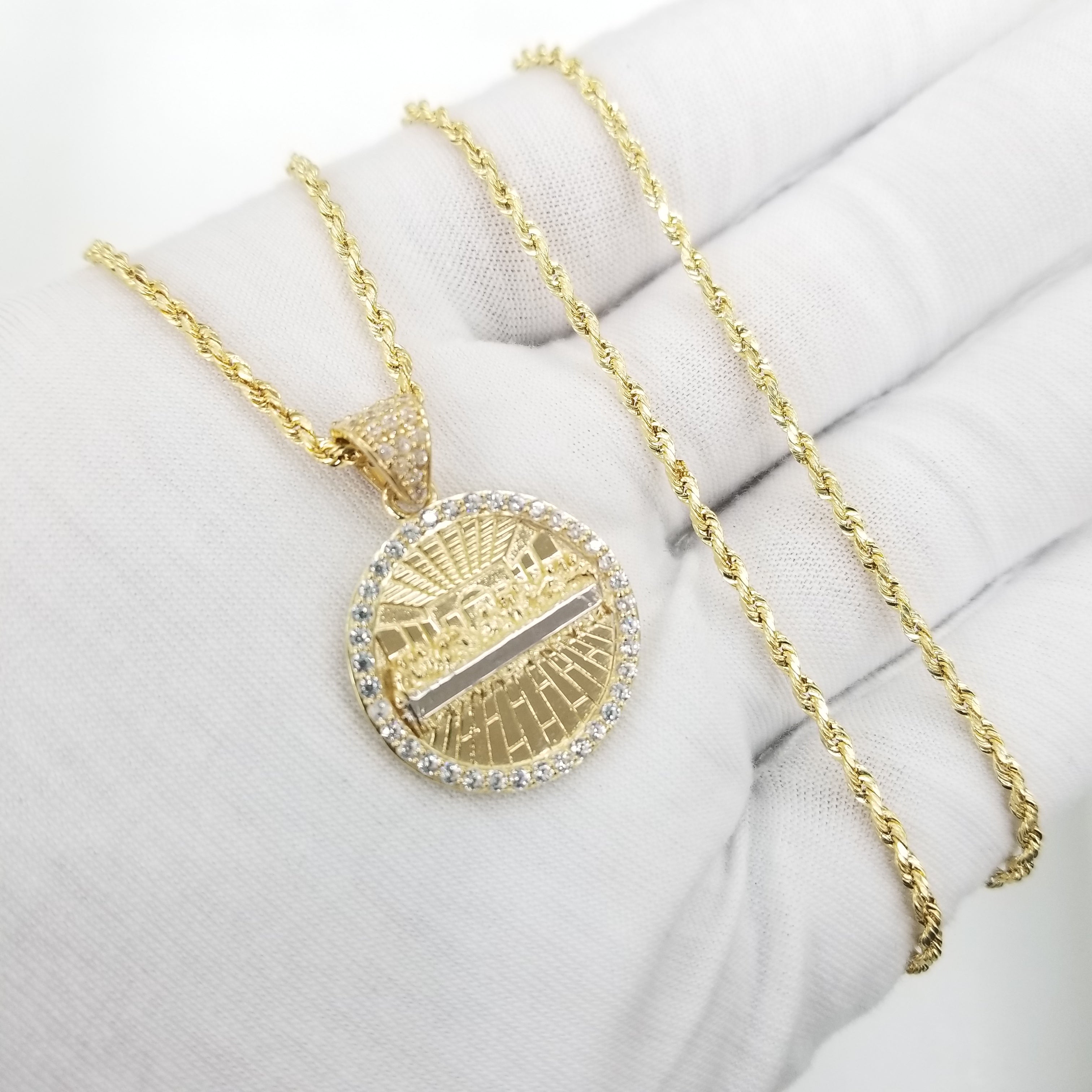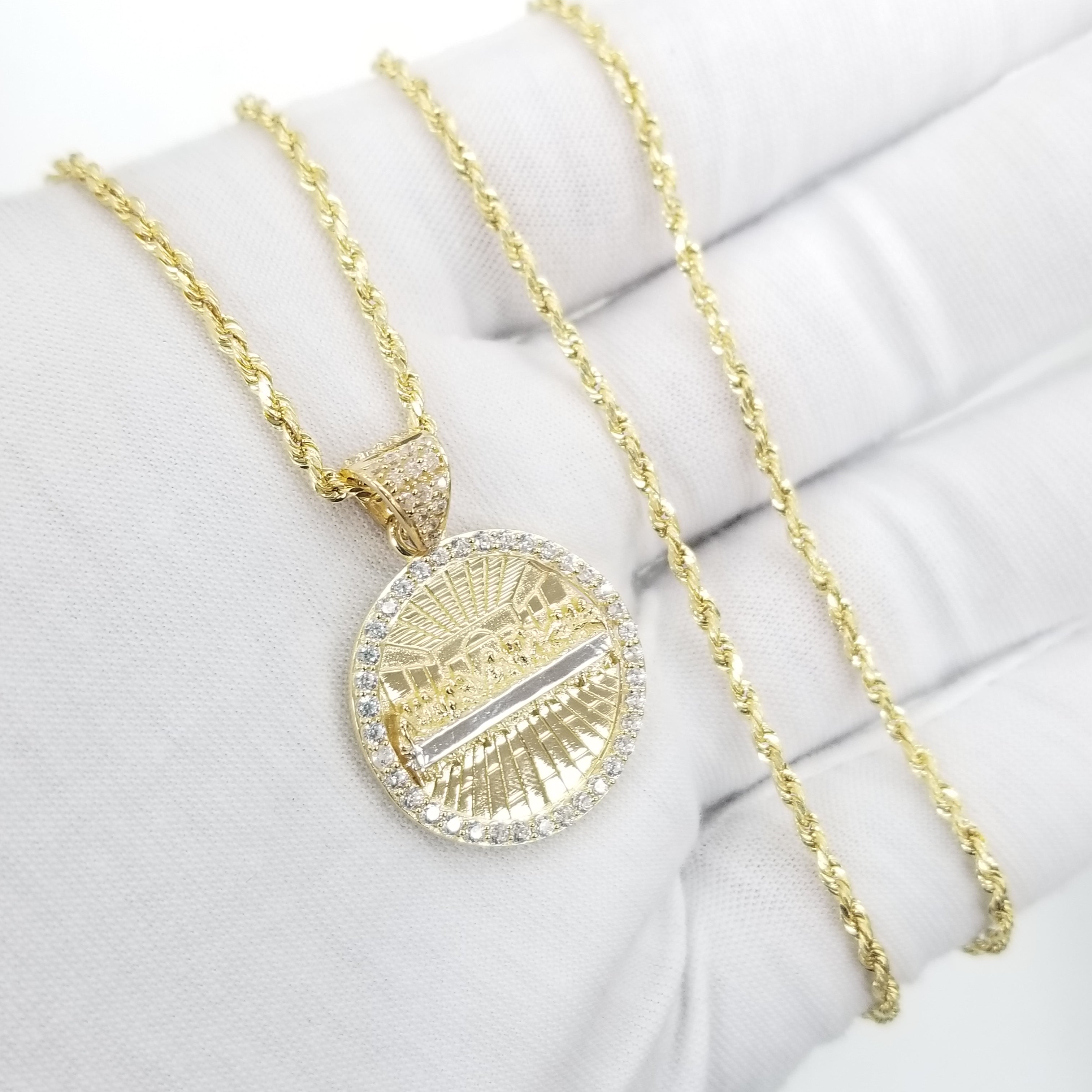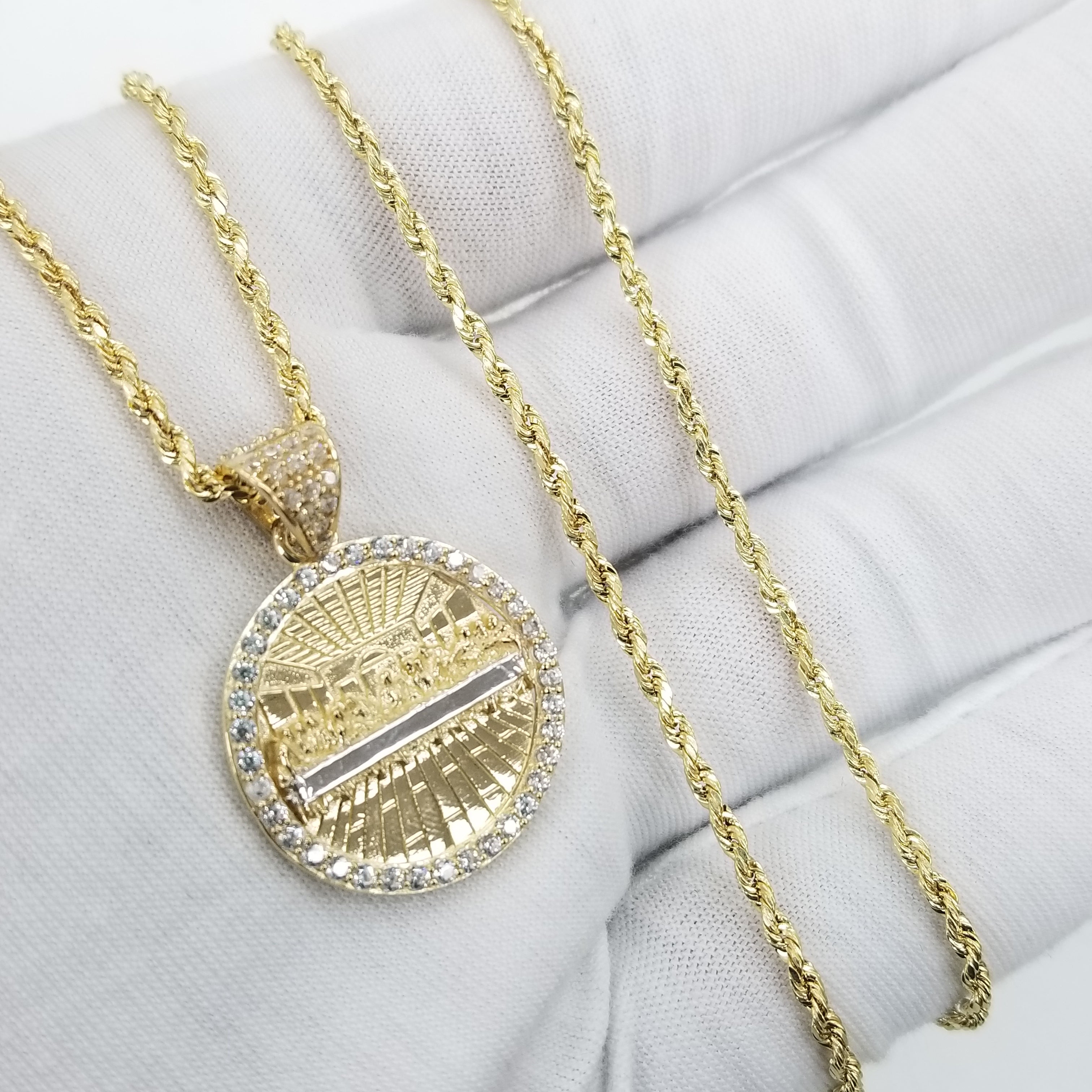 Rope Necklace with Round Last Supper Pendant 10K Real Gold