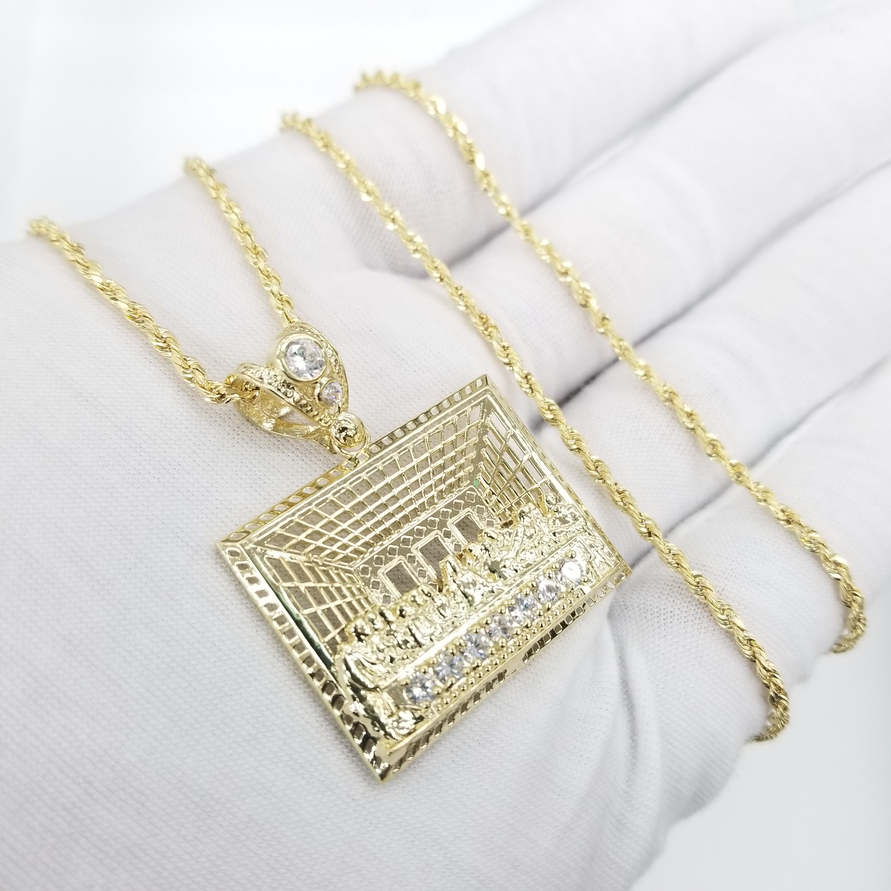 Rope Necklace with Square Last Supper Pendant 10K Real Gold