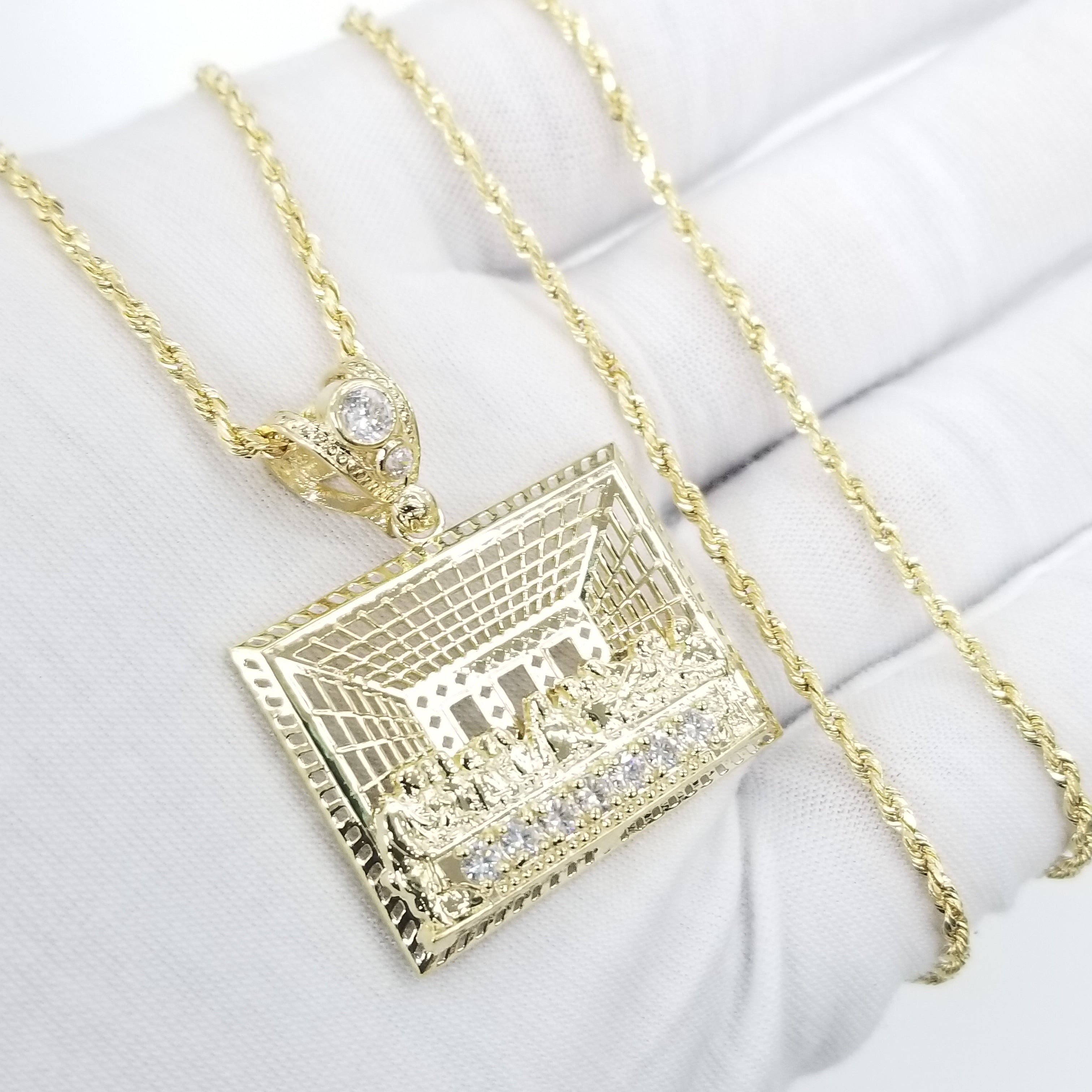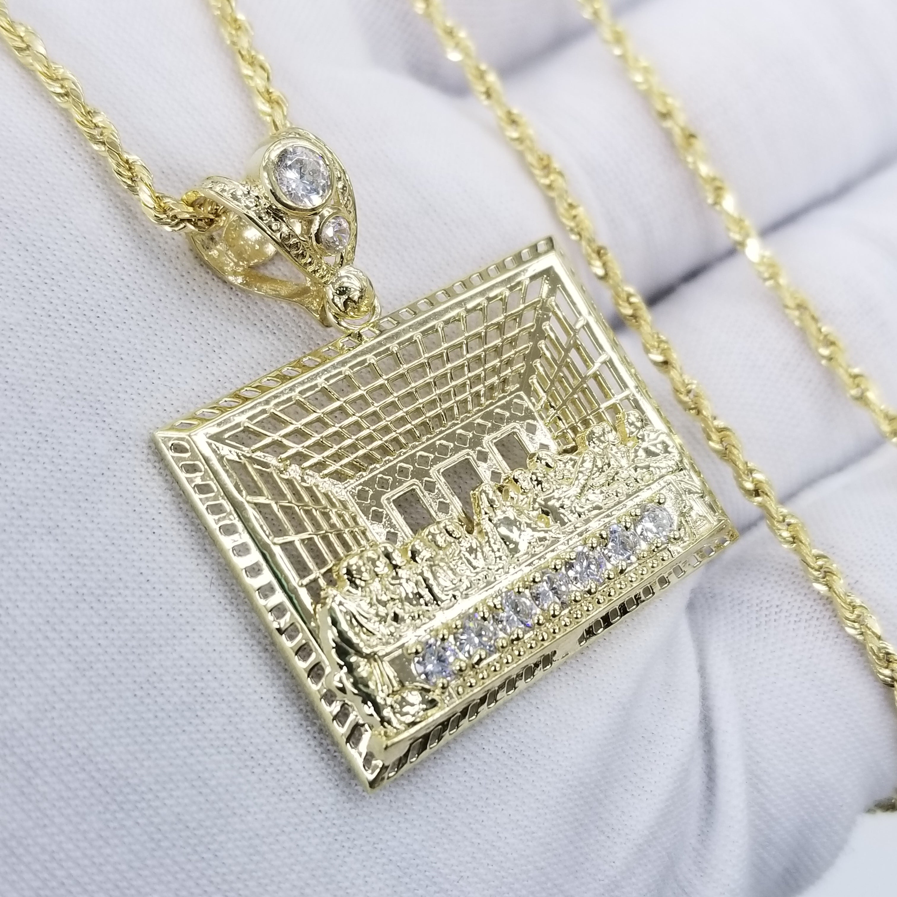 10KT Yellow Gold Last Supper Pendant with Rope Necklace