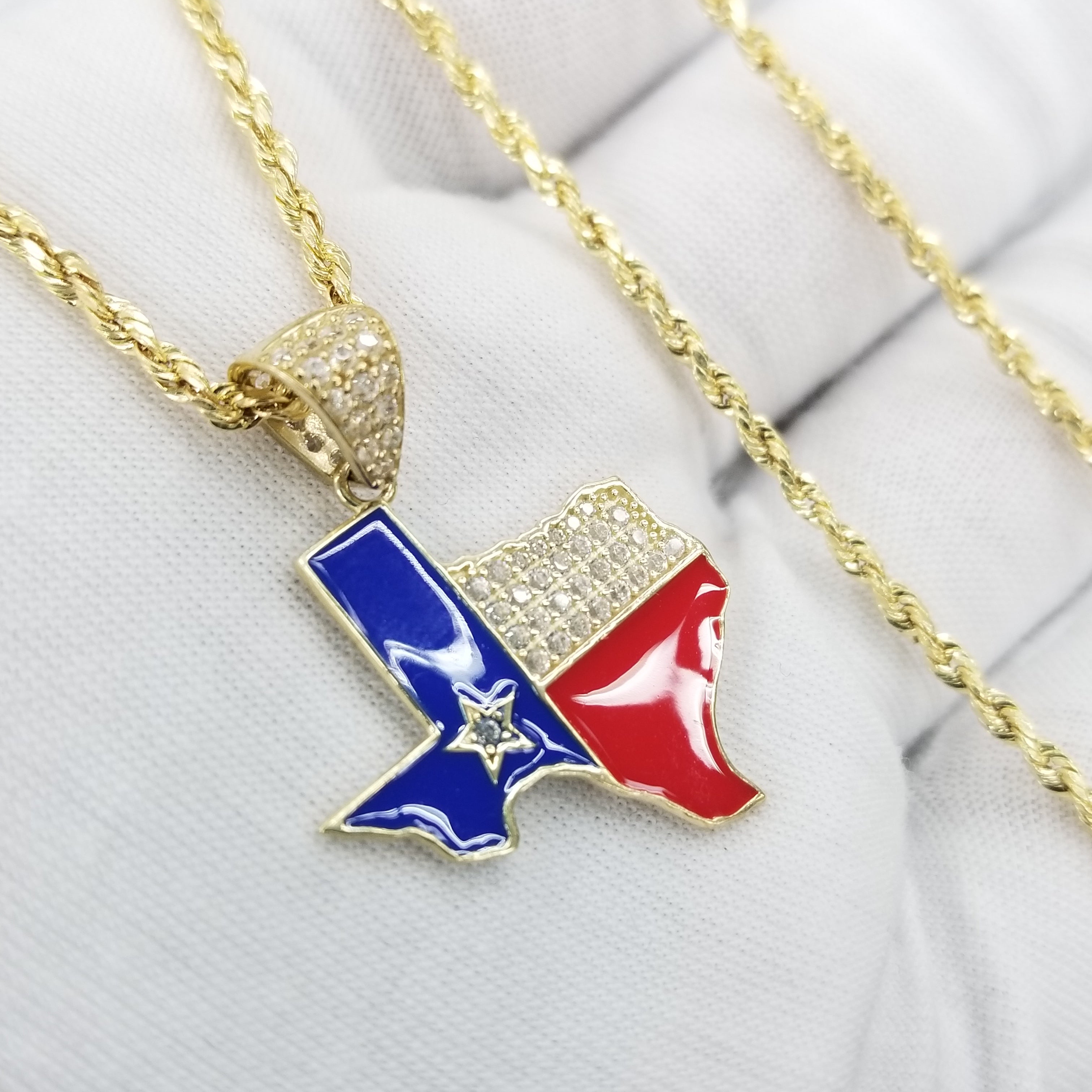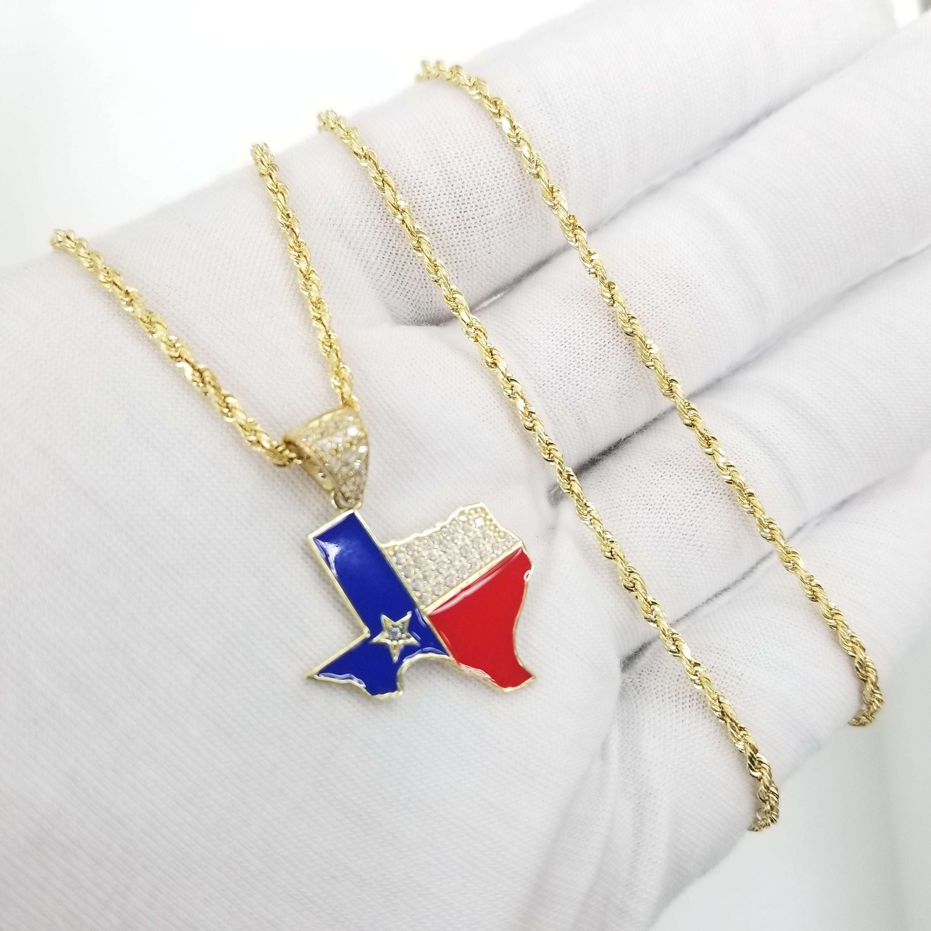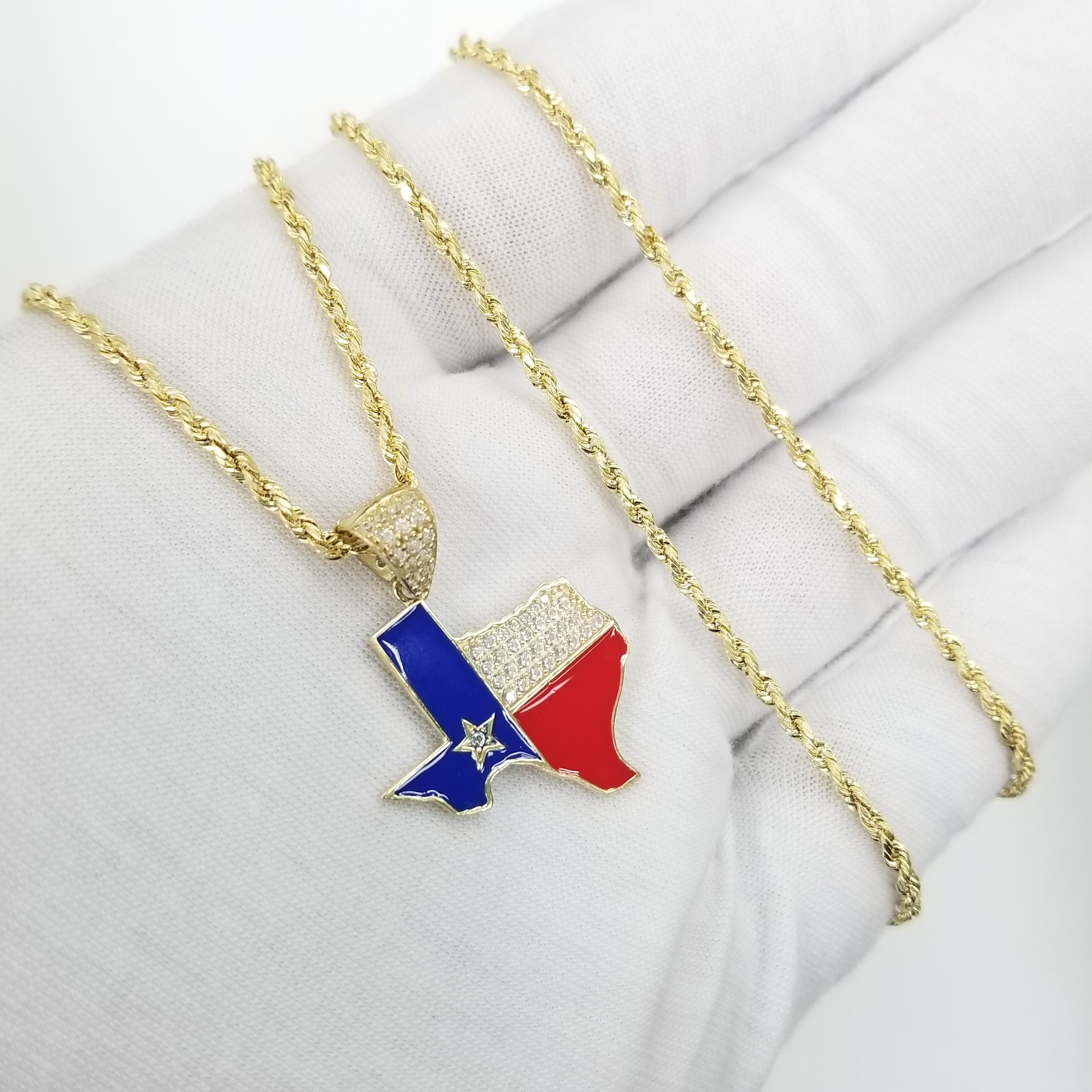 10KT Yellow Gold Texas Pendant with Rope Necklace