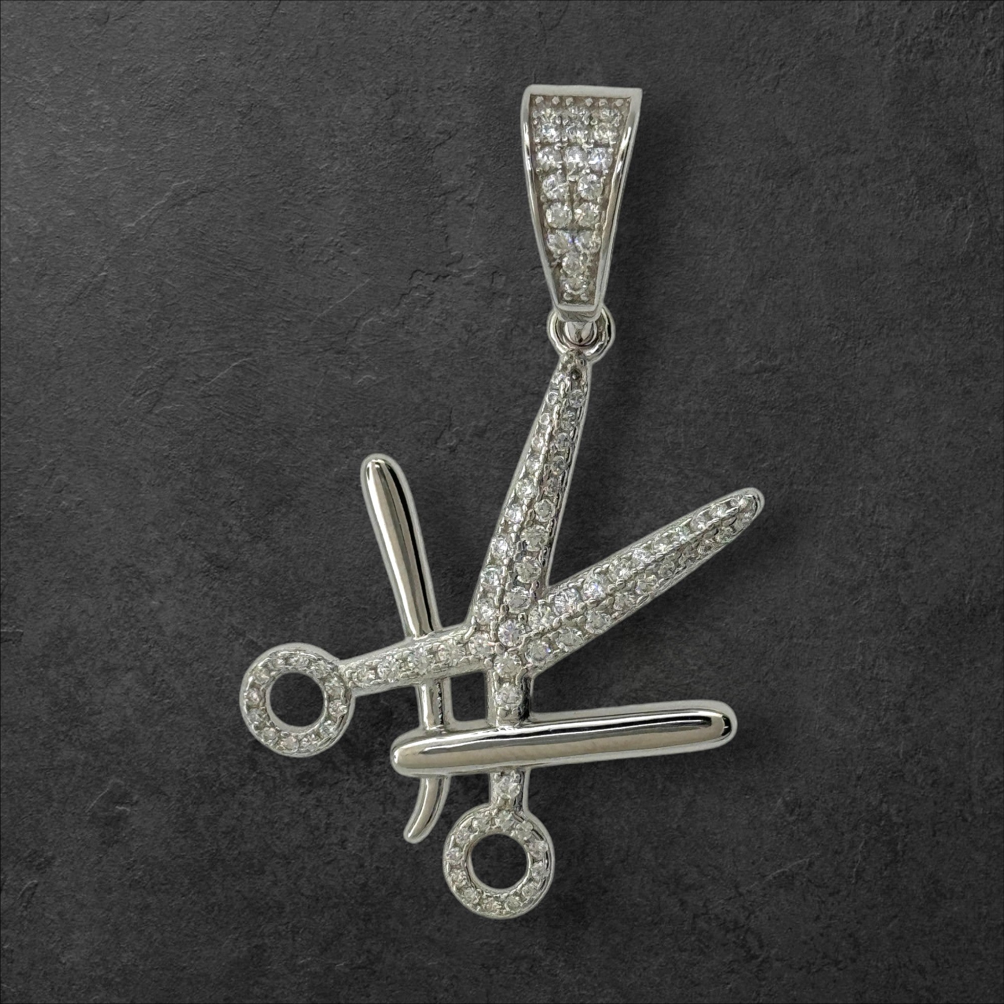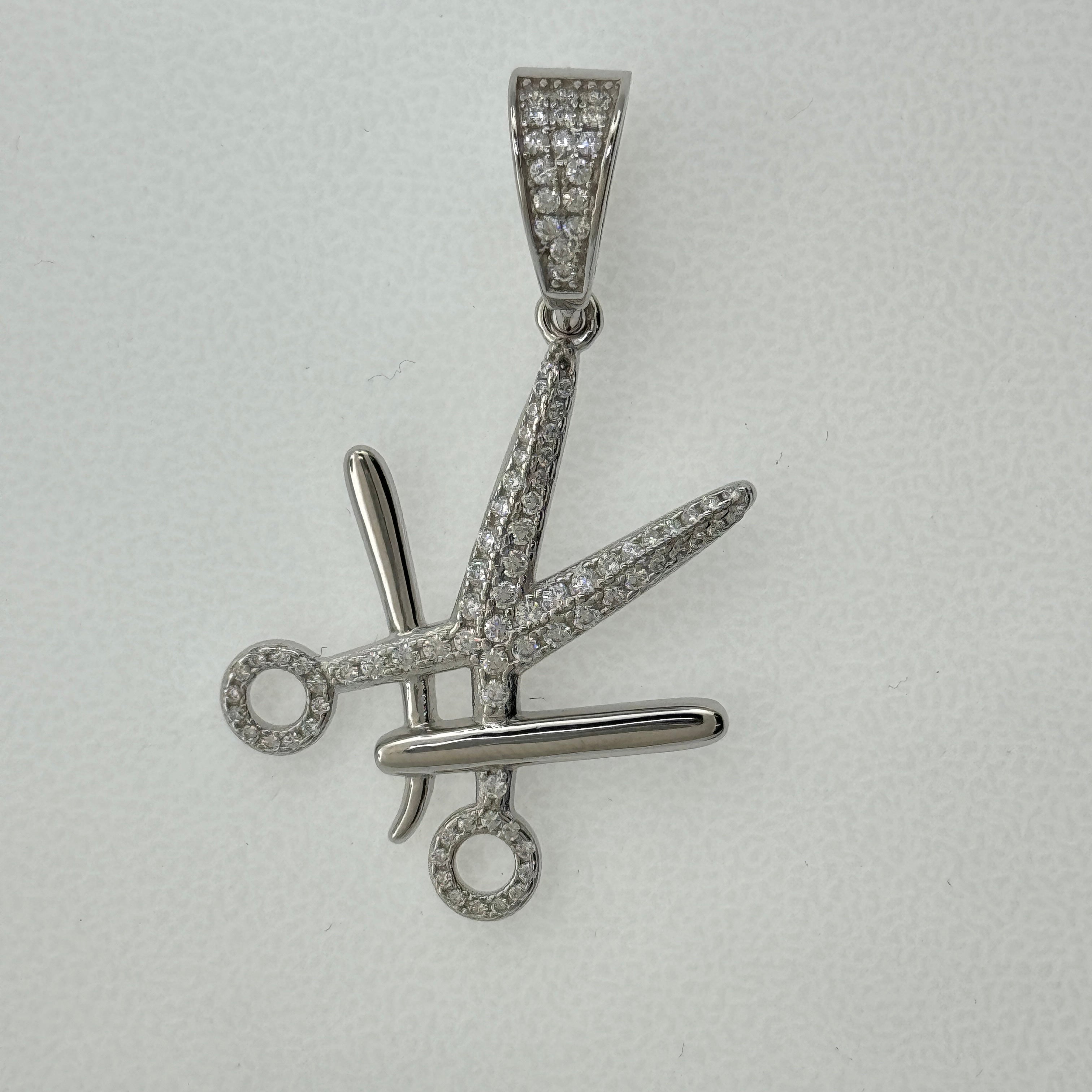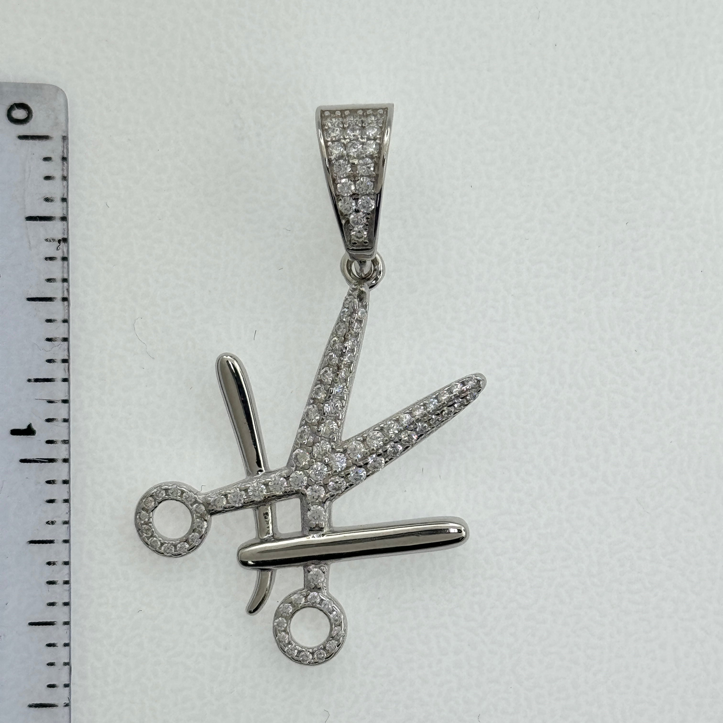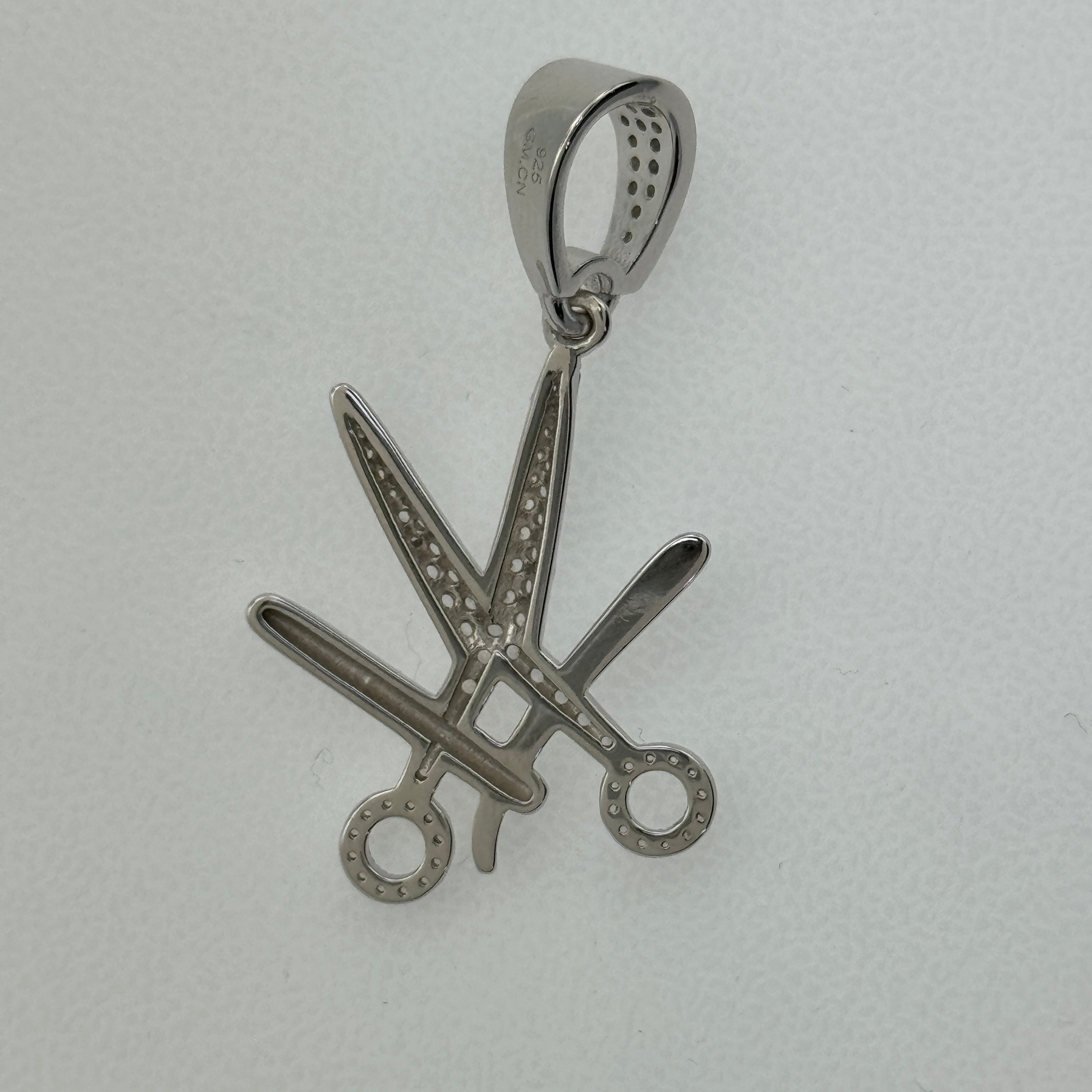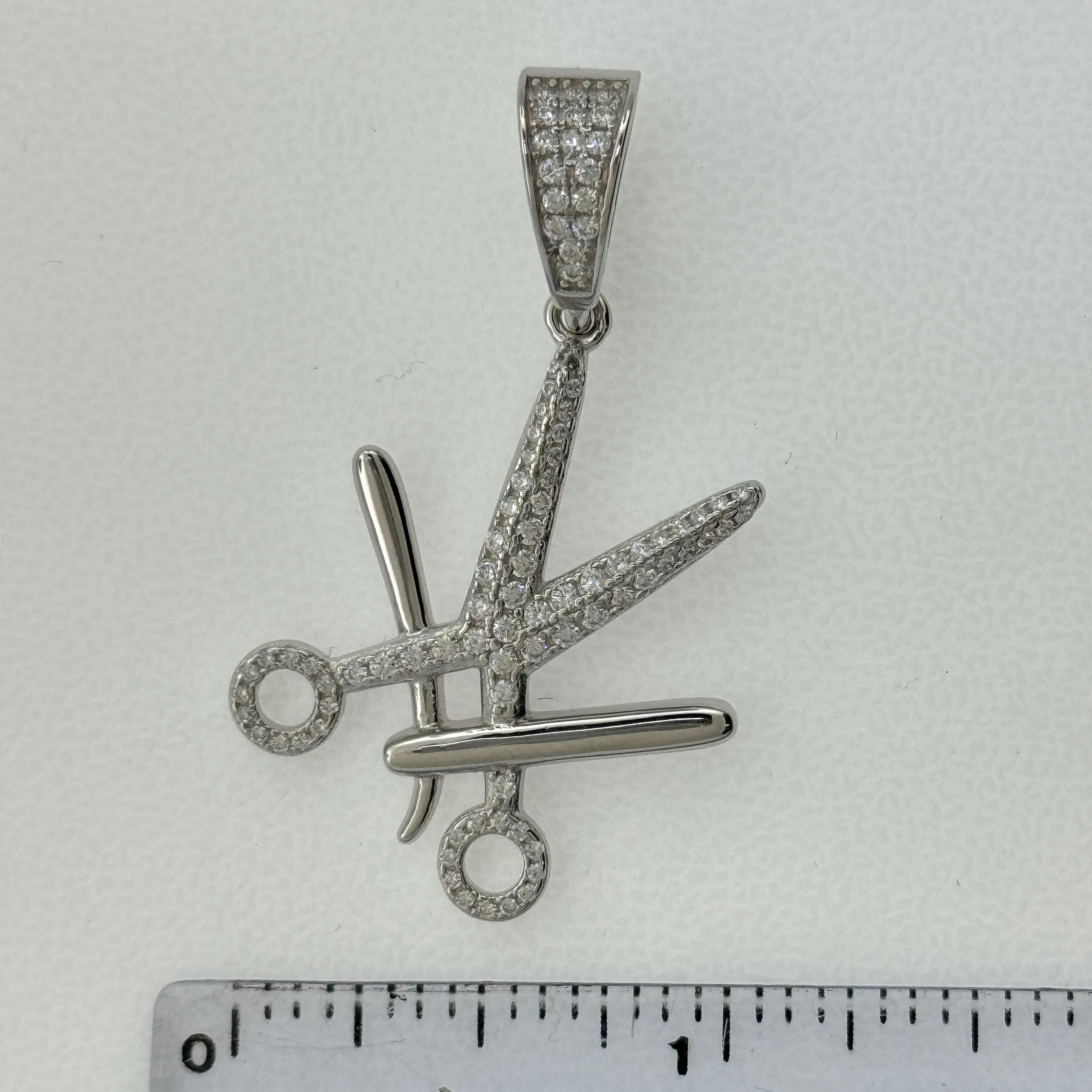 🔹 Illuminate Your Style with 925 Sterling Silver CZ Barber Scissors Pendant