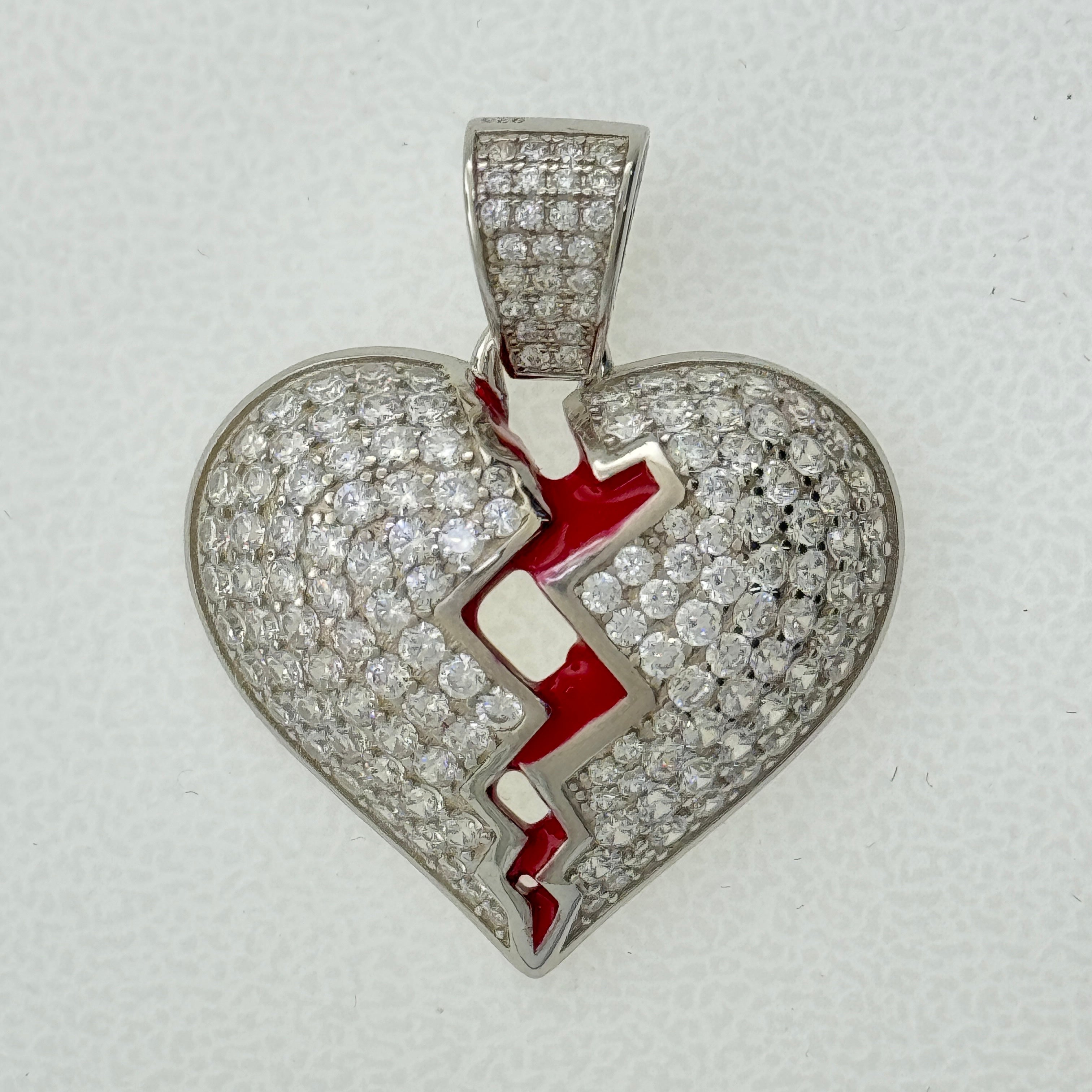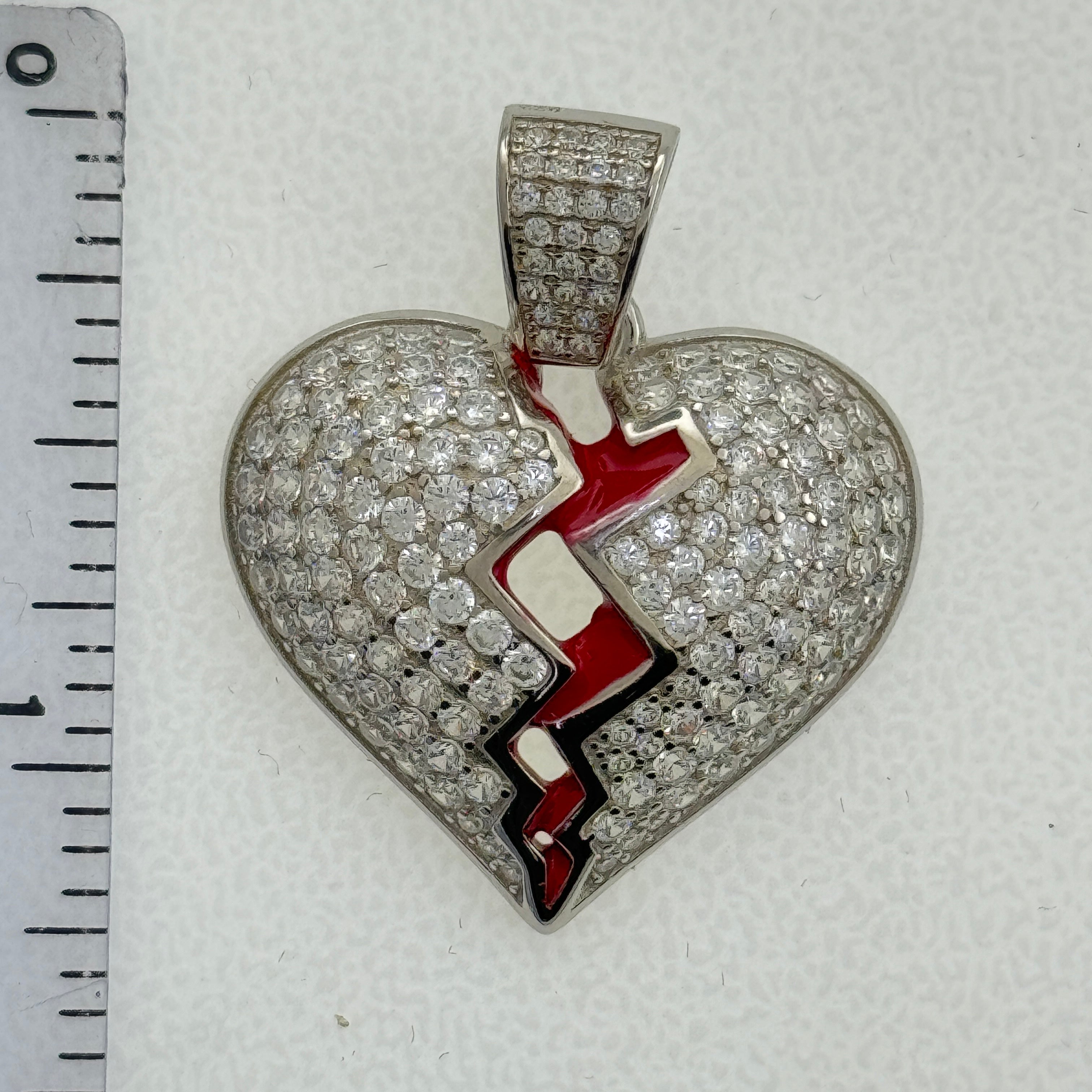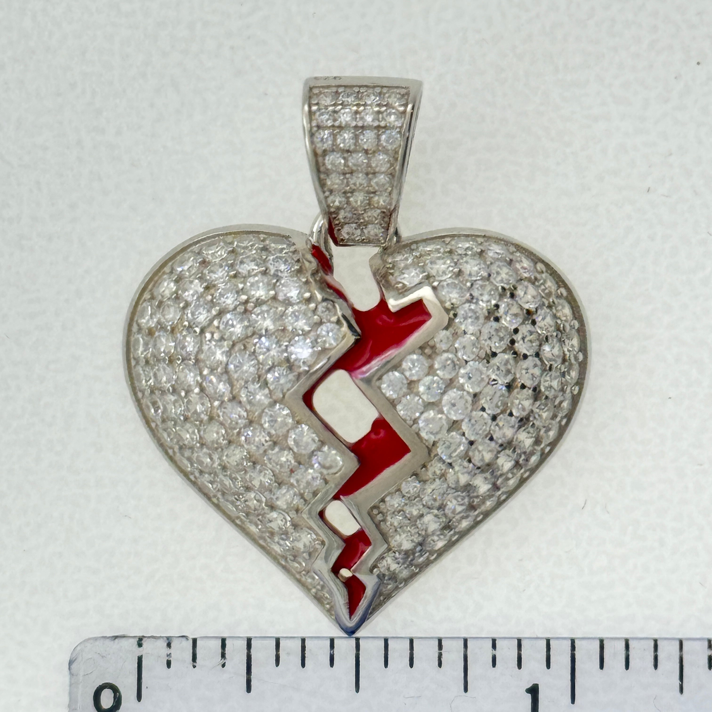 Sterling Silver CZ Broken Heart Pendent