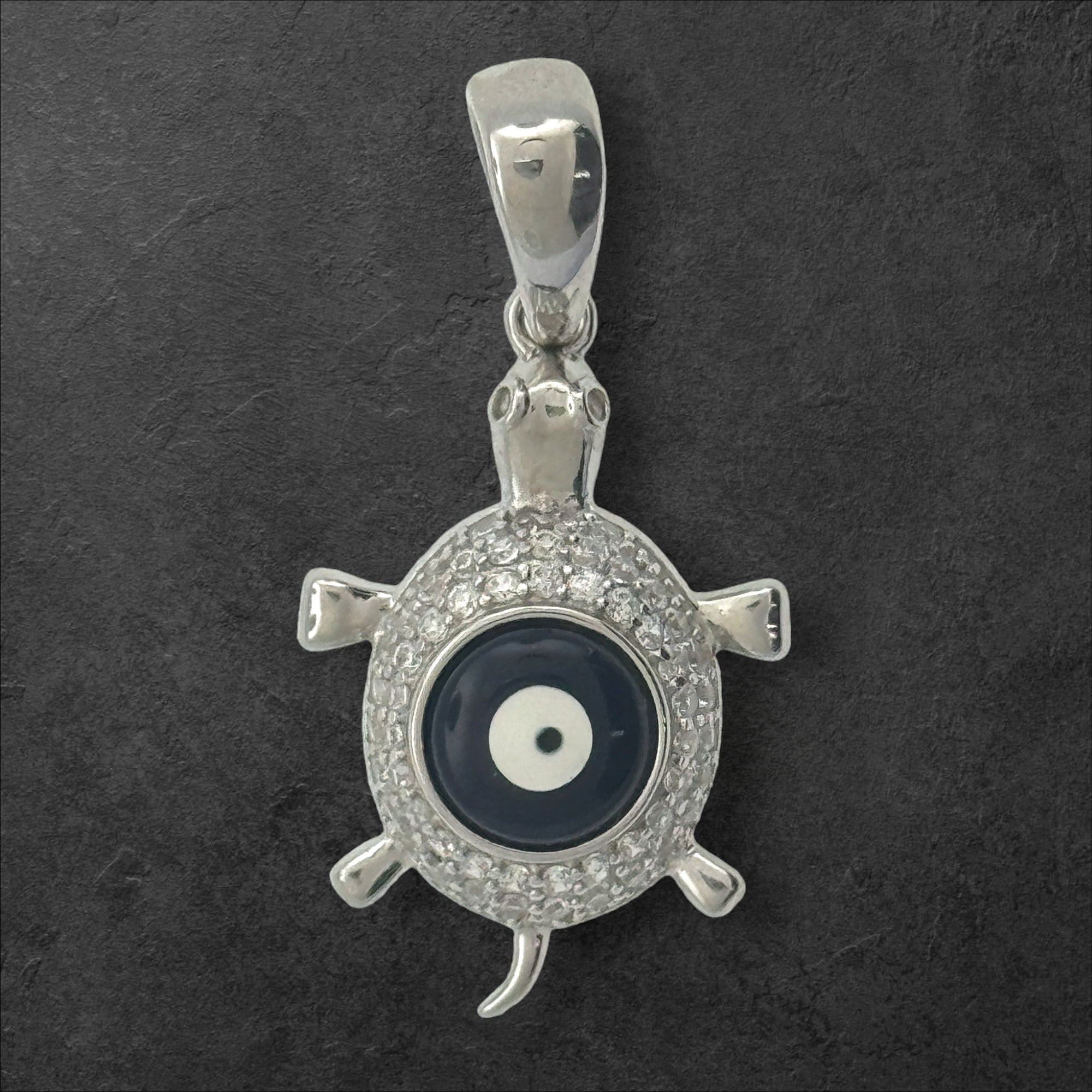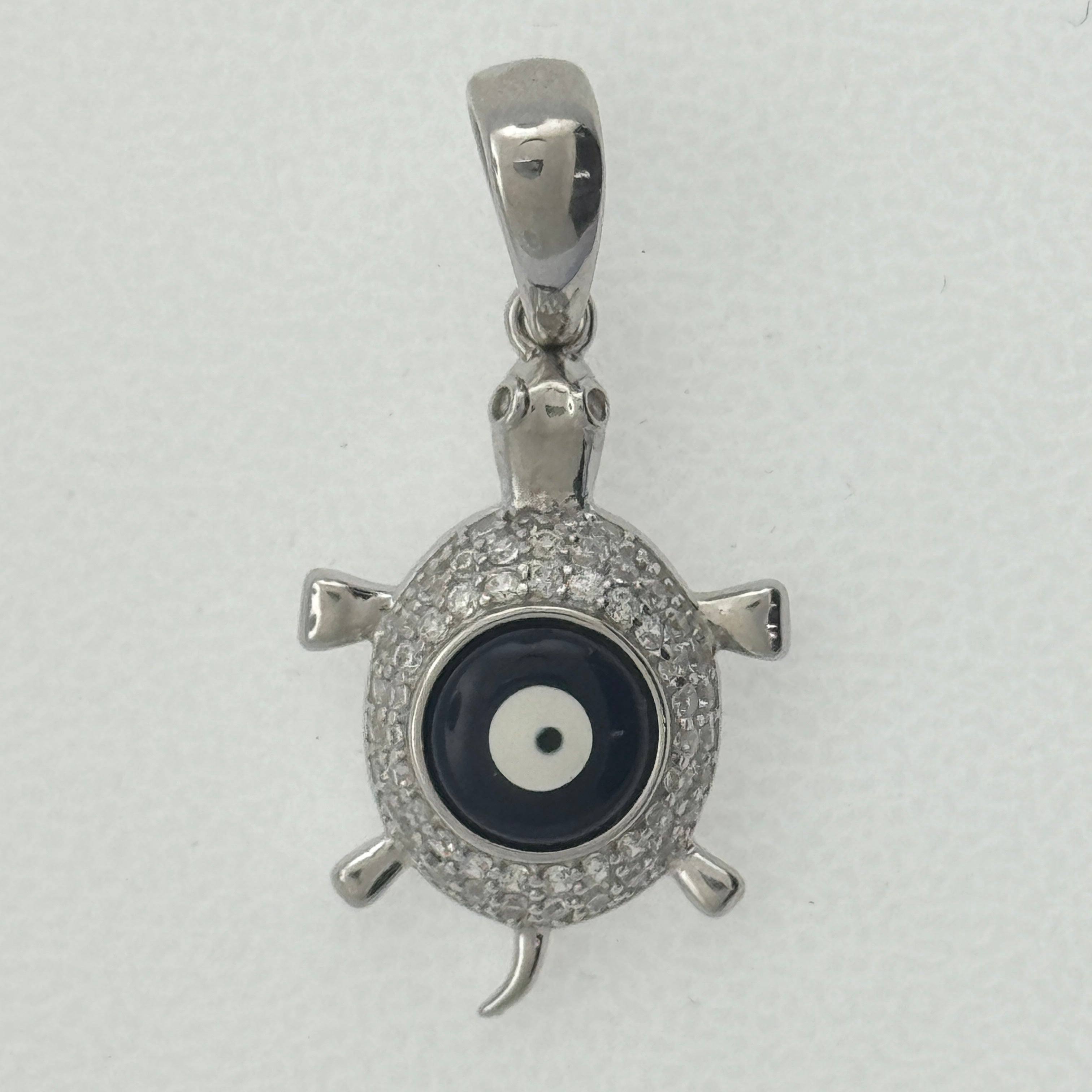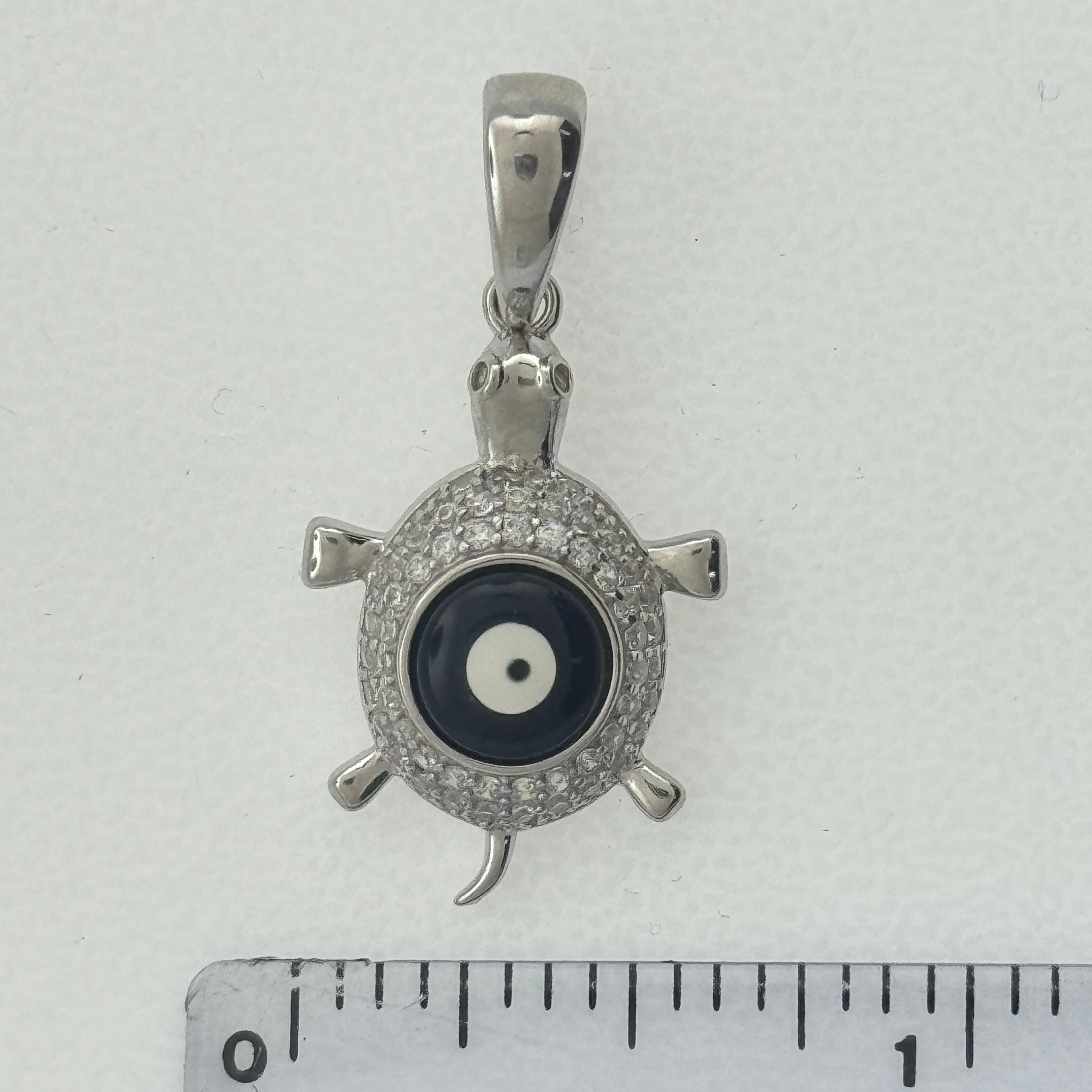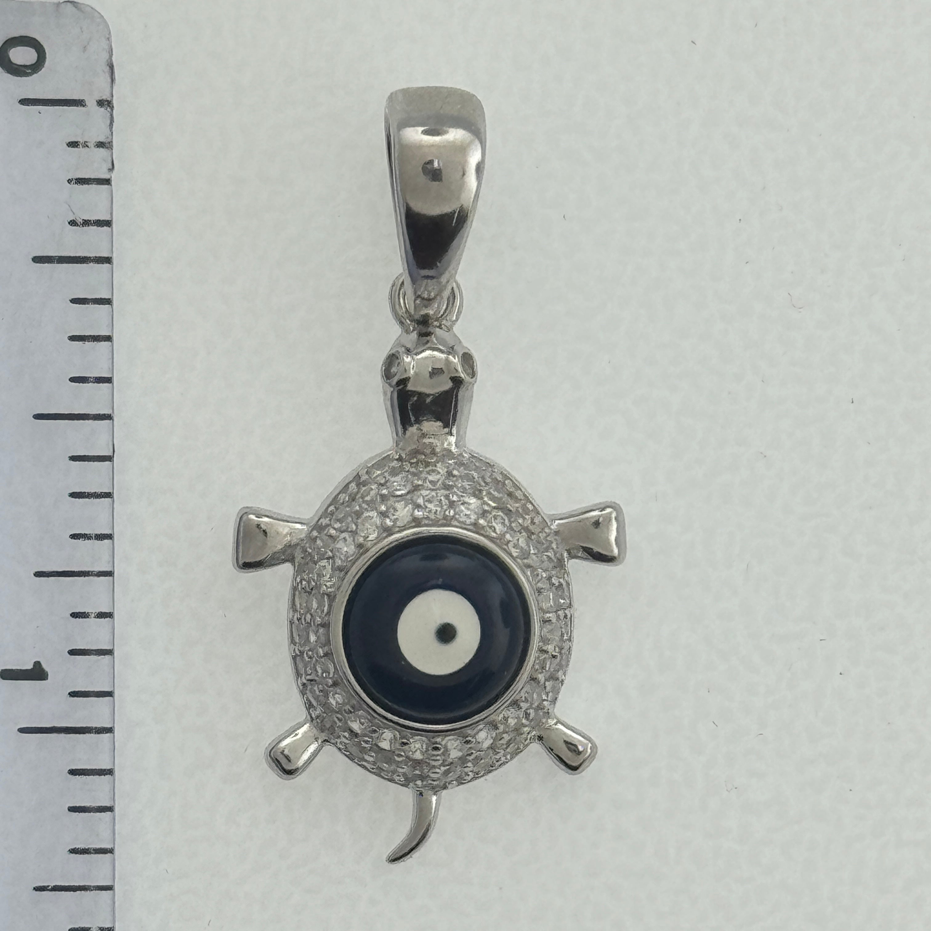 Sterling Silver CZ Evil Eye Turtle Pendent