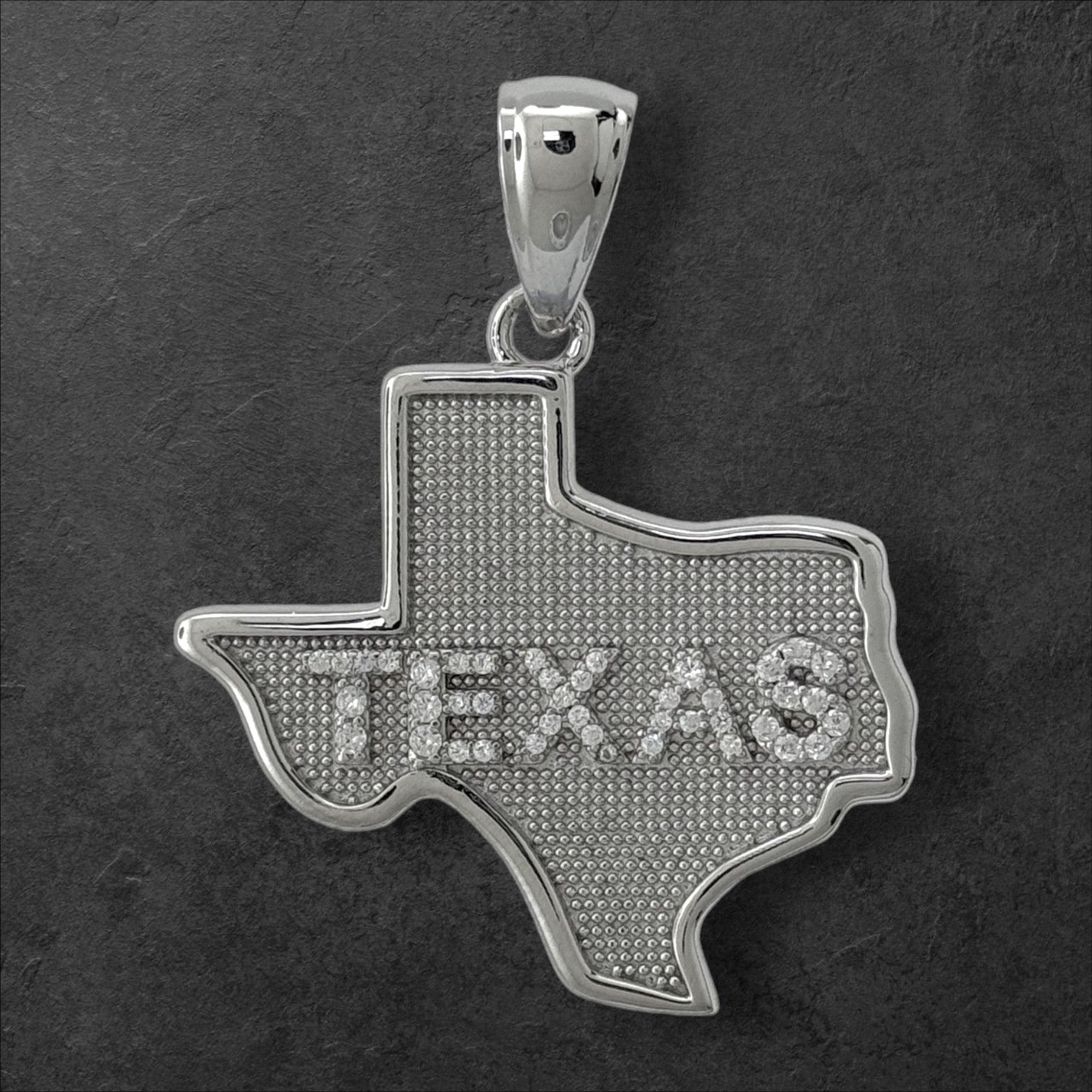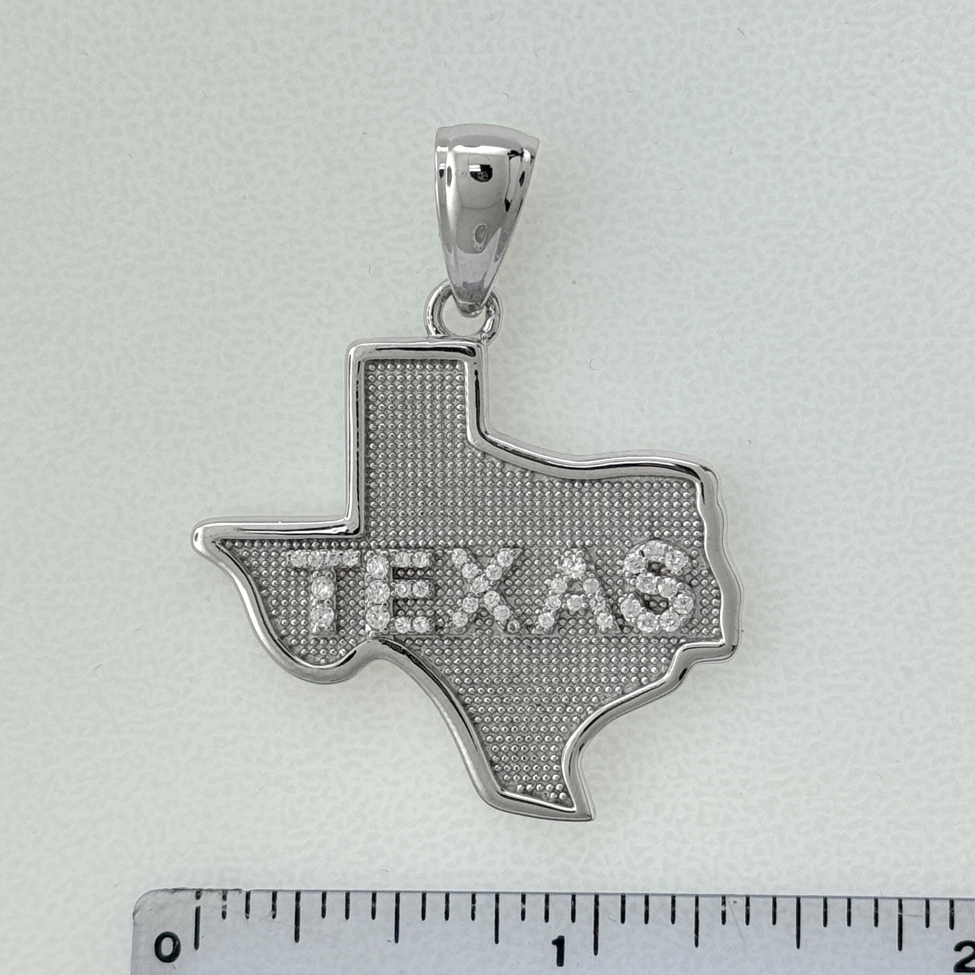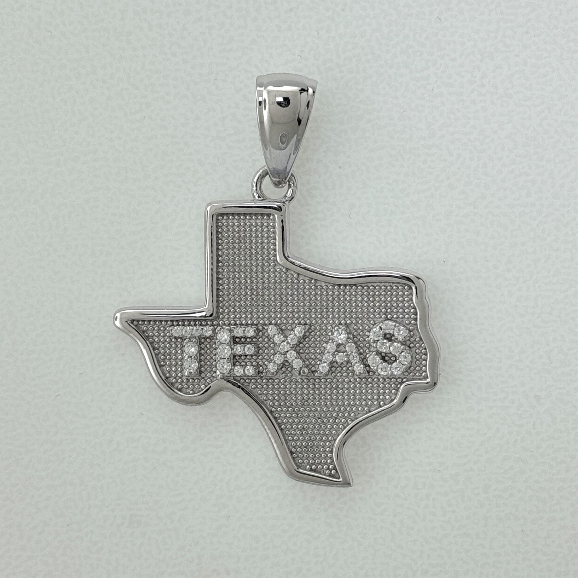 🤠 Flaunt your love for the Lone Star State with this intricately designed pendant featuring the map of Texas embellished with CZ stones.