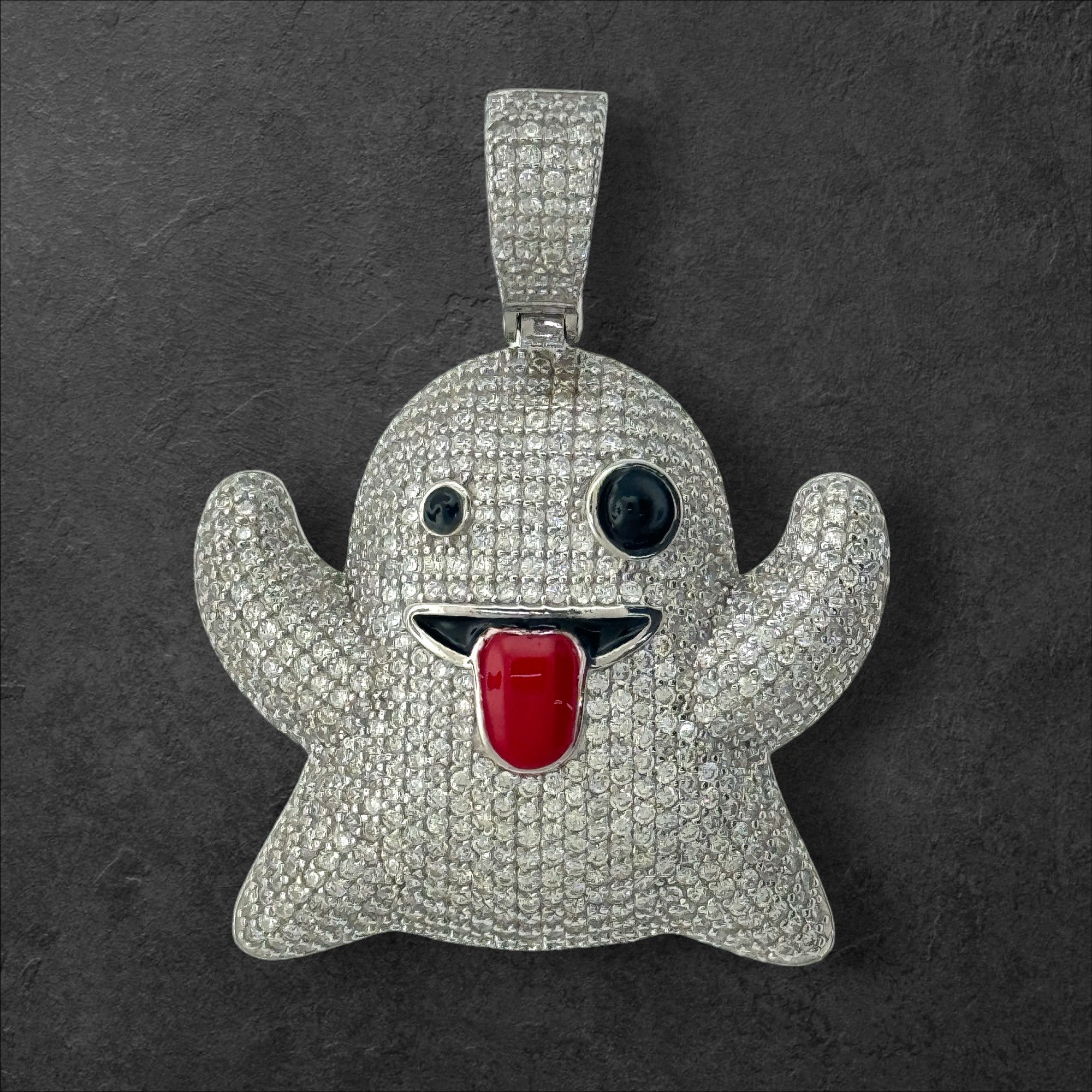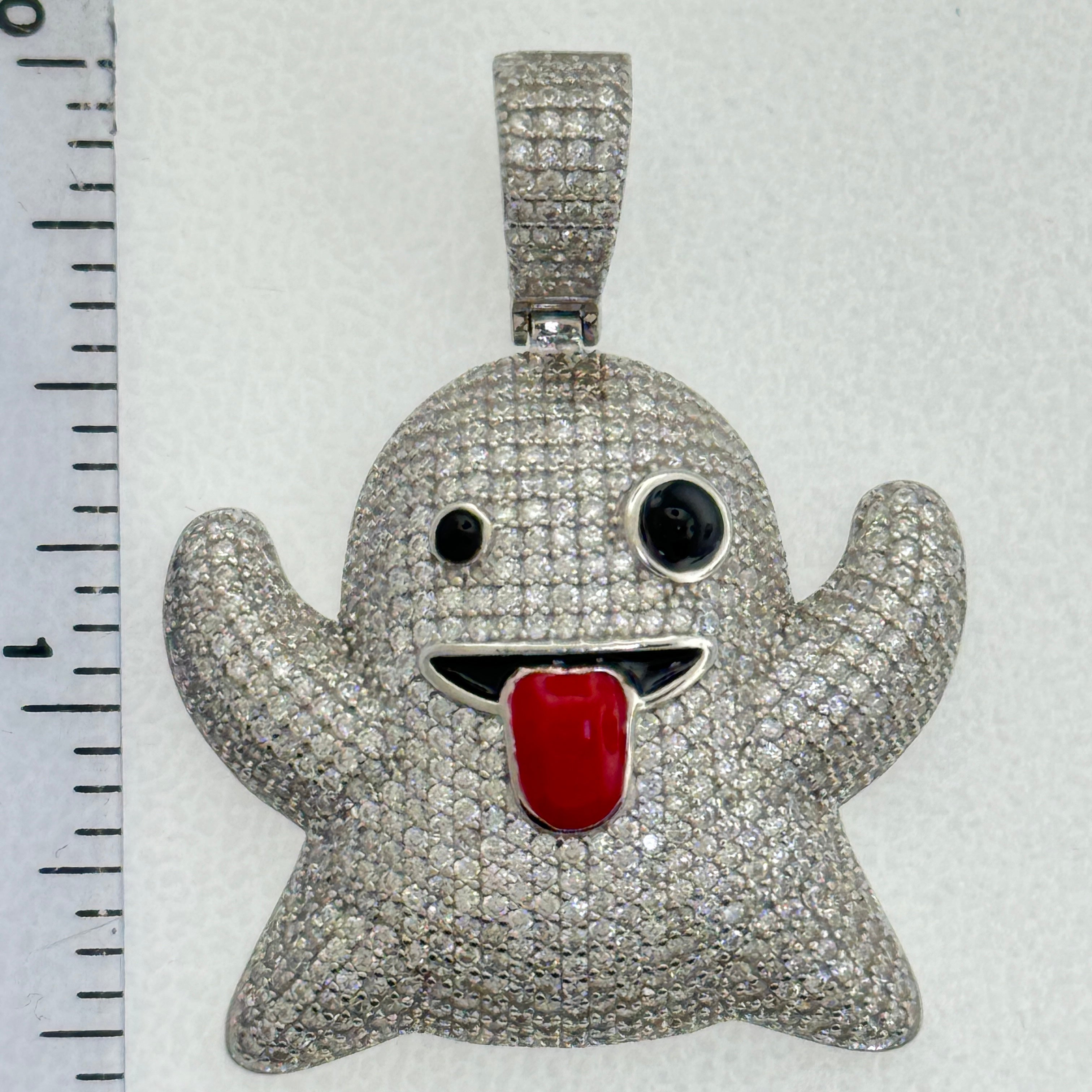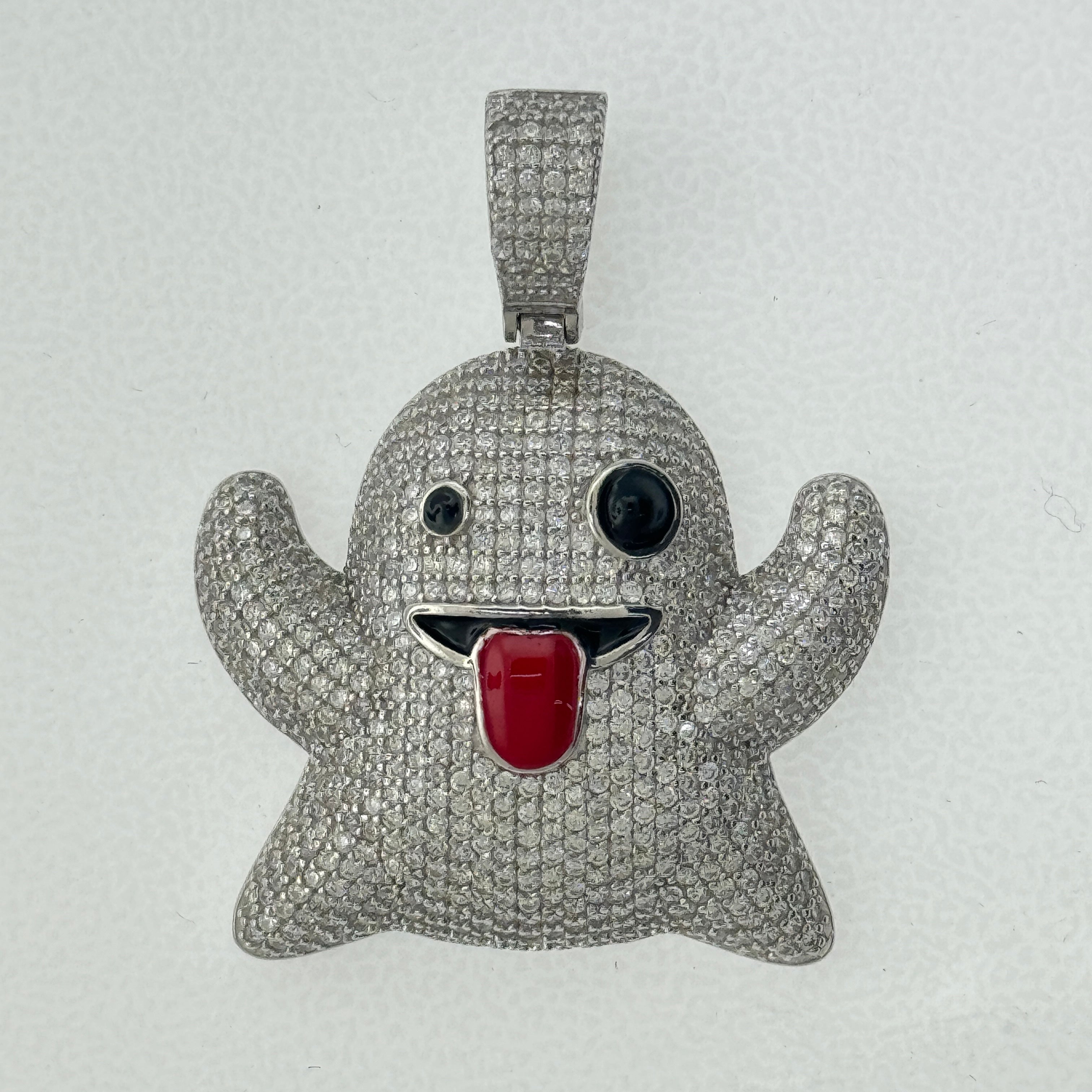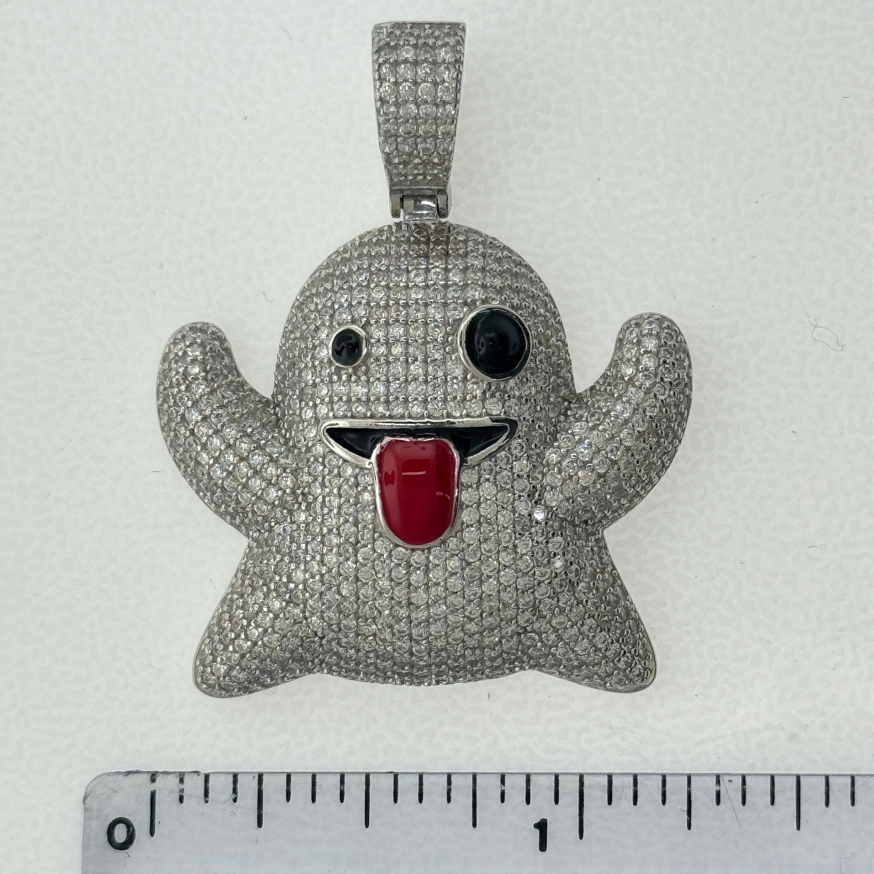 🔹 Illuminate Your Style with 925 Sterling Silver CZ Ghost Emoji Pendant