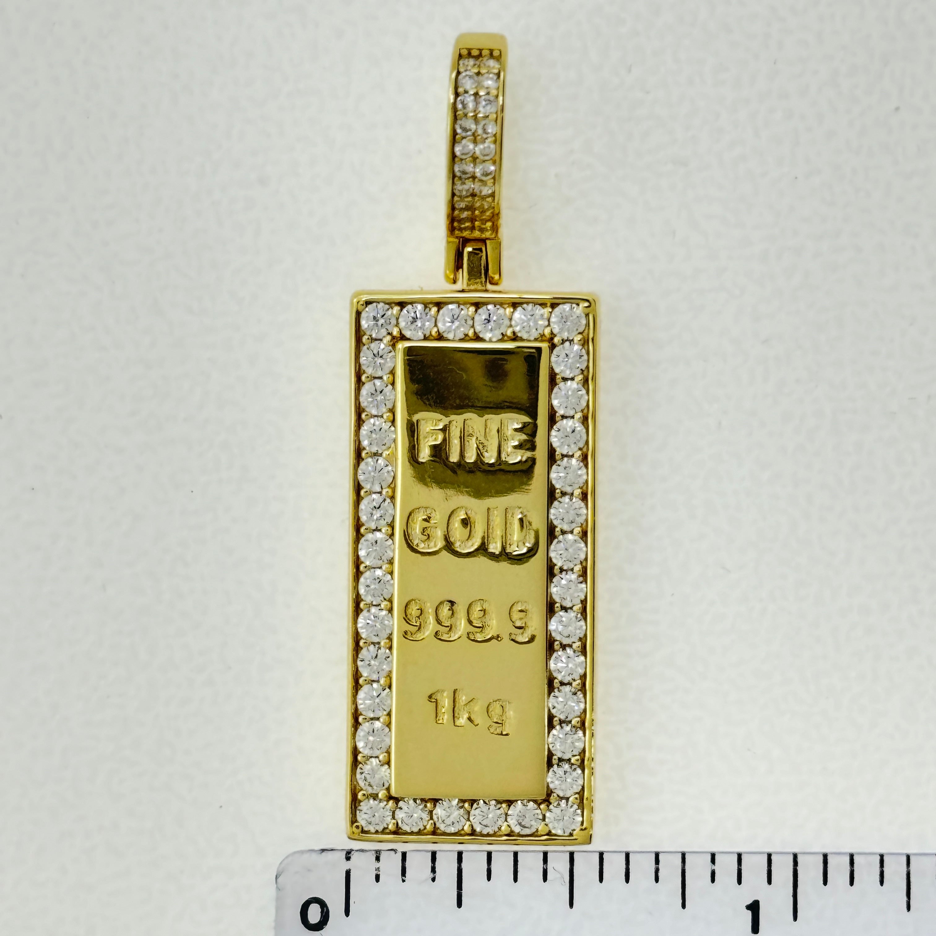🔹 Illuminate Your Style with 925 Sterling Silver CZ Gold Bar Pendant