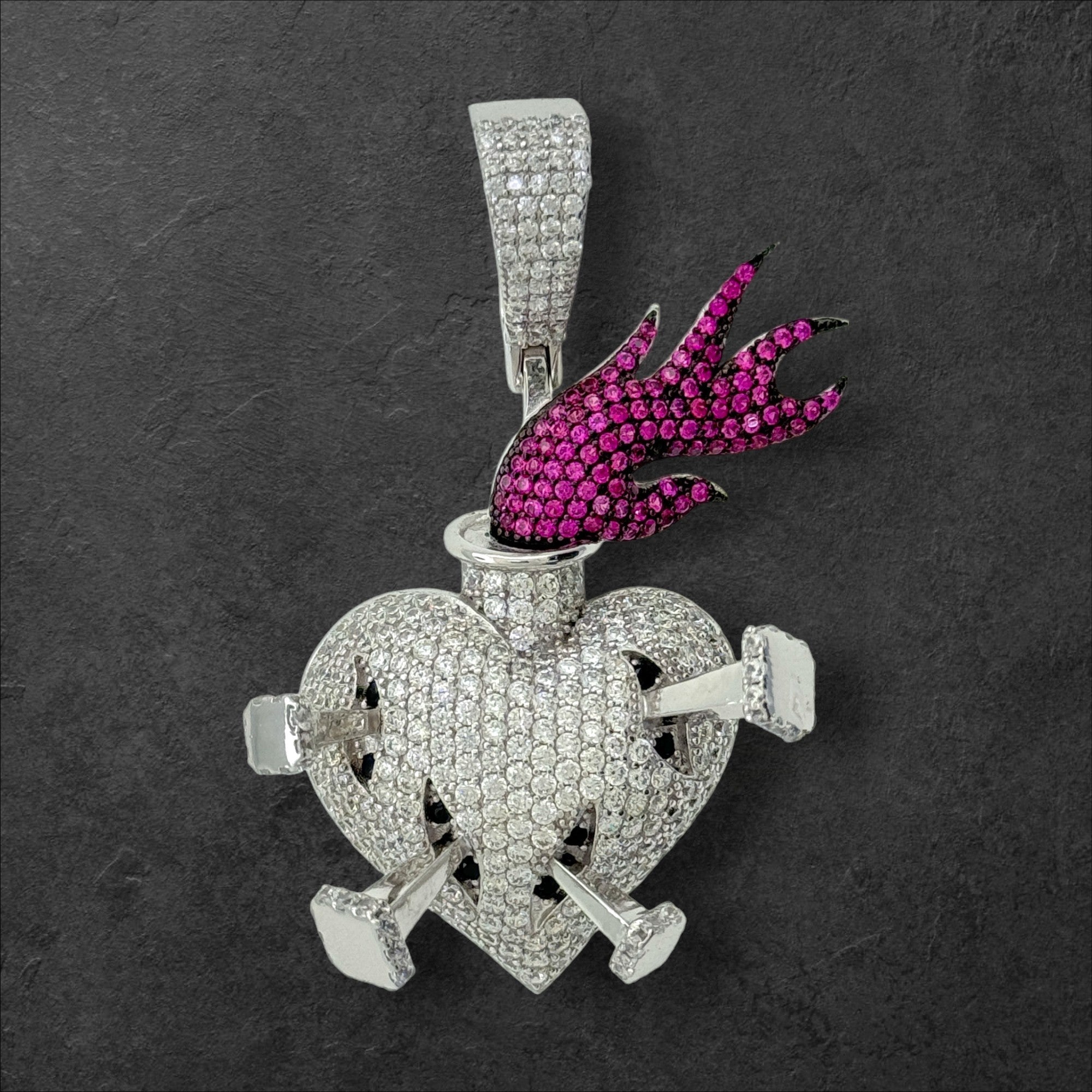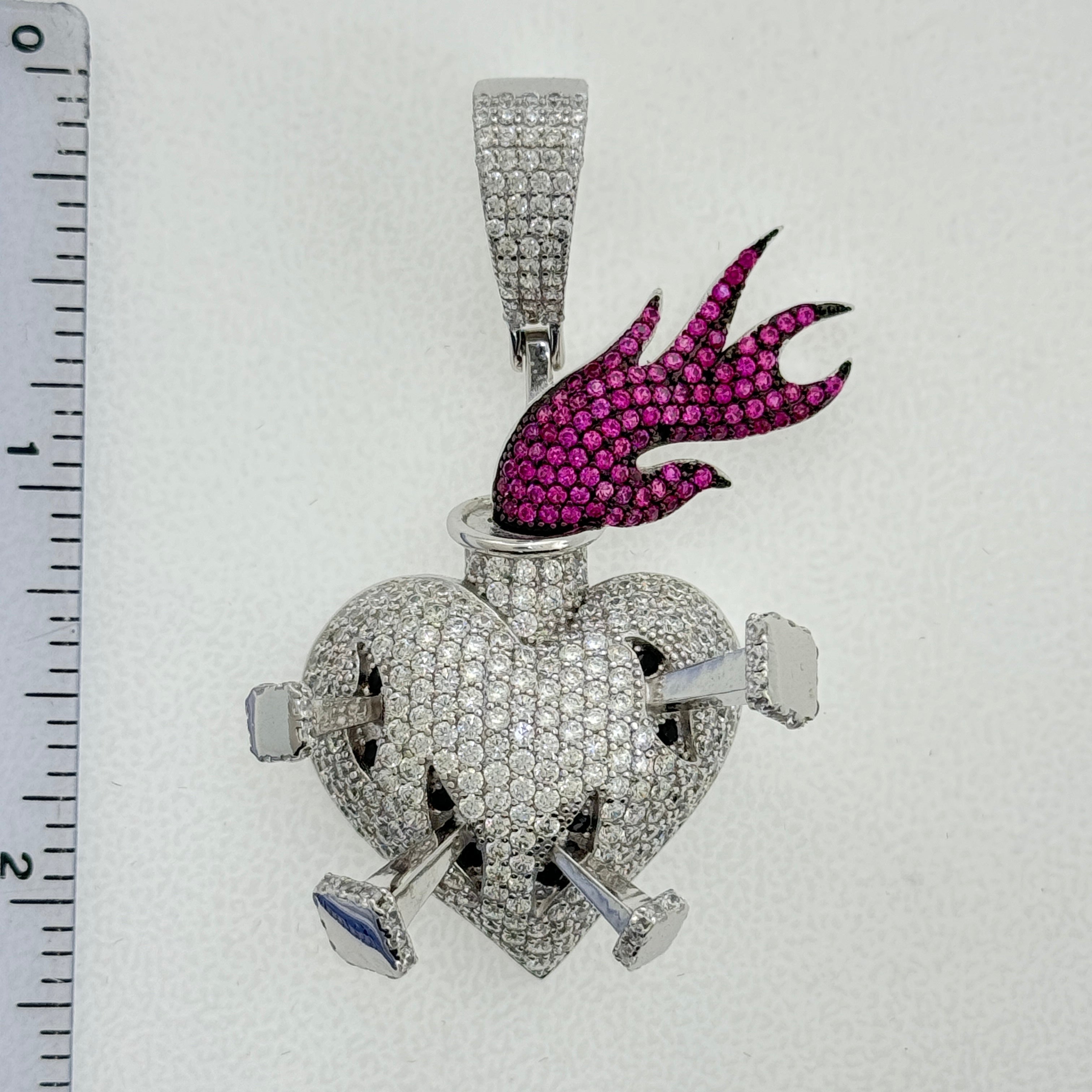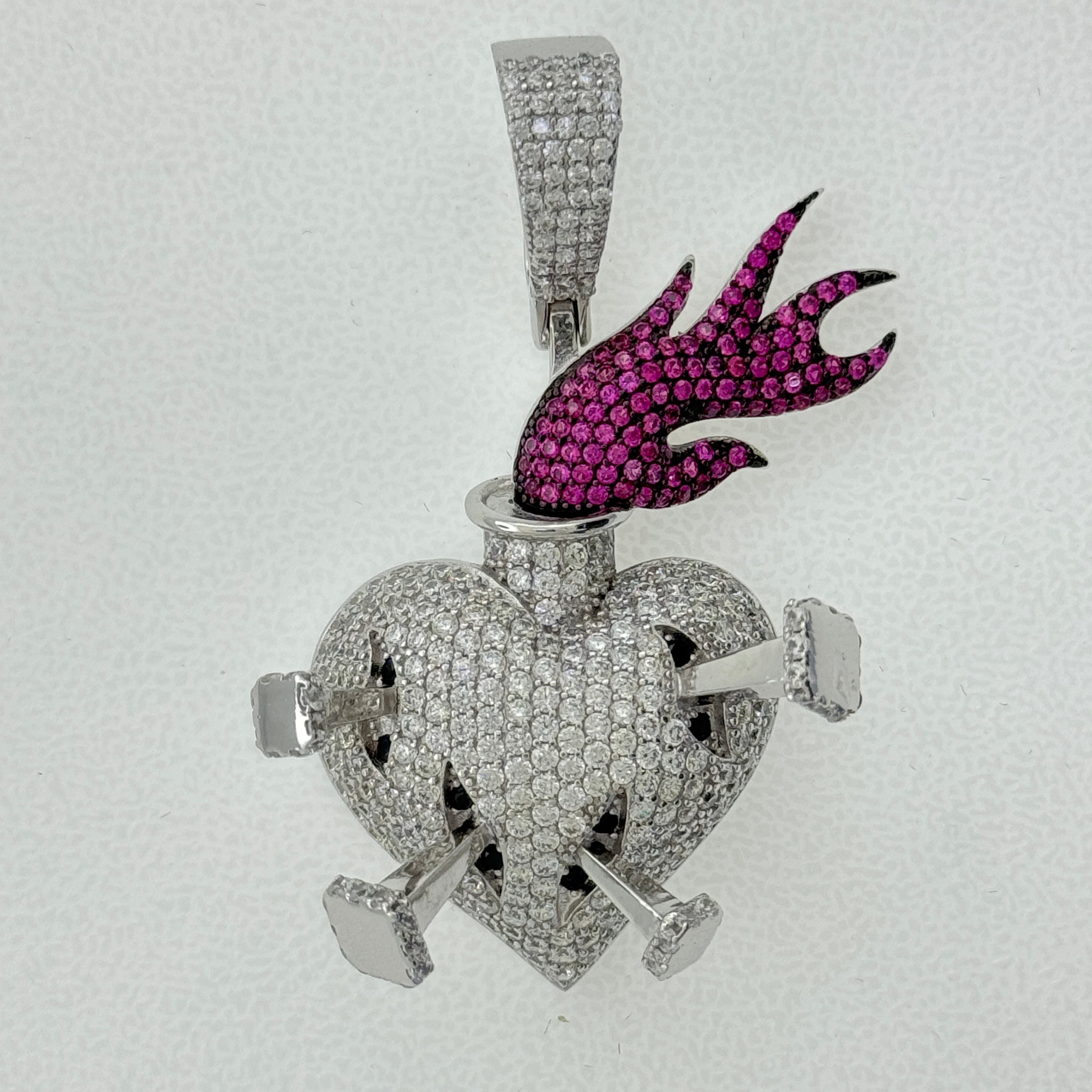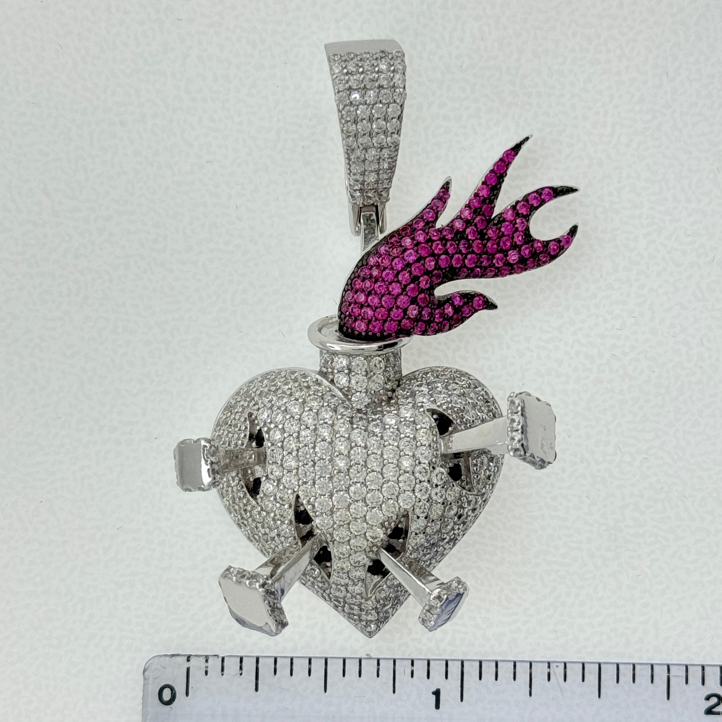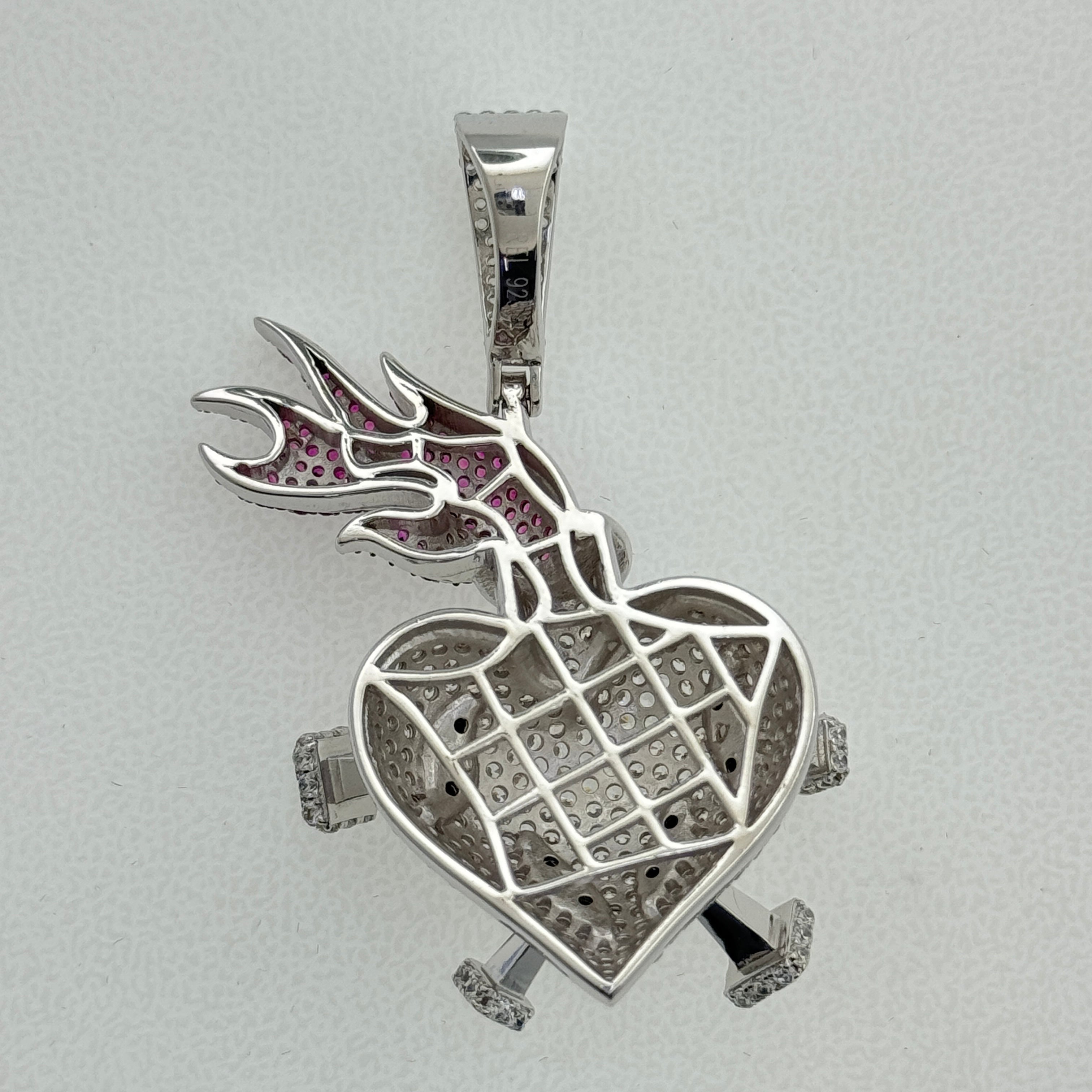 🔹 Illuminate Your Style with 925 Sterling Silver CZ Heart with flame Pendant