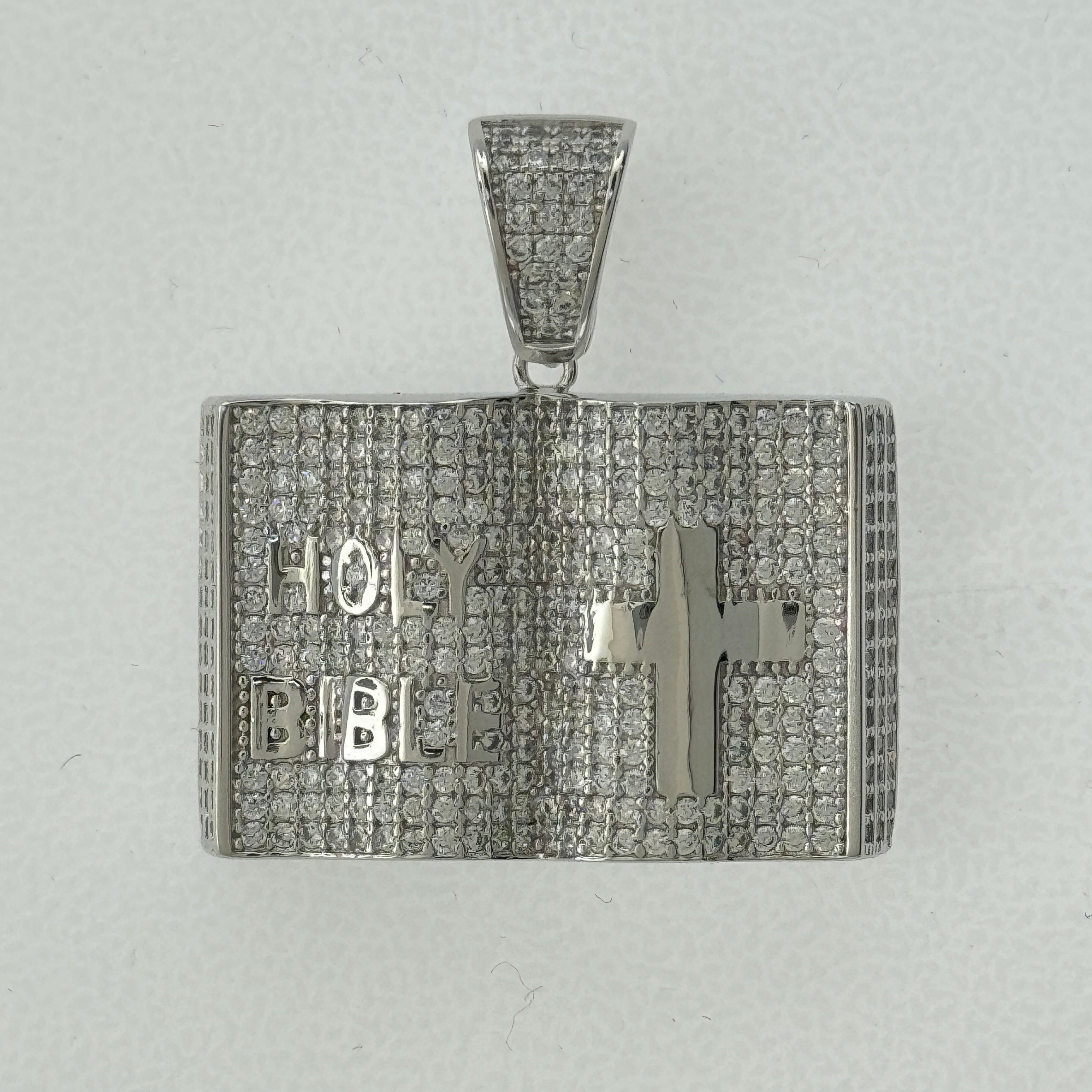 🔹 Illuminate Your Style with 925 Sterling Silver CZ Holy Bible Pendant